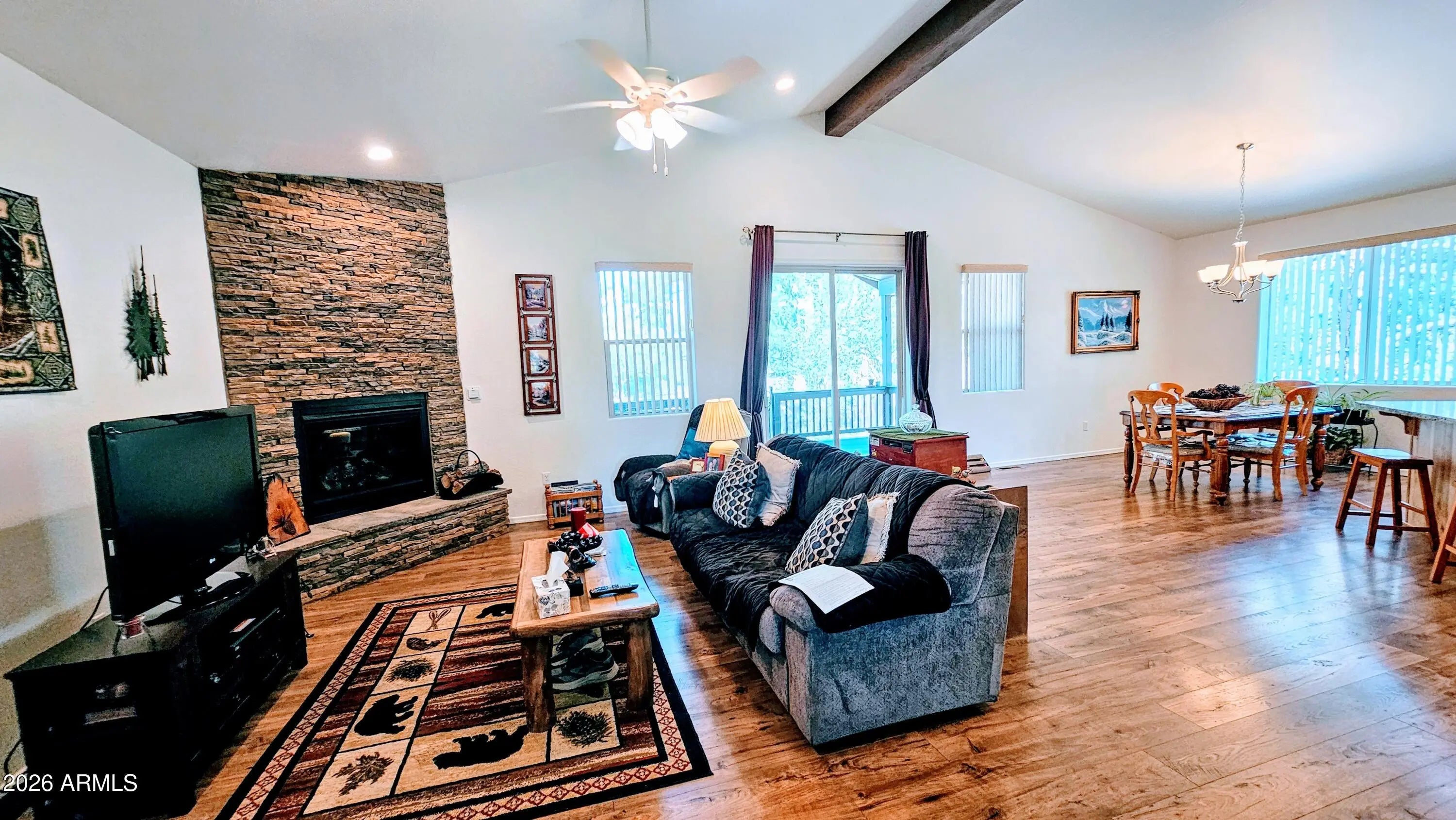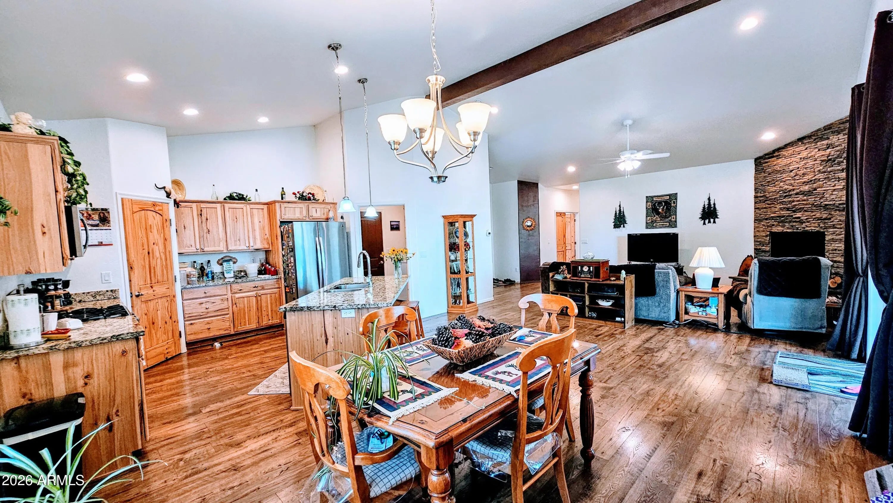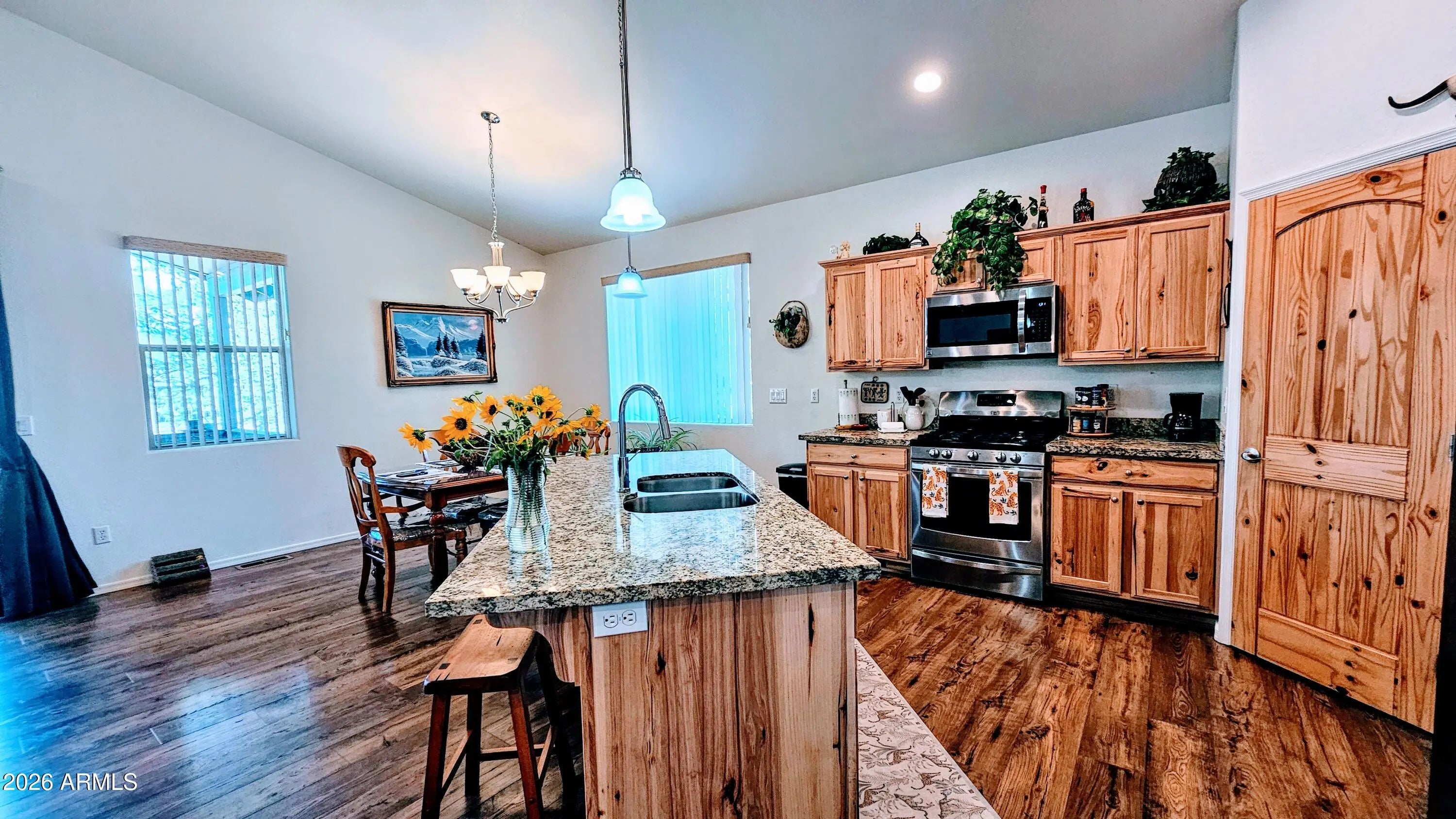 our private mountain retreat, a 3-bedroom, 2-bathroom home built in 2018. Tucked away on a landscaped .35-acre lot, the property offers quiet seclusion with no direct back neighbors, courtesy of a large cement privacy fence and tall pine trees. Step outside to your tranquil outdoor space, which features a private covered back porch with durable composite decking. Inside, vaulted ceilings and a floor-to-ceiling natural stacked stone feature add rustic charm. The kitchen is a chef's dream, with a functional island, granite countertops, and natural hickory cabinets. High-quality Pergo Max amber chestnut flooring flows throughout the home, and an oversized 2-car garage provides ample storage. a perfect blend of modern comfort and mountain living in the heart of Show Low, Arizona. Show Low, the business and recreational hub of the White Mountains, offers a vibrant lifestyle with a small-town feel. Enjoy the four distinct seasons, from the warmth of summer to the snowy winters. Outdoor enthusiasts will thrive with access to over 120 miles of hiking and mountain biking trails, world-class fishing and boating at Fool Hollow Lake Recreation Area, and skiing at nearby Sunrise Park Resort. The community hosts various events, including a farmers' market, festivals like Show Low Days, and the Christmas Light Parade. With charming local shops, independent restaurants, and ample community facilities, this home offers the best of both peaceful mountain seclusion and convenient town amenities. An optional adjacent .23-acre lot is also available for purchase, offering even more potential for expansion and privacy. The Listing for both lots and the Home is MLS#258806