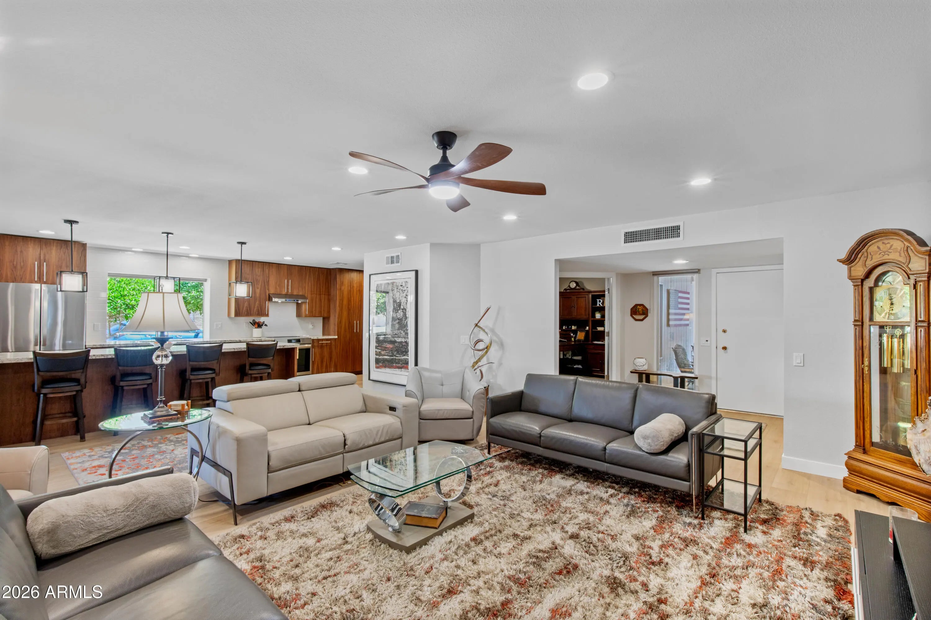 Newly remodeled from the studs up, this home blends contemporary design with high-end finishes. Highlights include new flooring and trim, rich walnut kitchen cabinetry, quartz & granite countertops, professional-grade appliances, fully updated bathrooms, and new lighting throughout. Open-concept layout ideal for entertaining -- a turnkey showcase of quality craftsmanship and modern style. The lifestyle of the Sun City community can't be beat - robust community centers with activities and clubs for every interest. Several heated pools/spas, pickleball, bowling alley, mini golf and more, come meet your new friends!