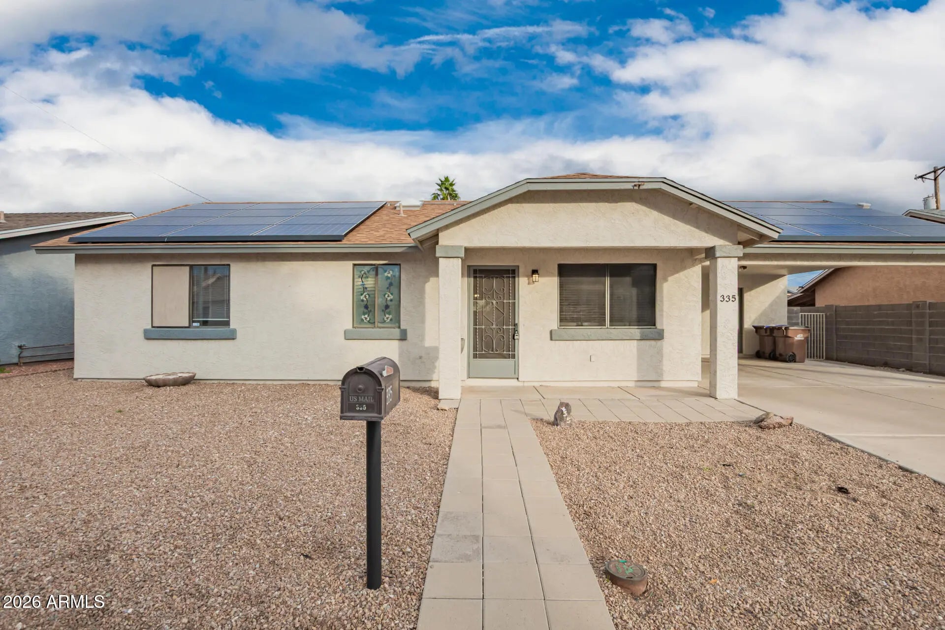 Move-in ready 3-bedroom, 2-bath home with new carpet and fresh interior paint throughout. The open, modern kitchen features white cabinetry, granite countertops, and stainless steel appliances—perfect for everyday living and entertaining. The spacious primary suite offers a walk-in shower, while the secondary bath includes a soaking tub. Both the primary and second bedrooms are generously sized. An interior laundry room for storage and convenience. Nestled in a quiet neighborhood, conveniently located to the US-60 and the 202,