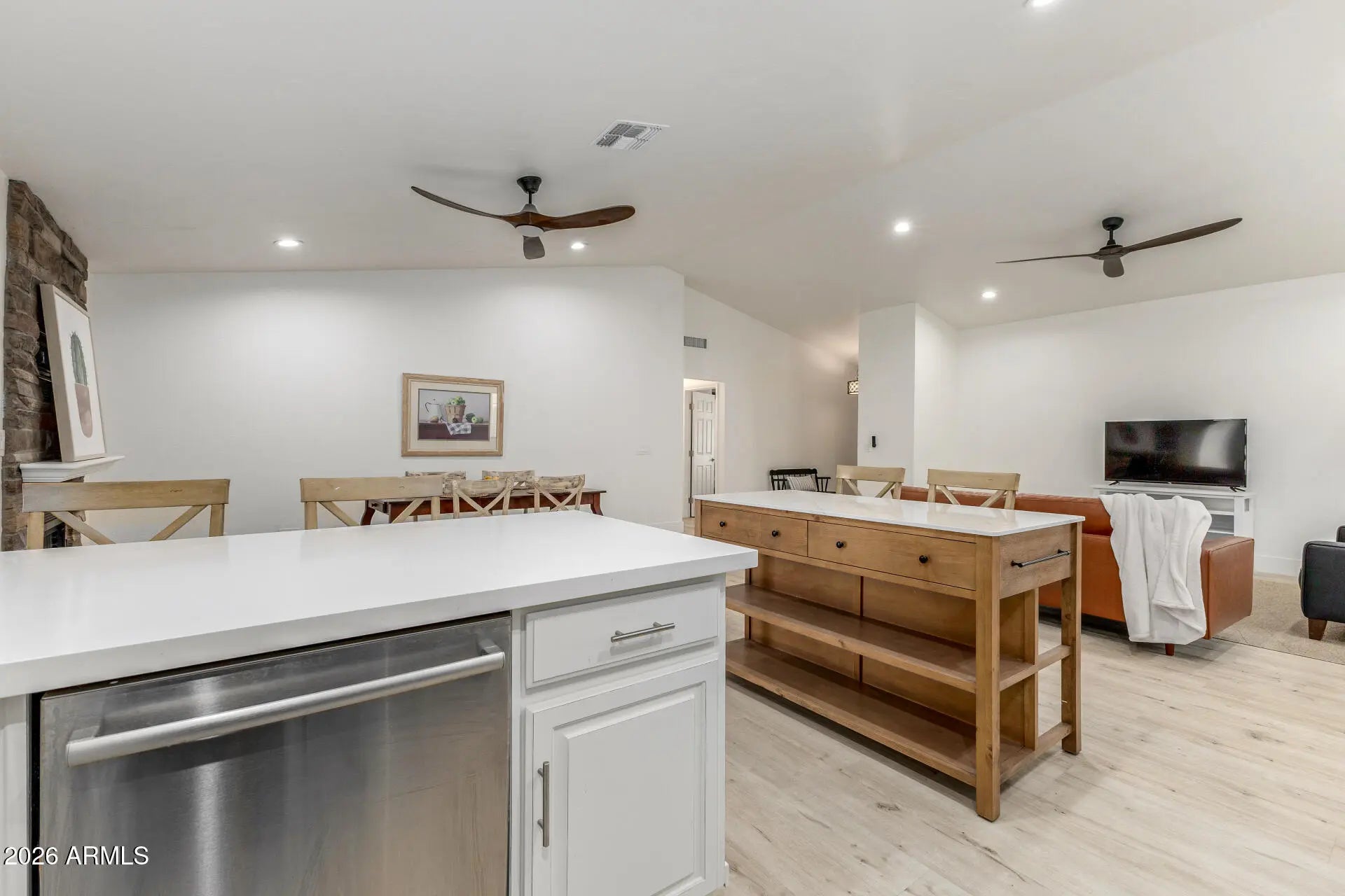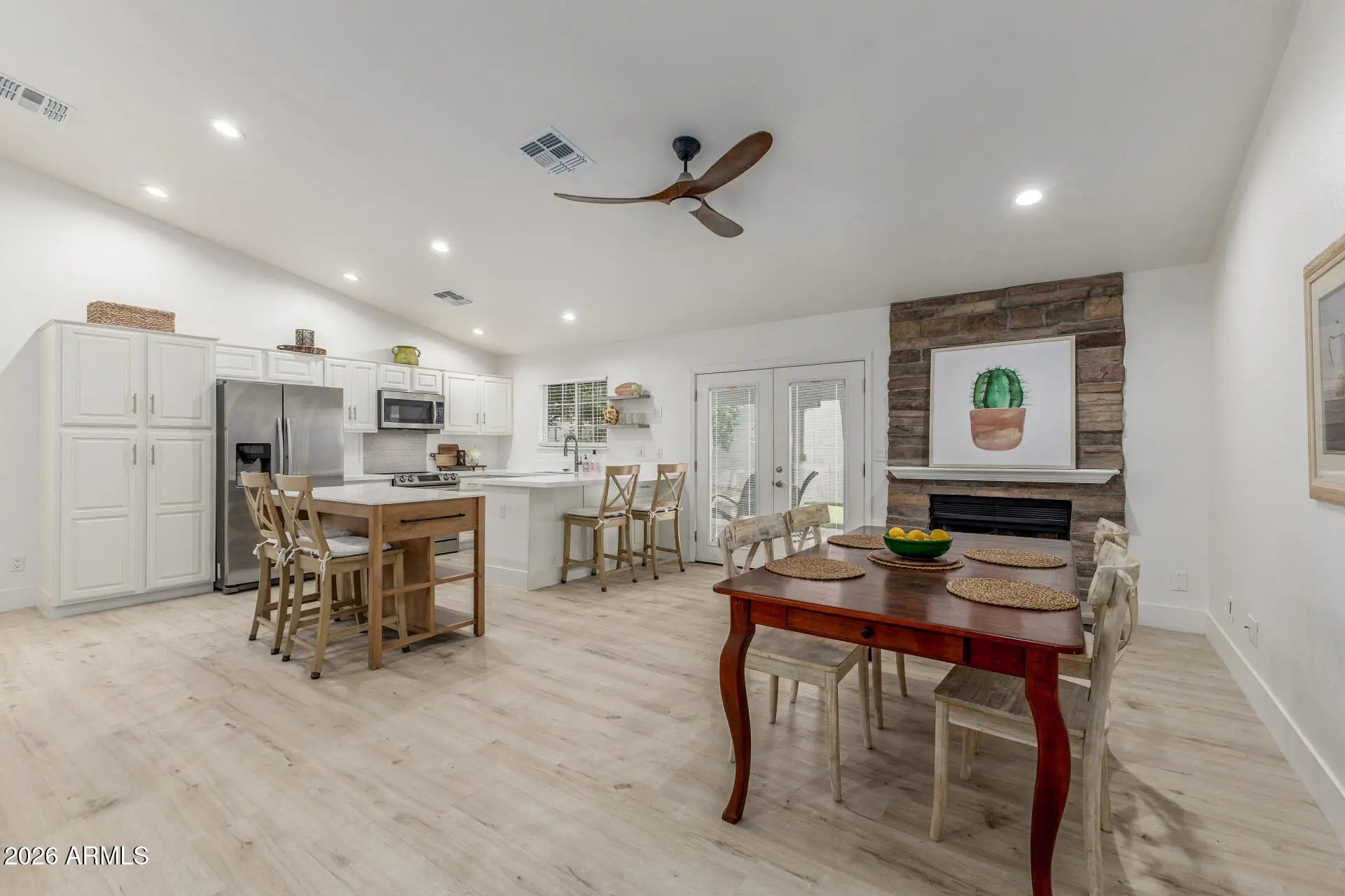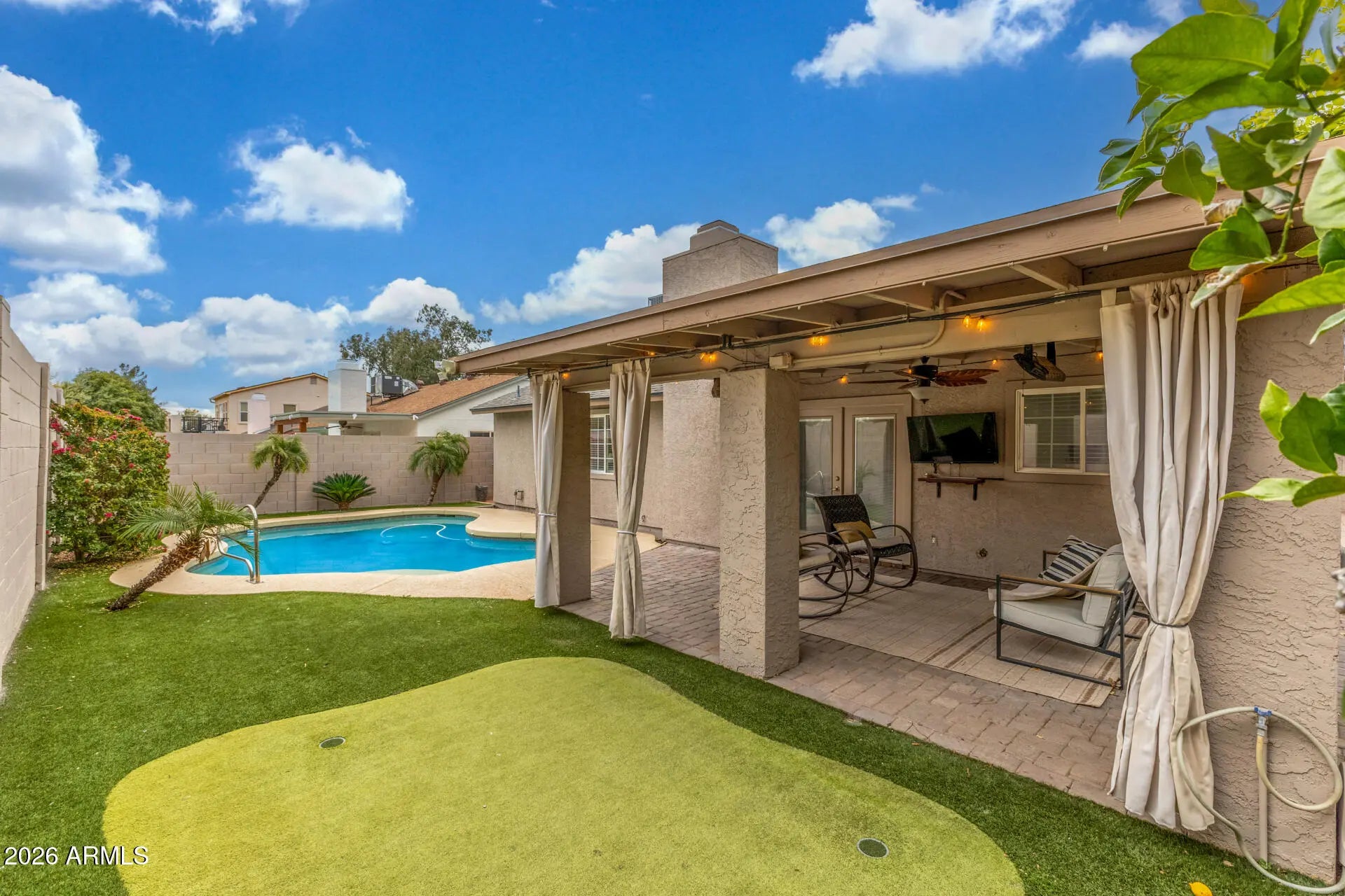 Discover this remodeled home in the highly sought-after 85254 zip code, minutes from Kierland Commons and convenient to the new Paradise Valley Mall development. Enjoy low-maintenance landscaping, a two-car garage with epoxy flooring, and a wide paver driveway for RV parking. Modern features include a spacious open-concept floor plan enhanced by vaulted ceilings and LVP floors, quartz countertops, stainless steel appliances, and a new kitchen island. Both bathrooms have been recently reimagined with clean finishes. The backyard oasis is perfect for entertaining under the covered patio while overlooking artificial turf, your own putting green, and sparkling pool. New roof and HVAC in 2024. This renovated property combines location, modern functionality, and luxurious comfort. Owner/Agent