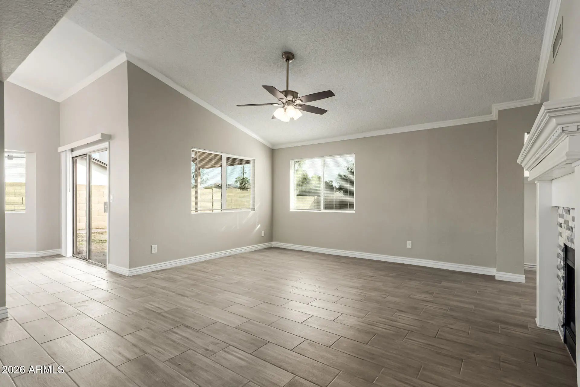 Looking for a space, comfort, and freedom with no HOA? This 4-bedroom gem delivers it all, starting with a 2-car garage and ample parking to fit your lifestyle. Inside, vaulted ceilings and wood-look flooring set the tone, paired with a soft neutral palette, a cozy fireplace, and a generously sized living area ideal for gathering or unwinding. The kitchen impresses with stainless steel appliances, white cabinetry, quartz countertops, a charming bay window, and a walk-in pantry. Recharge in the primary retreat featuring a chic bath with a garden tub, walk-in shower, dual sinks, and a spacious walk-in closet. The expansive backyard includes a covered patio and plenty of room to add a pool or bring your dream outdoor space to life. Minutes from dining, schools, and more. Don't miss this out!