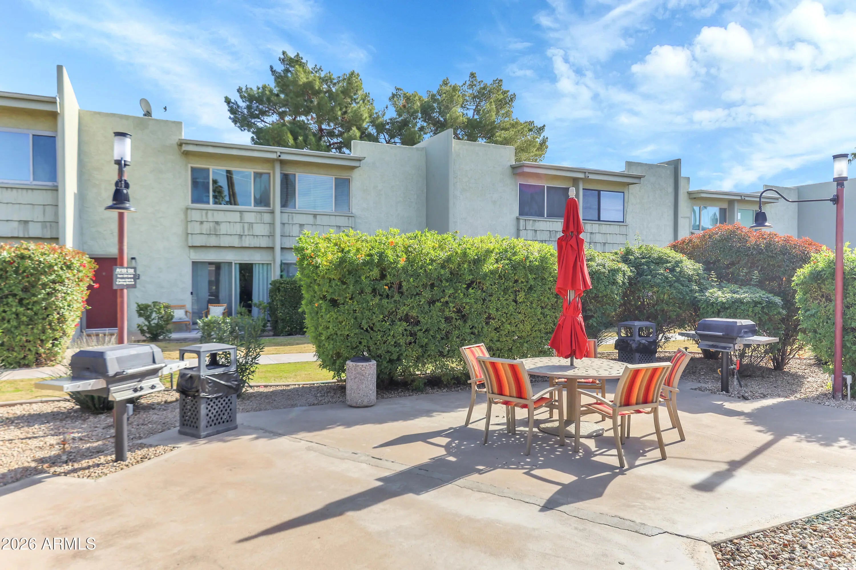 Welcome Home! Fantastic 2/2 modern setup. Court-side unit to pool/fun&games areas. Light and Bright, Fresh Paint and newer energy efficient windows. Frosted Glass Doors for great natural light throughout. Then there' the incredibly stunning kitchen: Quartz Counters, Beautiful Cabinets, Stainless Steel Appliances, Glass Tile Backsplash. Bottom floor with Wood Plank-like TILE, upstairs Newer Carpet. Newer HCAC with brand new fans throughout. Exit the Living Room to your large patio with new indoor/outdoor carpeting. All this just steps away from Scottsdale Fashion Square with the Valley's Best Shopping and Restaurants. Must See!!! Furniture is virtually staged.