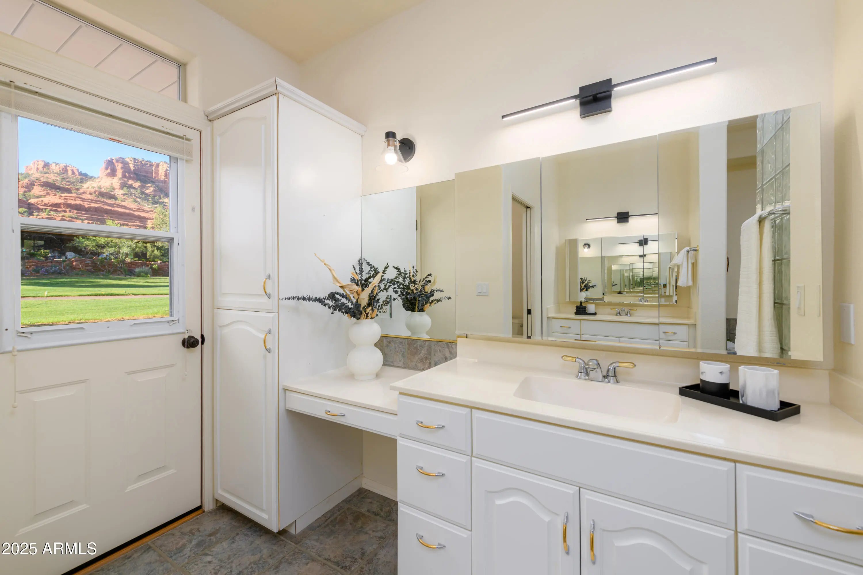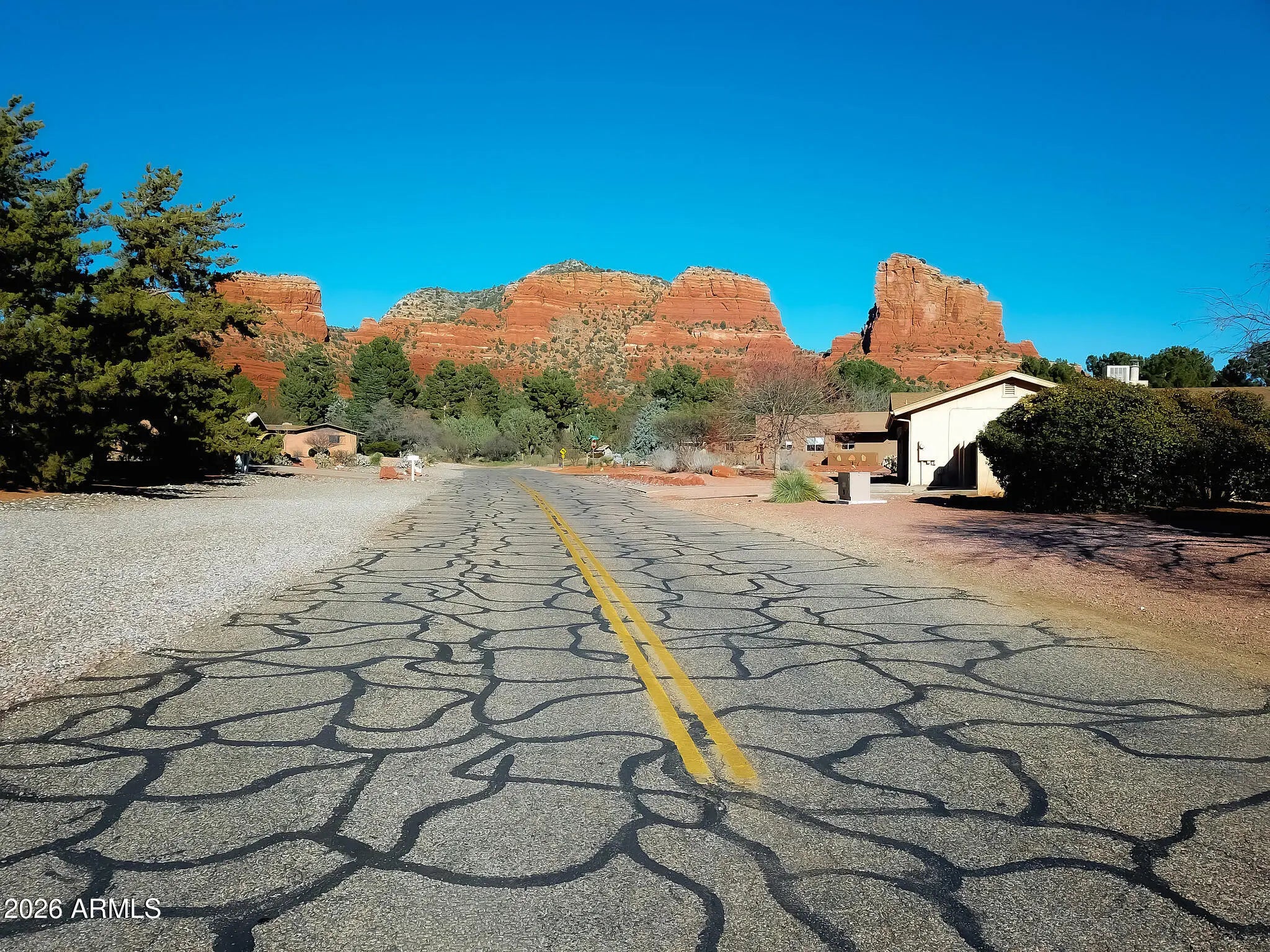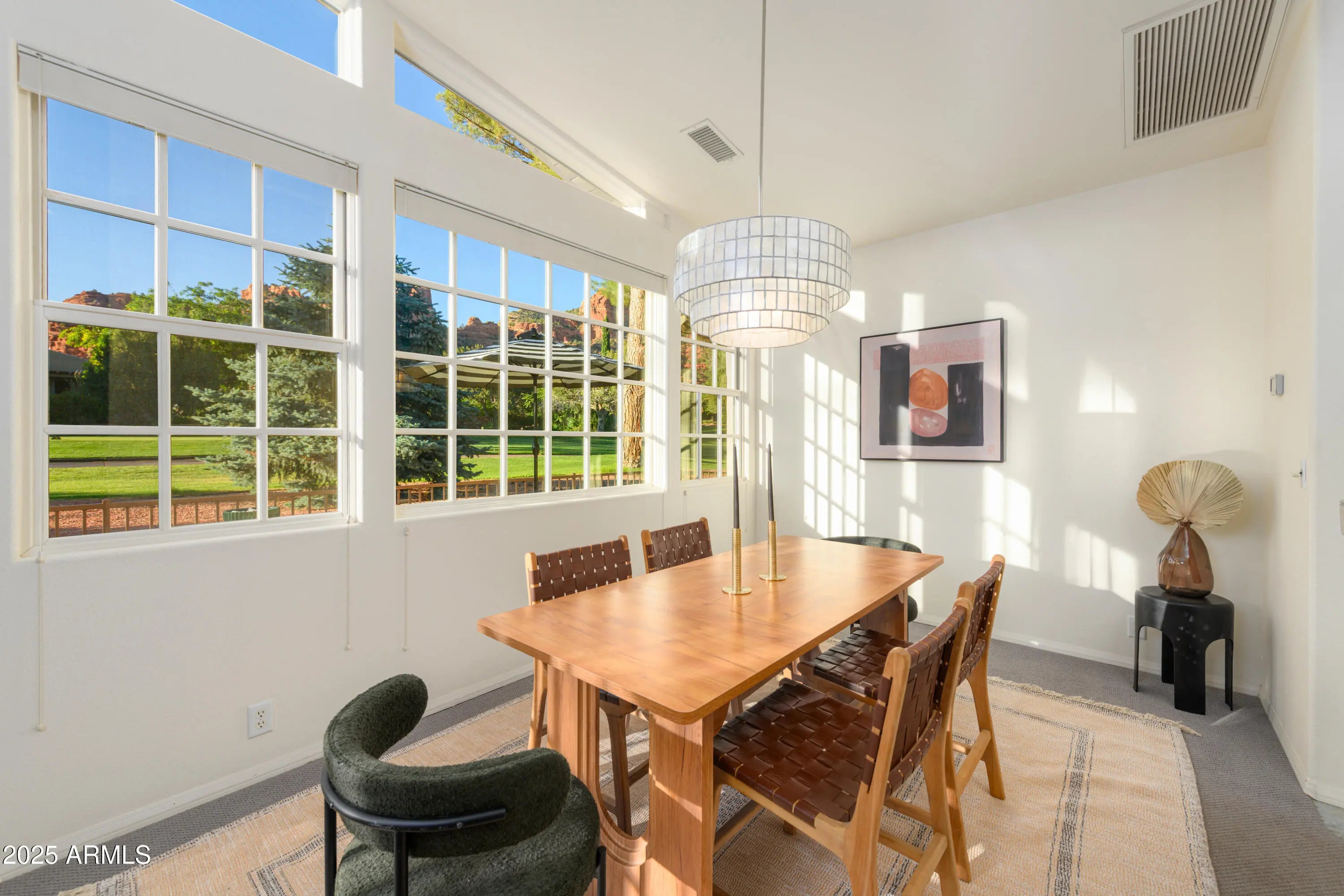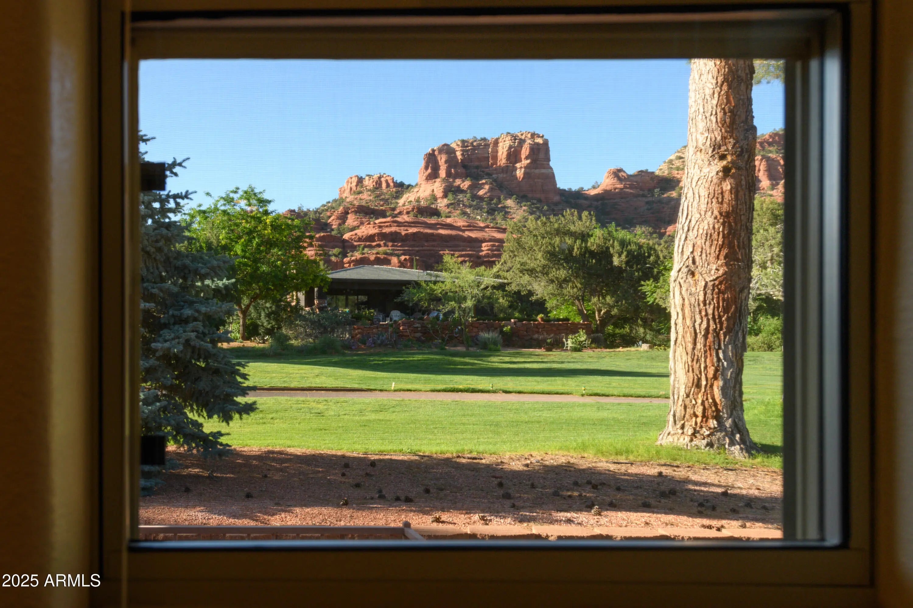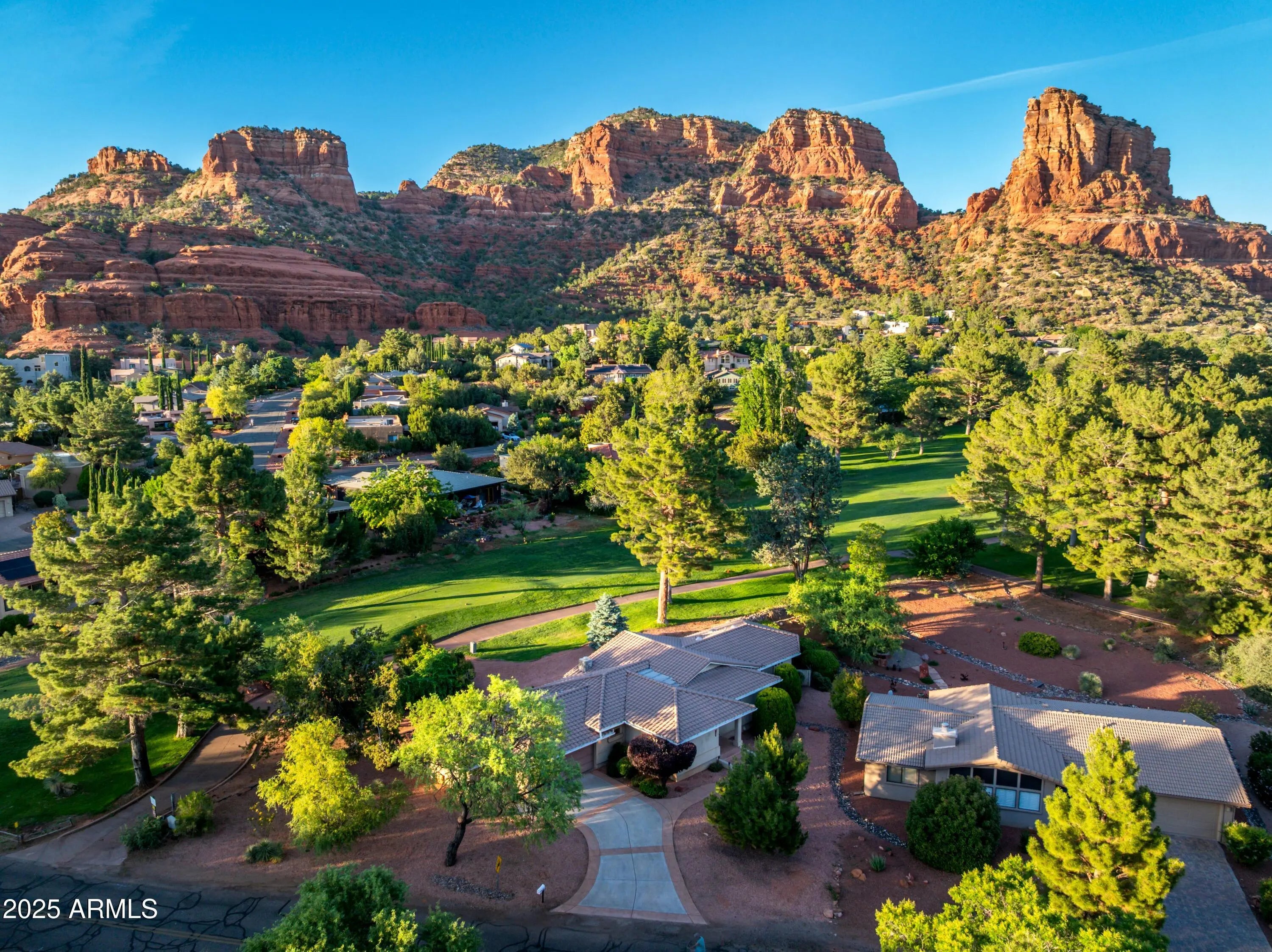Perched directly on the 15th tee of Oak Creek Country Club, experience a kind of paradise that only a Sedona golf course can provide! This custom-built residence commands sweeping views of emerald fairways framed by iconic Red Rock formations from your backyard. Unlike properties facing greenery alone, this home is advantageously positioned to enjoy Sedona's glorious mountains from nearly every window. Sip coffee on the deck as families of deer meander by, followed by a breathtaking stroll through the golf course. As tee-time begins later in the winter, the sun stays for you! Complete the evening with a soak in your hot tub, which can be conveniently added to the custom enclosure off of the deck, with direct exterior access to your primary bath. Upon entering the home you are greeted with a light and bright open interior, provided by the wonderfully high ceilings and floor-to-ceiling windows. This residence boasts an ideal split floorplan, perfectly appointed for hosting guests or separating living space for family. The freshly refinished speckled epoxy garage offers 2.5 bays, the half-bay designated for your personal golf cart. This home has remained under single-ownership, presenting a rare opportunity for a new owner to bring their vision to life in this tranquil Sedona setting. With clubhouse dining, pickleball, and world class hiking in the Village of Oak Creek, serenity awaits you! 30 day minimum rentals are permitted in this desirable neighborhood. Recent updates include ~ Stainless Steel Appliances including custom built-in oven 2025 Speckled epoxy refinished 2.5 car garage floor 2025 HVAC tested and filter replaced 2025 Deck supports completely refinished 2024 Hot water heater replaced 2023 Carpet replaced throughout house 2023