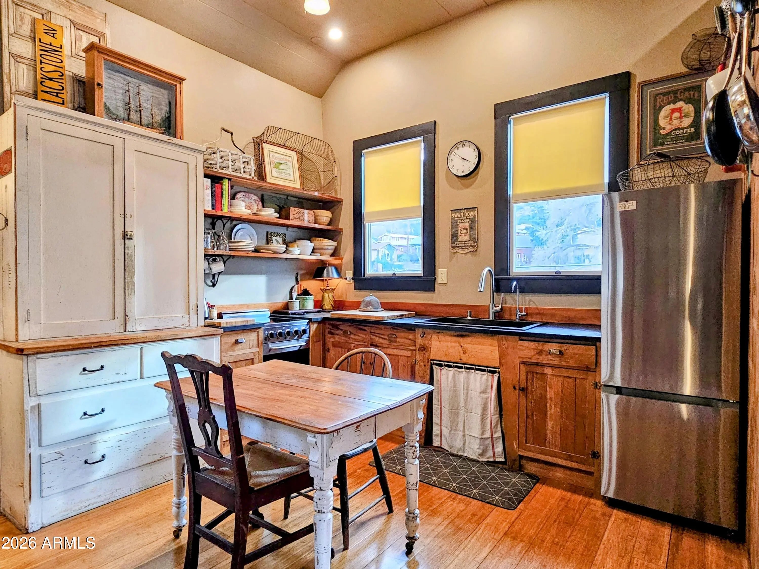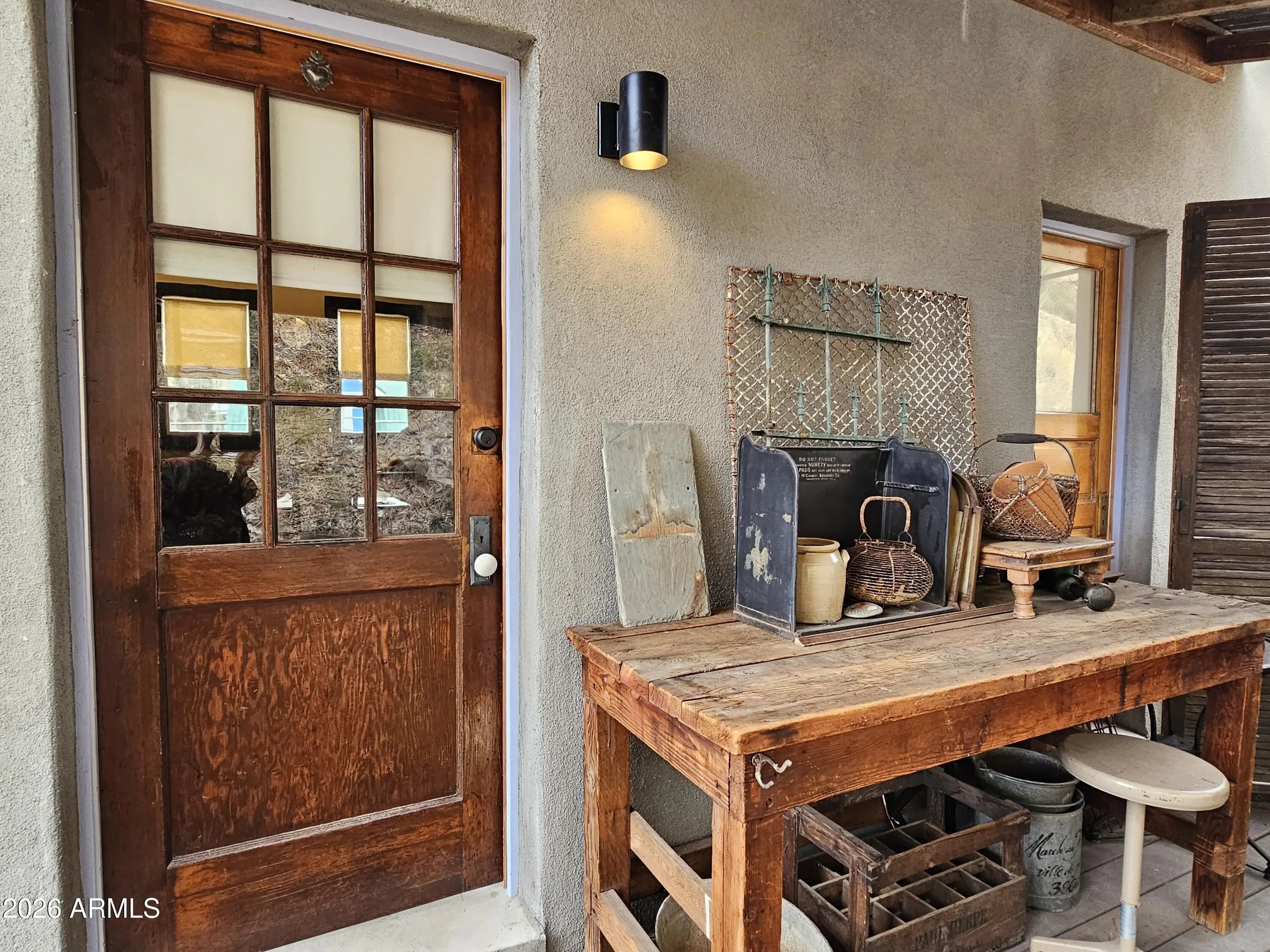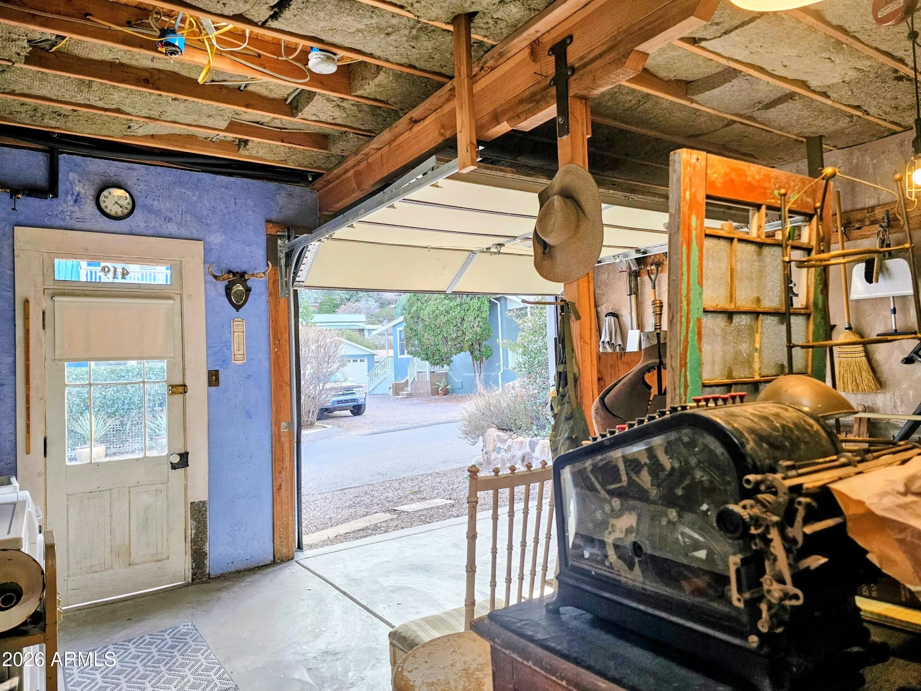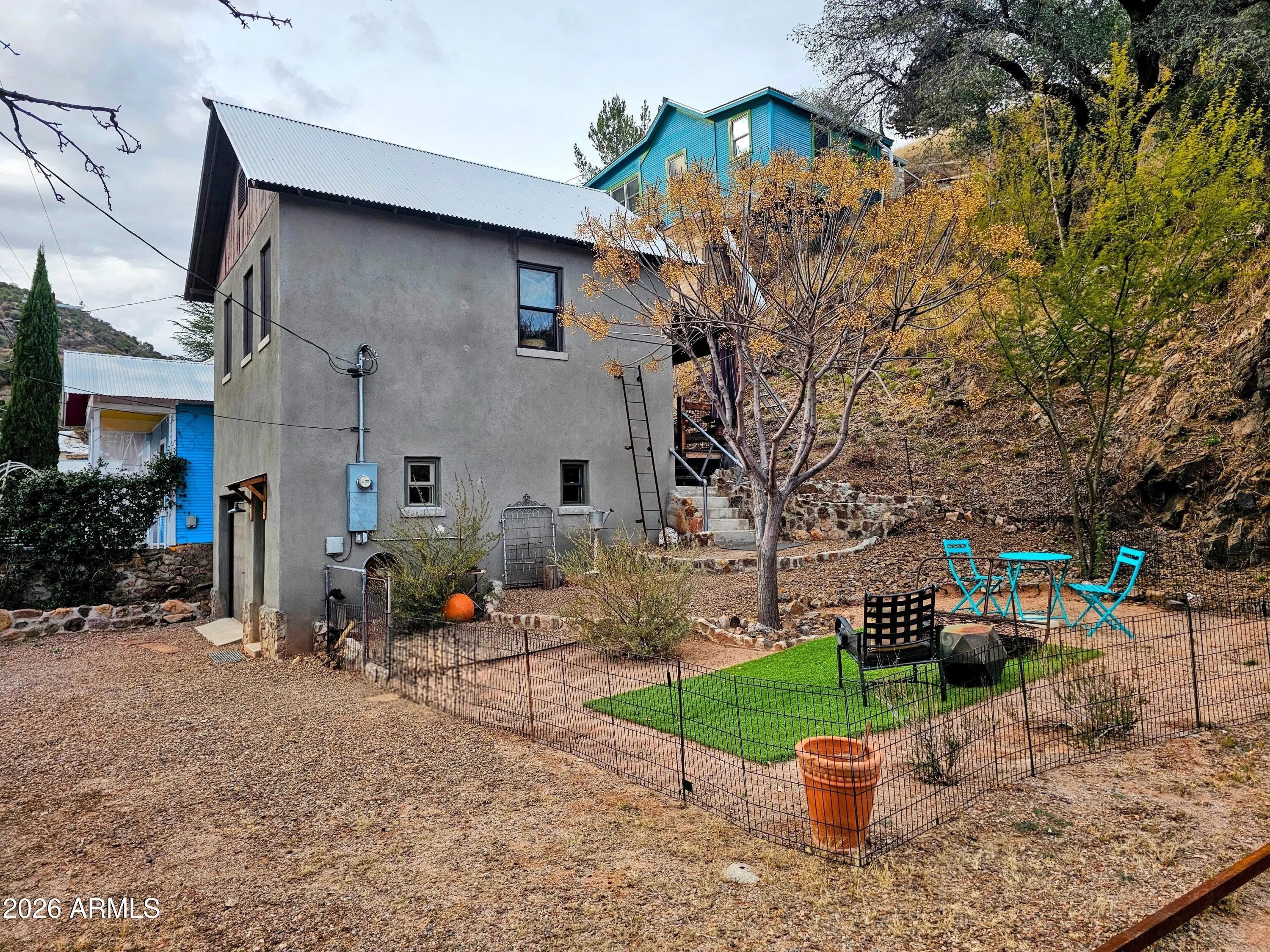 Old Bisbee- Newer Carriage House, Built in 2019 on .27 Acre, with 396 sq ft of Living Space; Featuring 11' Ceilings, Bamboo Flooring, Dual Pane Windows, lots of natural light, Repurposed Historic Barn Board Paneling and Kitchen Cabinets with Vintage Hardware, Antique Doors and Light Fixtures, On Demand Water Heater, and Triple Stage Water Filter. 200 Amp Electrical Panel, Metal Roof, 396 sq ft Garage/Workshop/Studio below living space, with Full Laundry and Utility Sink. Property is easily accessible, with plenty of parking, large level yard/garden with ample space for additional structure (Architectural plans for 800 sq ft additional Residence included).