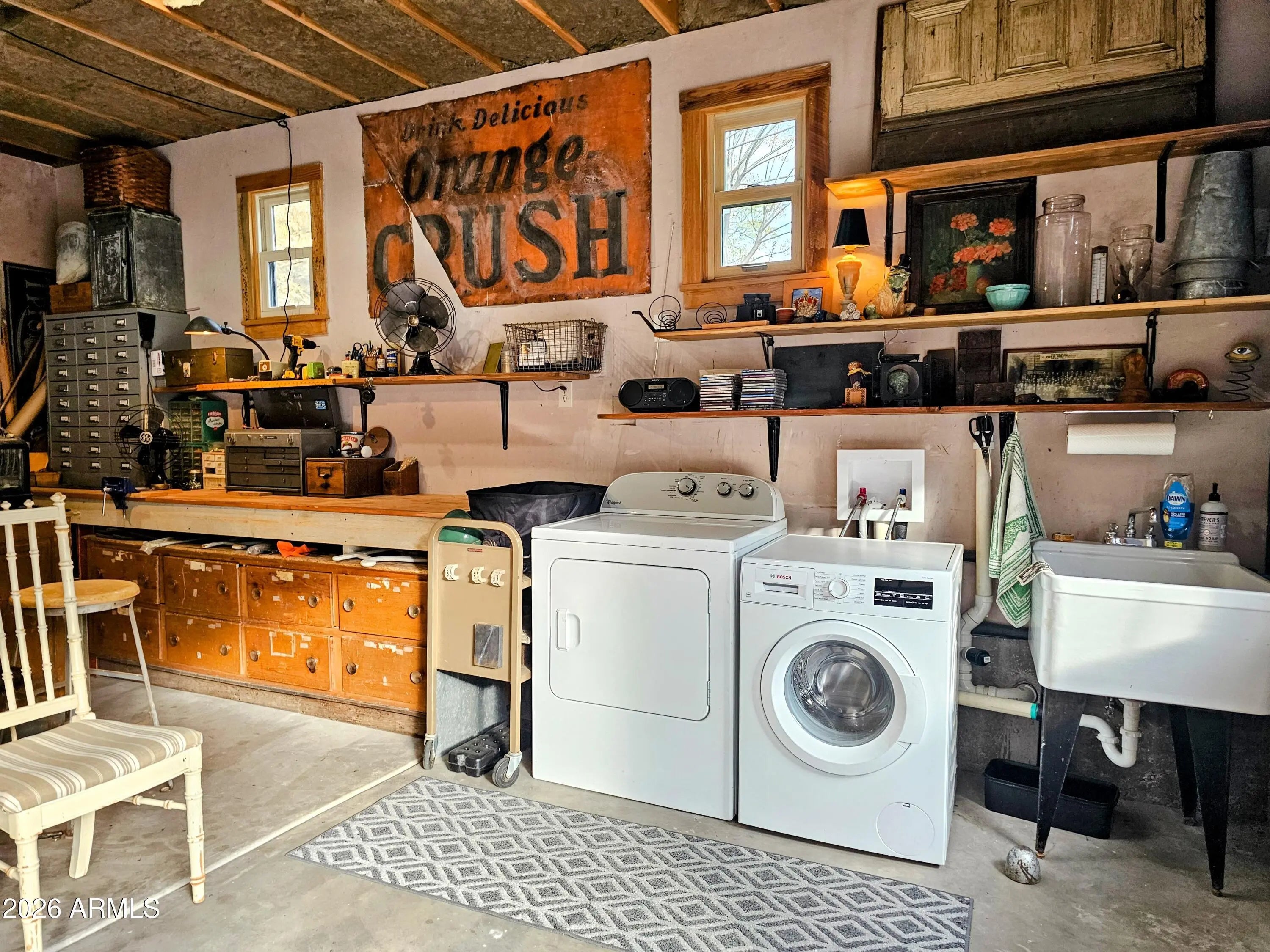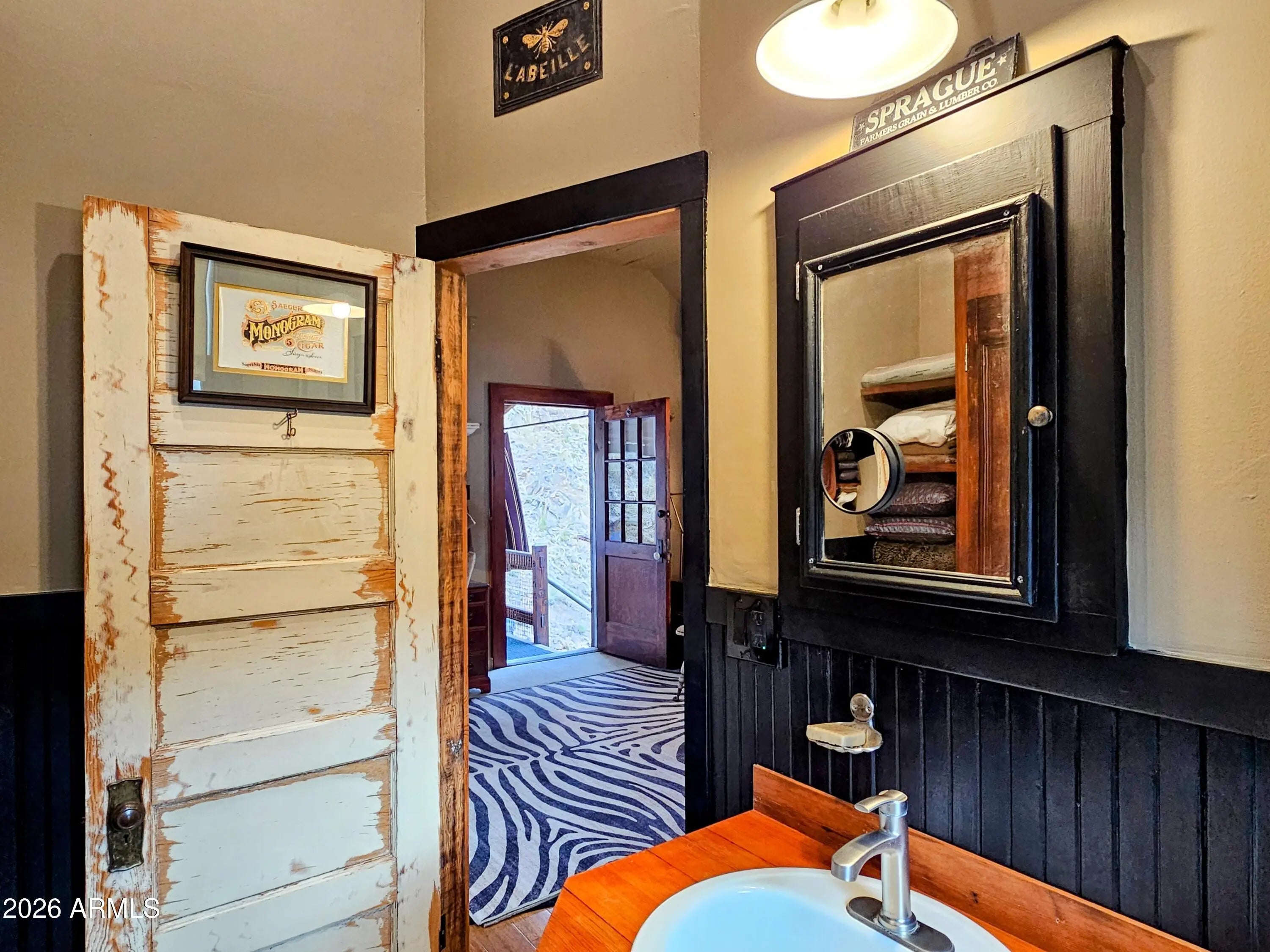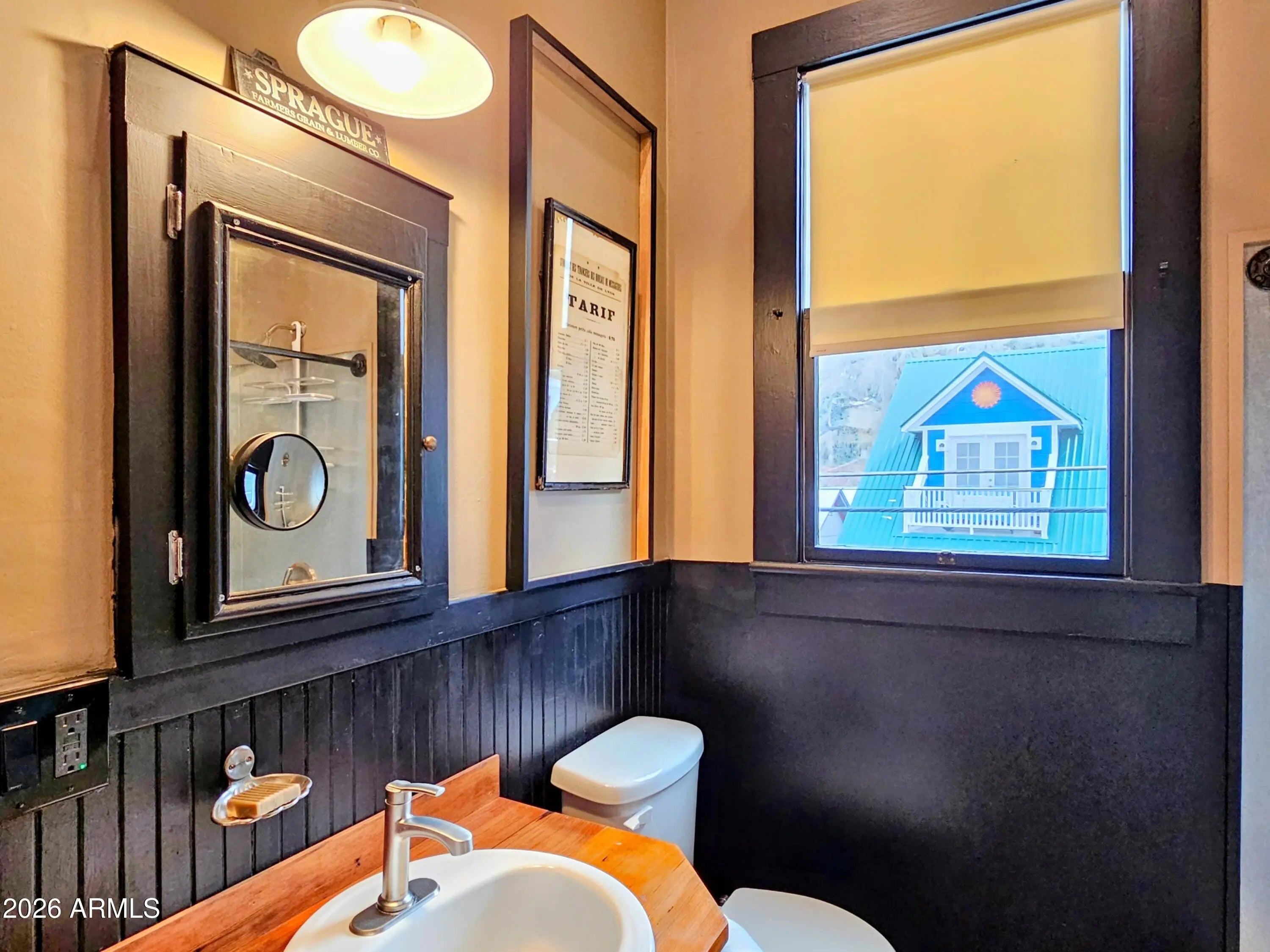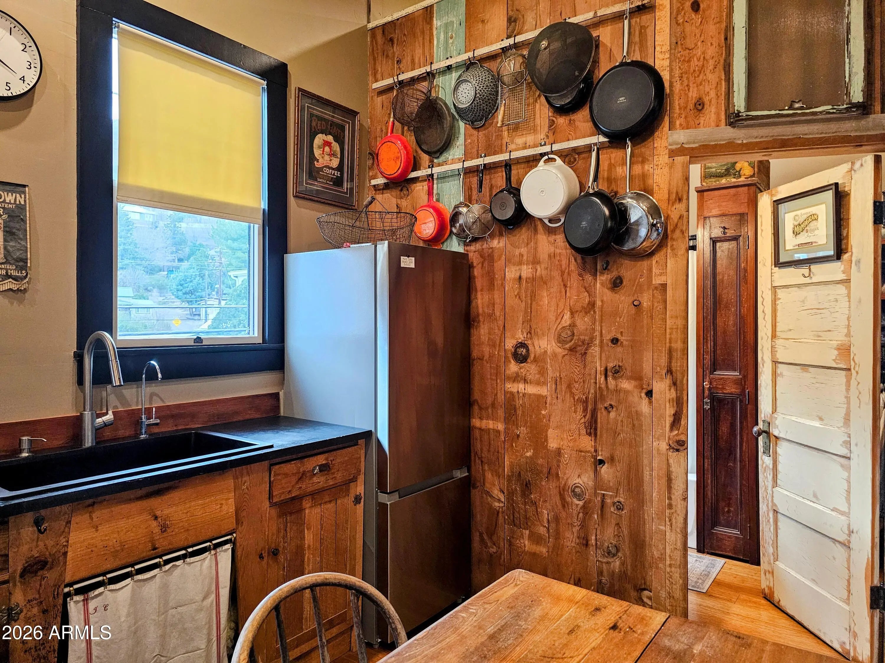Old Bisbee- Newer Carriage House, Built in 2019 on .27 Acre, with 396 sq ft of Living Space; Featuring 11' Ceilings, Bamboo Flooring, Dual Pane Windows, lots of natural light, Repurposed Historic Barn Board Paneling and Kitchen Cabinets with Vintage Hardware, Antique Doors and Light Fixtures, On Demand Water Heater, and Triple Stage Water Filter. 200 Amp Electrical Panel, Metal Roof, 396 sq ft Garage/Workshop/Studio below living space, with Full Laundry and Utility Sink. Property is easily accessible, with plenty of parking, large level yard/garden with ample space for additional structure (Architectural plans for 800 sq ft additional Residence included).