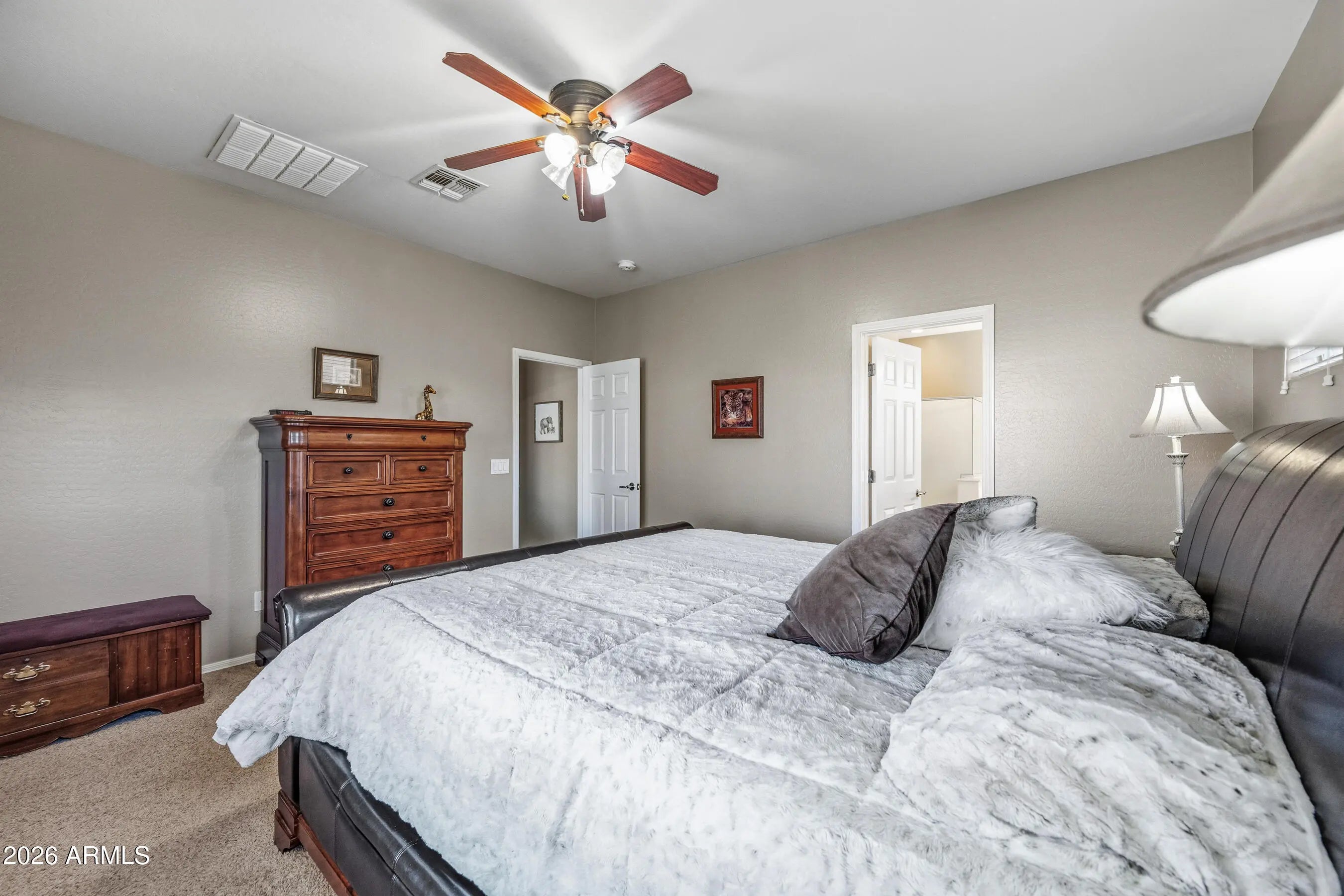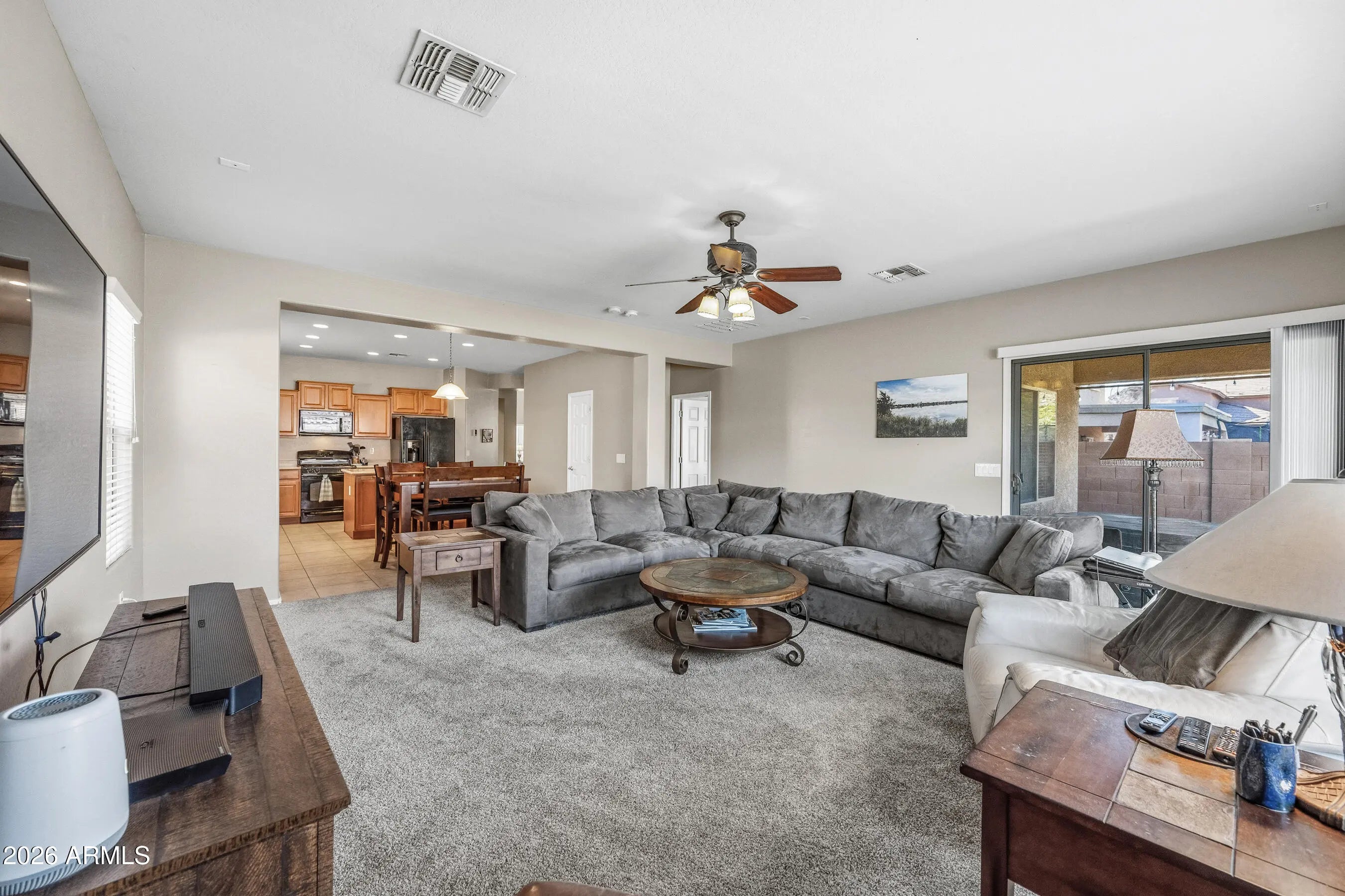 Welcome home to this spacious five-bedroom, three-bath home in the sought-after Anthem at Merrill Ranch community. Designed with families in mind, this home features a desirable primary bedroom downstairs, offering privacy and convenience. The open-concept living and kitchen areas, including gas stove, create the perfect space for everyday living, homework time, and family gatherings. Additional bedrooms provide flexibility for kids, guests, or home offices. Enjoy a backyard ready for play, pets, or weekend barbecues, along with access to resort-style community amenities including pools, parks, walking trails, golf, fitness center, and year-round events. Located near schools, shopping, dining - this home offers comfort, a NEW AC, space, and a true sense of community.