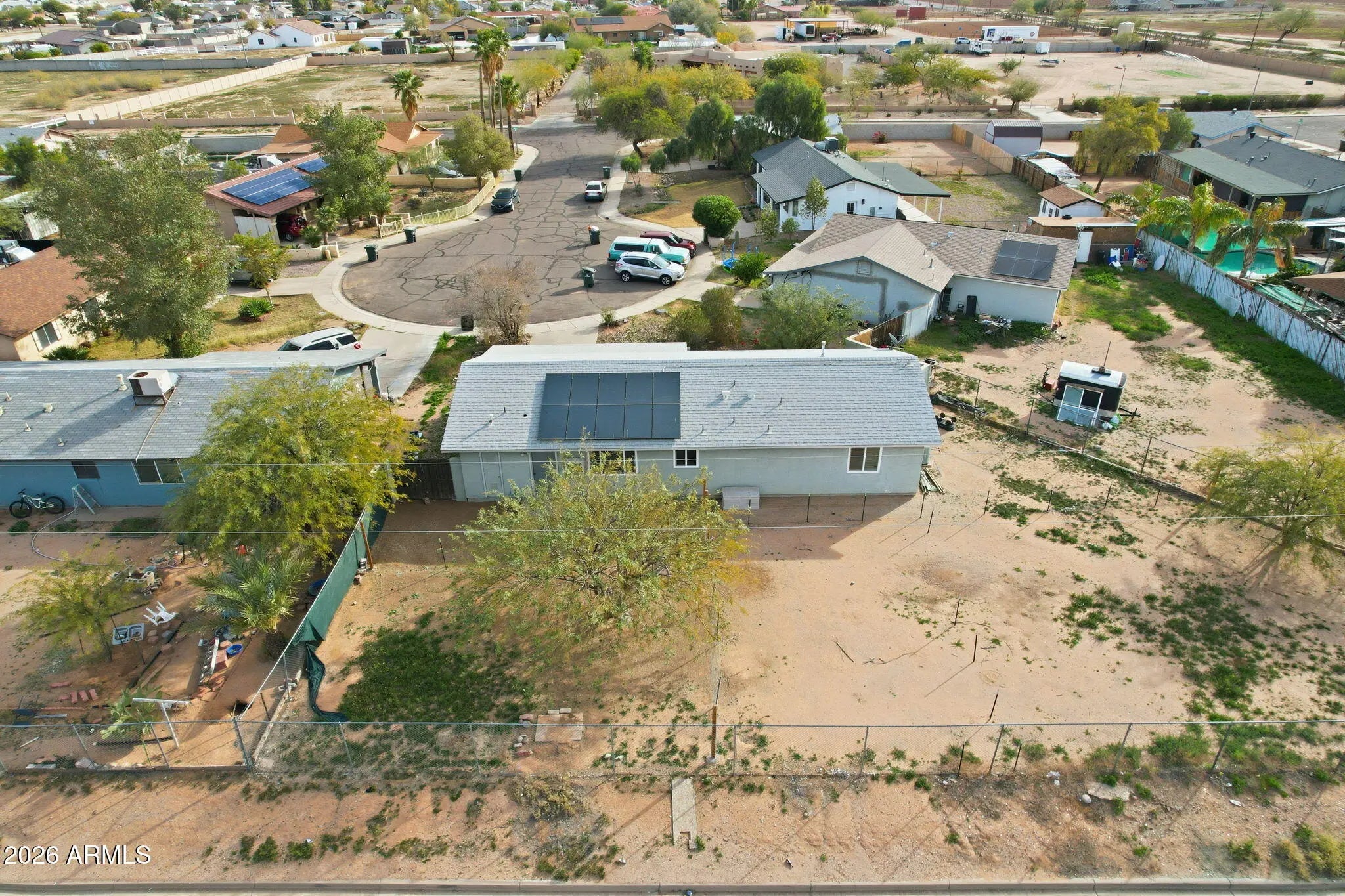Updated 3-bed, 1.5-bath home on an oversized cul-de-sac lot—packed with value! Spacious bedrooms and a functional layout offer comfortable everyday living. Newer appliances include a gas stove, and the refrigerator, washer and dryer convey—saving you money from day one. Enjoy a HUGE fenced backyard perfect for relaxing or entertaining. Leased solar with a low monthly payment keeps APS bills nearly non-existent. Conveniently located near shopping, local businesses, and historic Downtown Casa Grande. Ideal starter home or great investment opportunity!