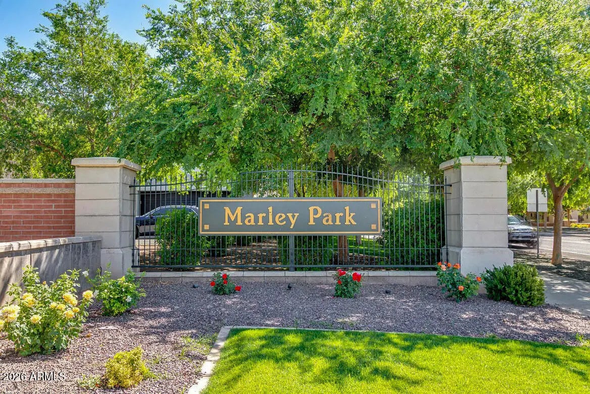 Charming 4 bedroom, 2.5 bath residence in desirable Marley Park, available for immediate move-in! NEW carpet and NEW interior paint. This low-maintenance home showcases beautiful Spanish-style architecture with Mediterranean details including a charming courtyard, front porch archways, and arched windows. The open kitchen features an island with breakfast bar, butler's pantry, and extra lower cabinets in the dining area. French doors overlook a flagstone courtyard with a built-in BBQ and fireplace - perfect for entertaining. The primary suite offers double sinks and a separate tub and shower. 2 car garage includes built-in garage cabinets. Enjoy Marley Park amenities with a heated pool, spa, parks, playgrounds, and biking/walking paths. Come see this home today!
