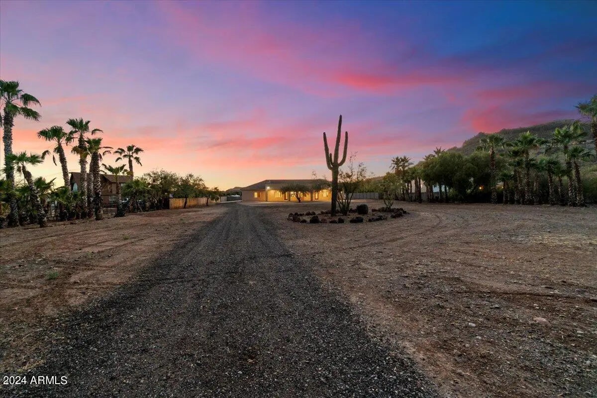 Discover luxury & tranquility in this pristine Desert Hills home set on 1.25 acres w sweeping mountain views. Designed for seamless indoor-outdoor living, this open-concept floor plan offers comfort & sophistication. The gourmet kitchen, features commercial-grade appliances, dual islands, a breakfast nook & a formal dining area. Other highlights include no HOA, no interior steps, rich wood accents throughout, and walk-in closets in every bedroom. The primary bathroom showcases a Jacuzzi-style soaking tub. Practical amenities include a spacious laundry room w built-in cabinetry & sink, a 4-car garage equipped with 220v, and a back patio pre-wired for a hot tub. Recent enhancements include a finished block wall, staircase leading to the walk deck, completing this exceptional desert retreat.
