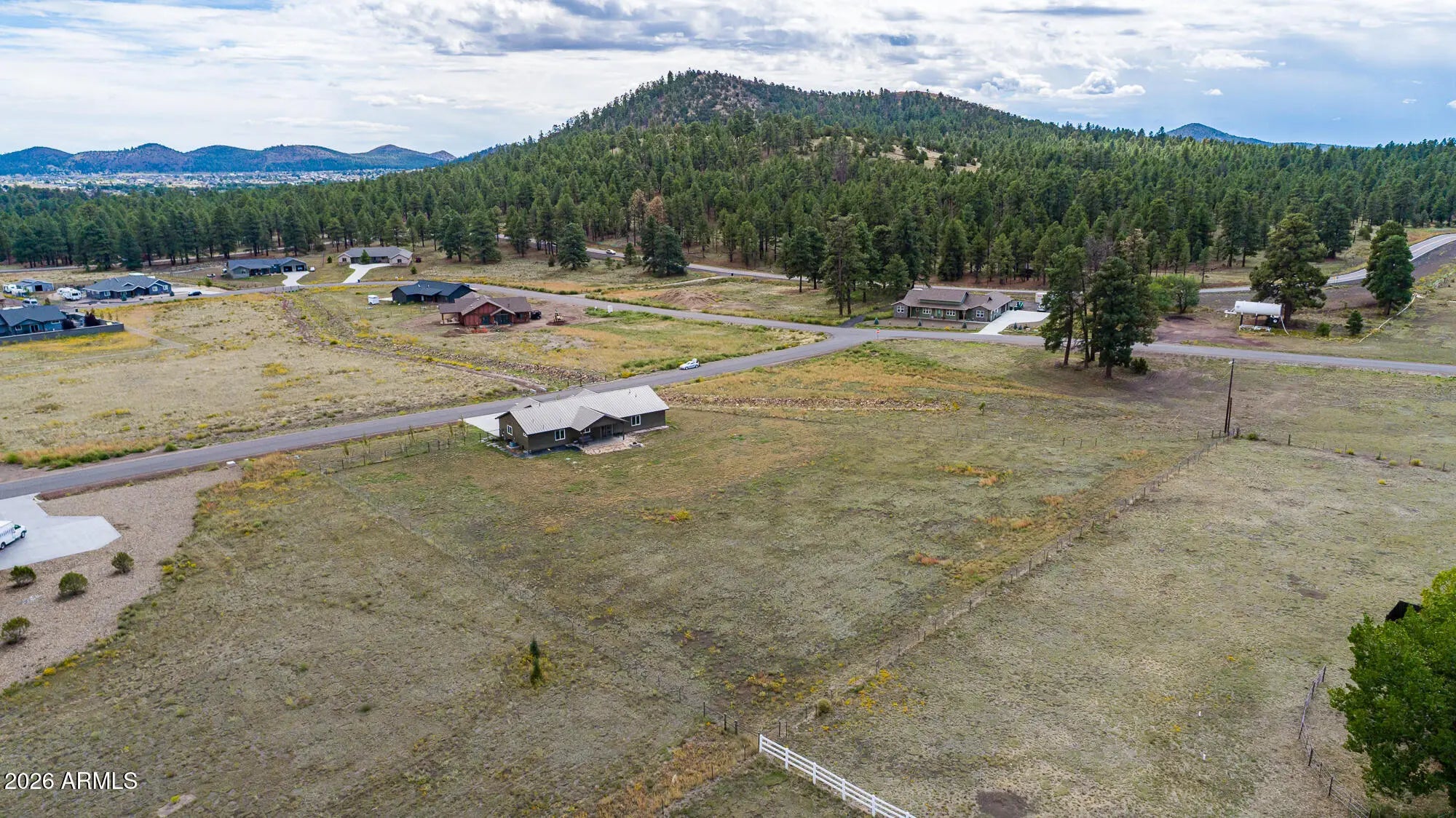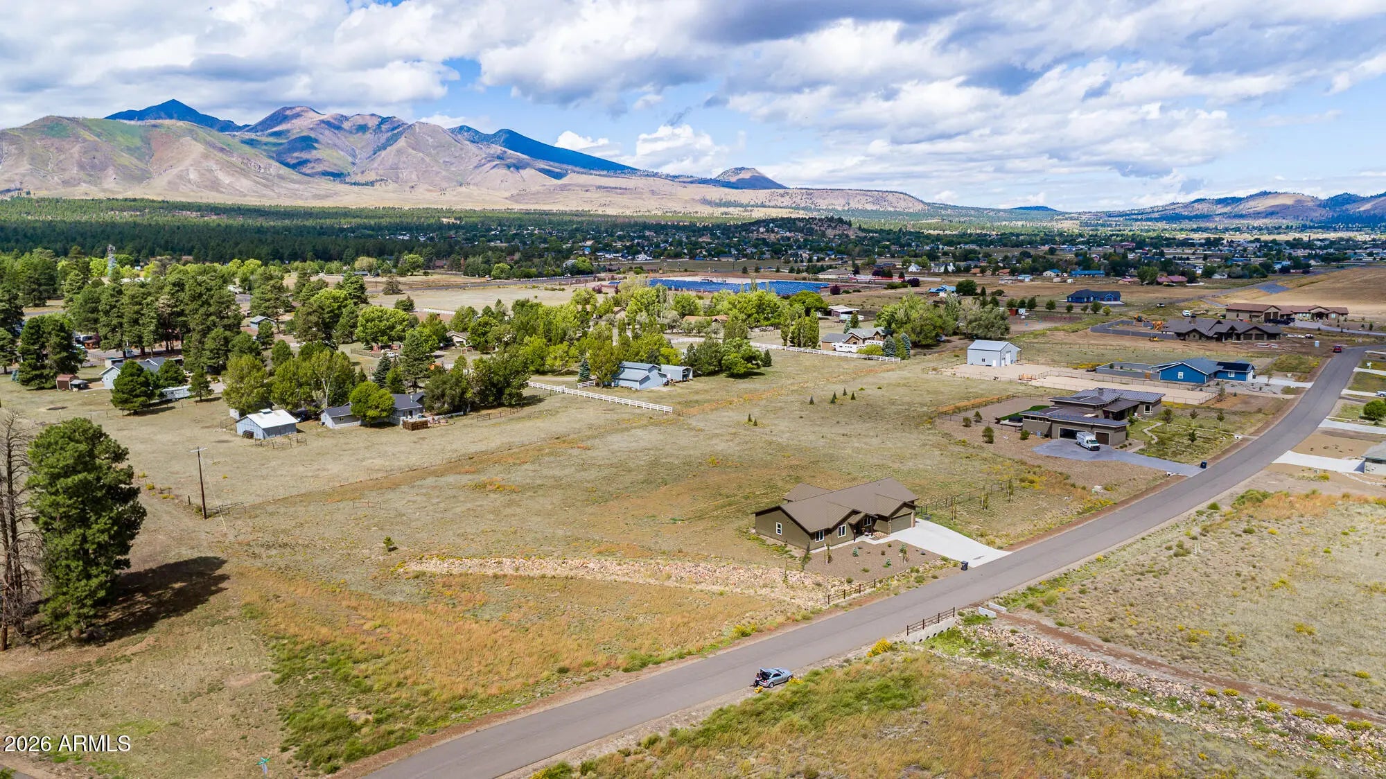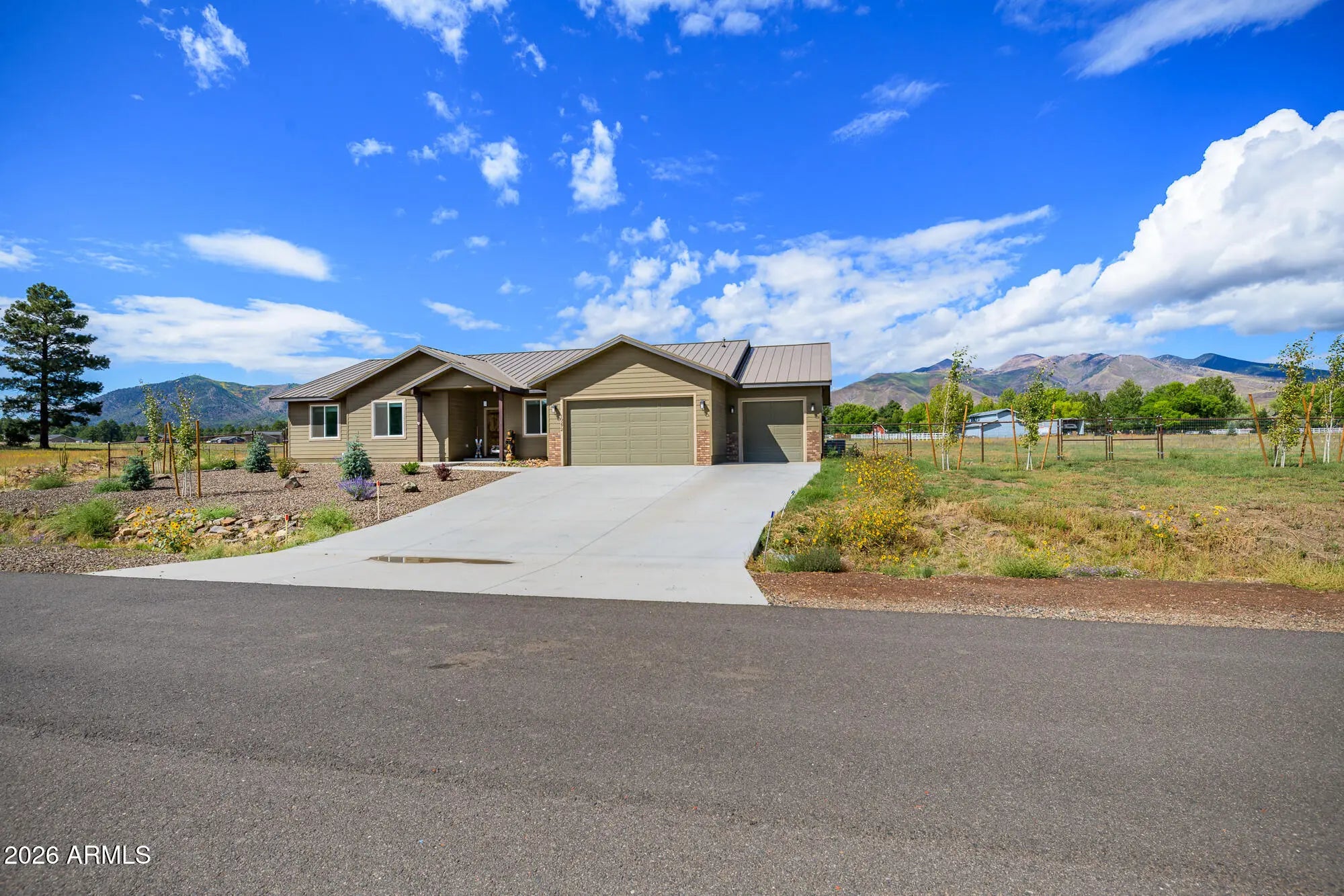 Stunning mountain-view home in the Johnson Ranch community! Built in 2021, this beautifully upgraded residence features a metal roof, tankless water heater, Energy Star® appliances and windows, custom Roman shades, and air conditioning. The open, light-filled floor plan offers four total bedrooms, three bathrooms, a dedicated office or den, and an ensuite bedroom ideal for guests. Enjoy a three-car garage, a fully fenced acreage that allows horses, and a great location within the neighborhood. Just minutes from Flagstaff Mall, dining, and everyday conveniences—this home truly checks all the boxes. A must-see—schedule your showing today! *FIRE PIT IN BACK CONVEYS