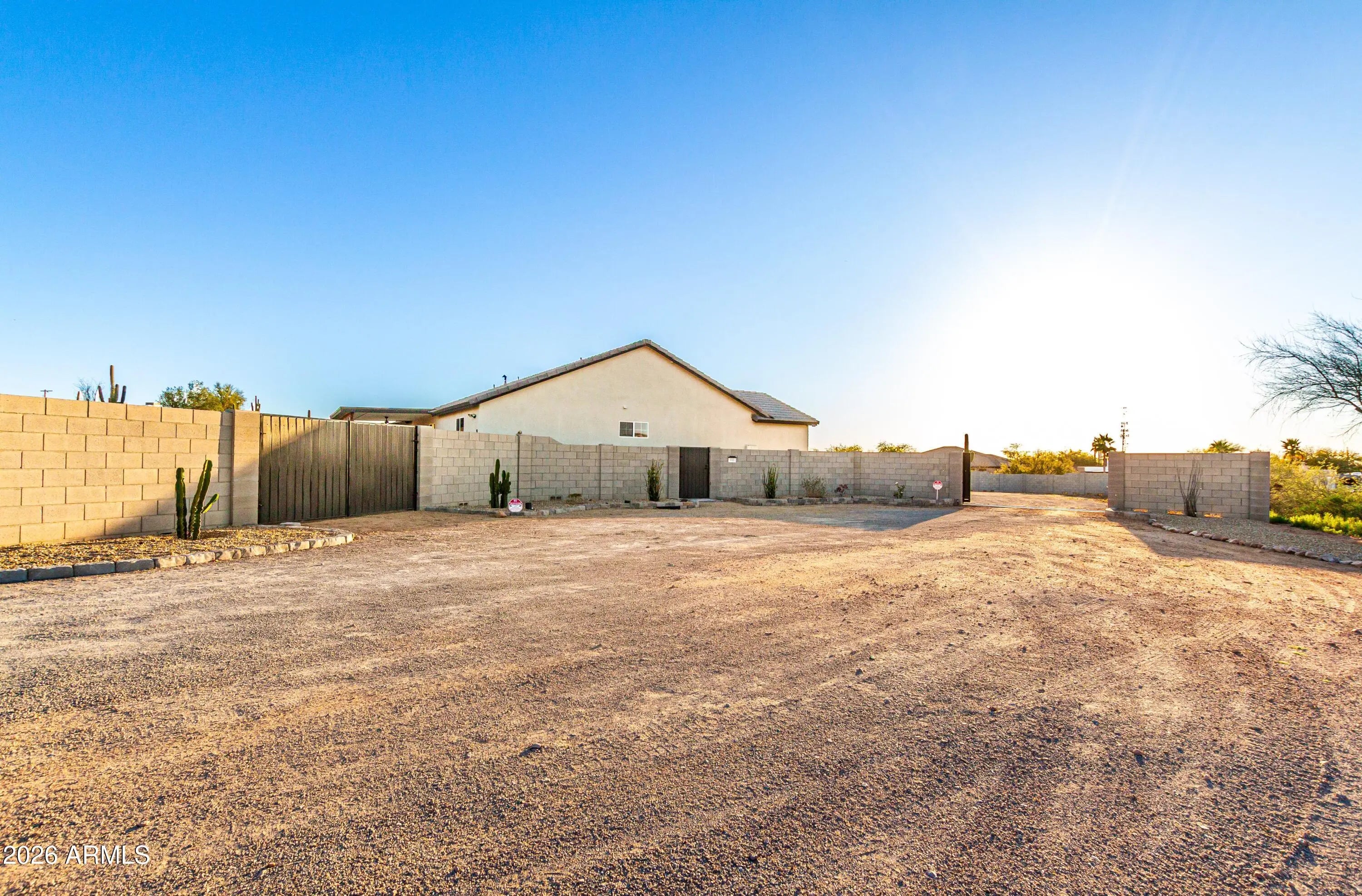 Adjacent to Wash, Street(s) Not Paved, East/West Exposure, Sprinklers In Rear, Sprinklers In Front, Corner Lot, Desert Back, Desert Front, Auto Timer H2O Front, Auto Timer H2O Back, Irrigation Front, Irrigation Back