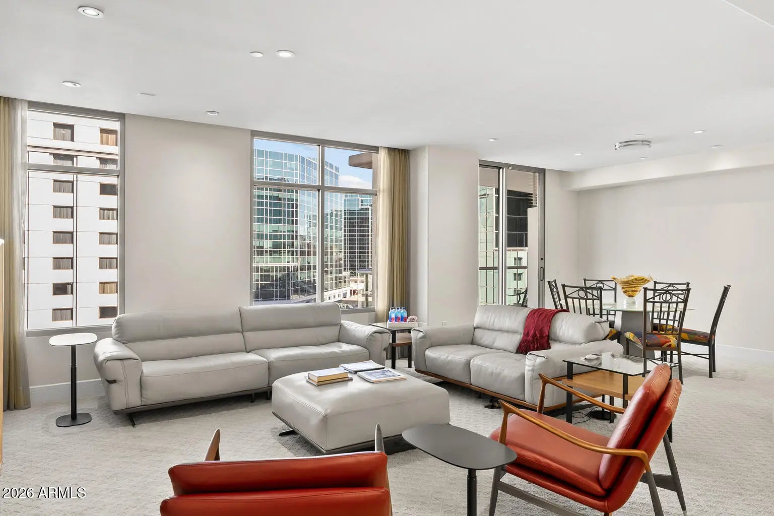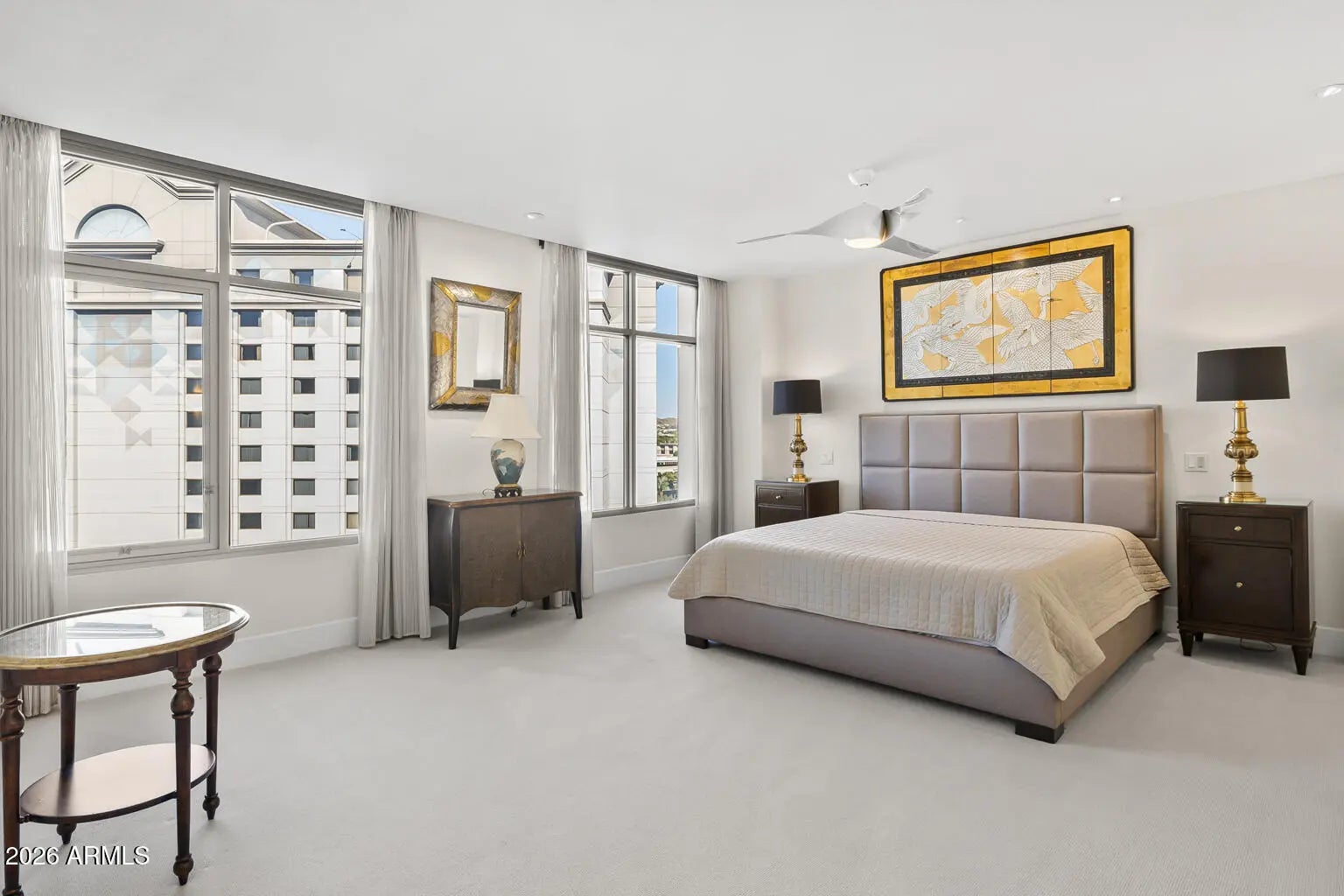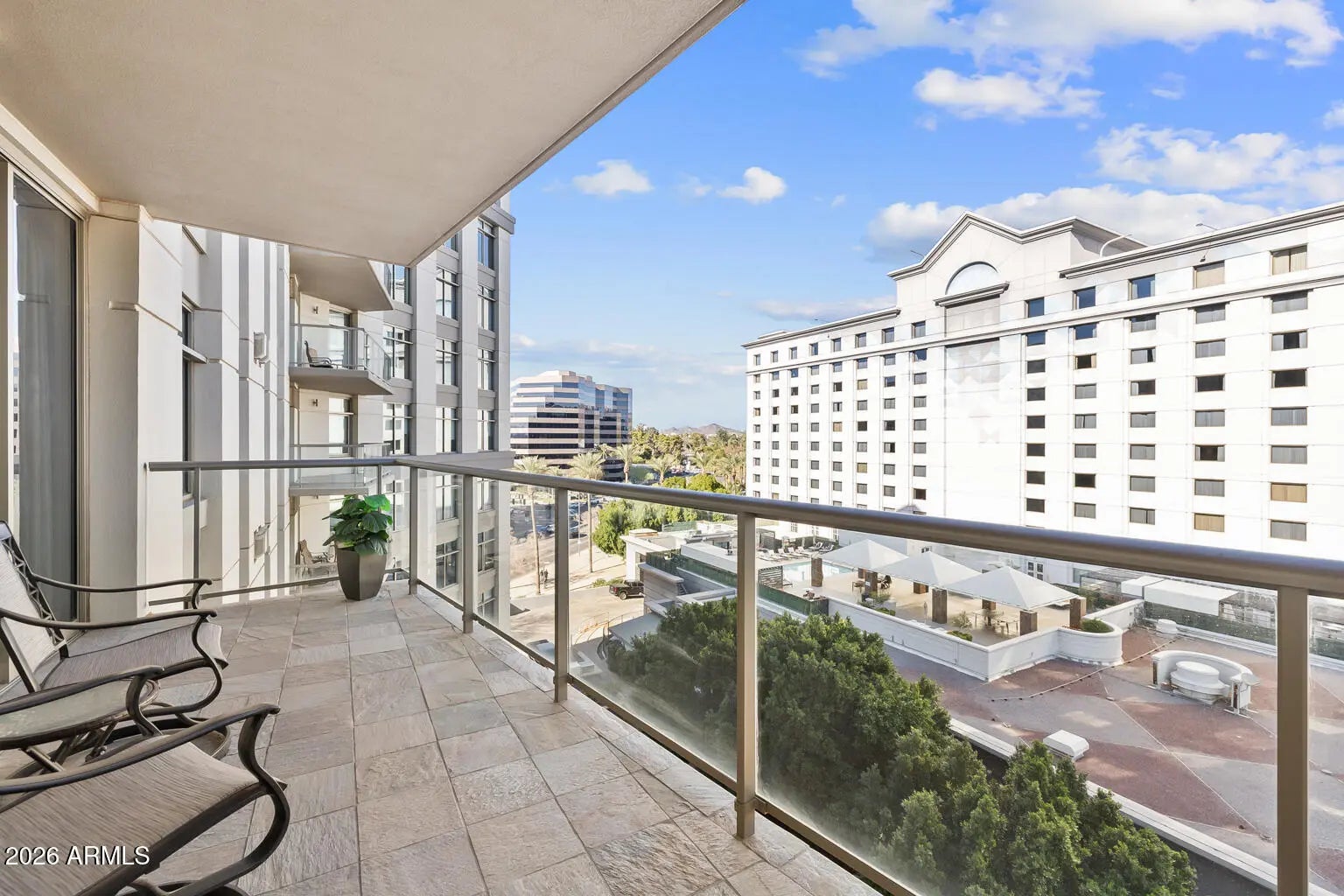 Stunning residence #704 offers well-designed and thoughtful updates to the original floor plan: two primary bedroom closets, updated bathrooms & kitchen, office/den remodeled into a 3rd bedroom with designer frosted glass double doors. The great room offers a gas fireplace and a formal dining area with a wine refrigerator and shelving. Enjoy the award-winning services & amenities befitting the ultimate high-rise address, Esplanade Place, in the heart of the Biltmore/Esplanade area of Phoenix offering dine-in theater, find restaurants, shopping and entertainment venues! With valet parking, rooftop pool, full fitness enter, 24hr lobby desk and other desired services, your easy care high-rise living lifestyle awaits and welcomes you!