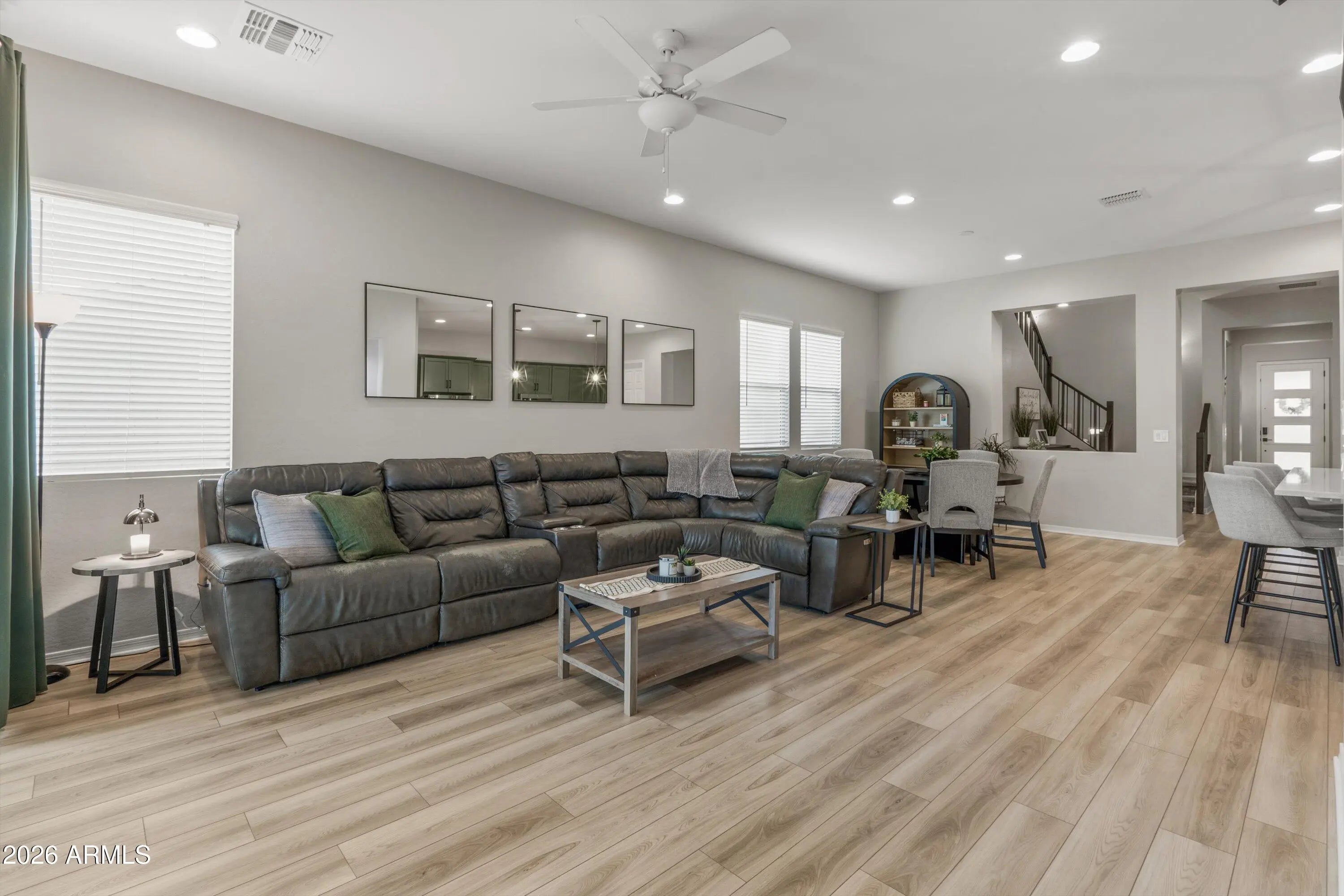 Amazing opportunity in Barney Farms! This beautifully upgraded Seagrass floor plan offers 5 bedrooms, 4 bathrooms, and a rare loft configuration, all within a thoughtfully designed layout that is just 1.5 years old. With one bedroom, one bathroom, and an expansive loft located upstairs, this floor plan provides flexible living options ideal for today's lifestyles. The main living areas feature upgraded flooring throughout all living and wet spaces, creating a cohesive and low-maintenance finish. The open-concept kitchen is the heart of the home and showcases quartz countertops, upgraded cabinetry, stainless steel appliances, and a large island with seating. The kitchen flows seamlessly into the spacious family room, filled with natural light and views of the backyard. A private guest wing on the main level includes a bedroom and full bathroom, offering an ideal setup for multi-generational living, extended stays, or a quiet home office. Sliding doors open to an extended covered paver patio and low-maintenance turf backyard, creating an inviting outdoor space for relaxing or hosting guests. The home is situated on a premium, oversized lot directly across from a park. Upstairs, the oversized loft offers incredible versatility and is ideal for a media room, game space, home gym, or additional living area. With a bedroom and full bathroom also located upstairs, this level functions well as a private retreat for guests or teens. Located within a resort-style community, residents enjoy access to deep-water lakes for kayaking and catch-and-release fishing, an aquatic center with splash pad plus leisure, lap, and sports pools, and a clubhouse for social events and private rentals. Additional amenities include pickleball, basketball, sand volleyball, cornhole, bocce ball, themed playgrounds, miles of walking paths, covered ramadas with BBQs, and more.