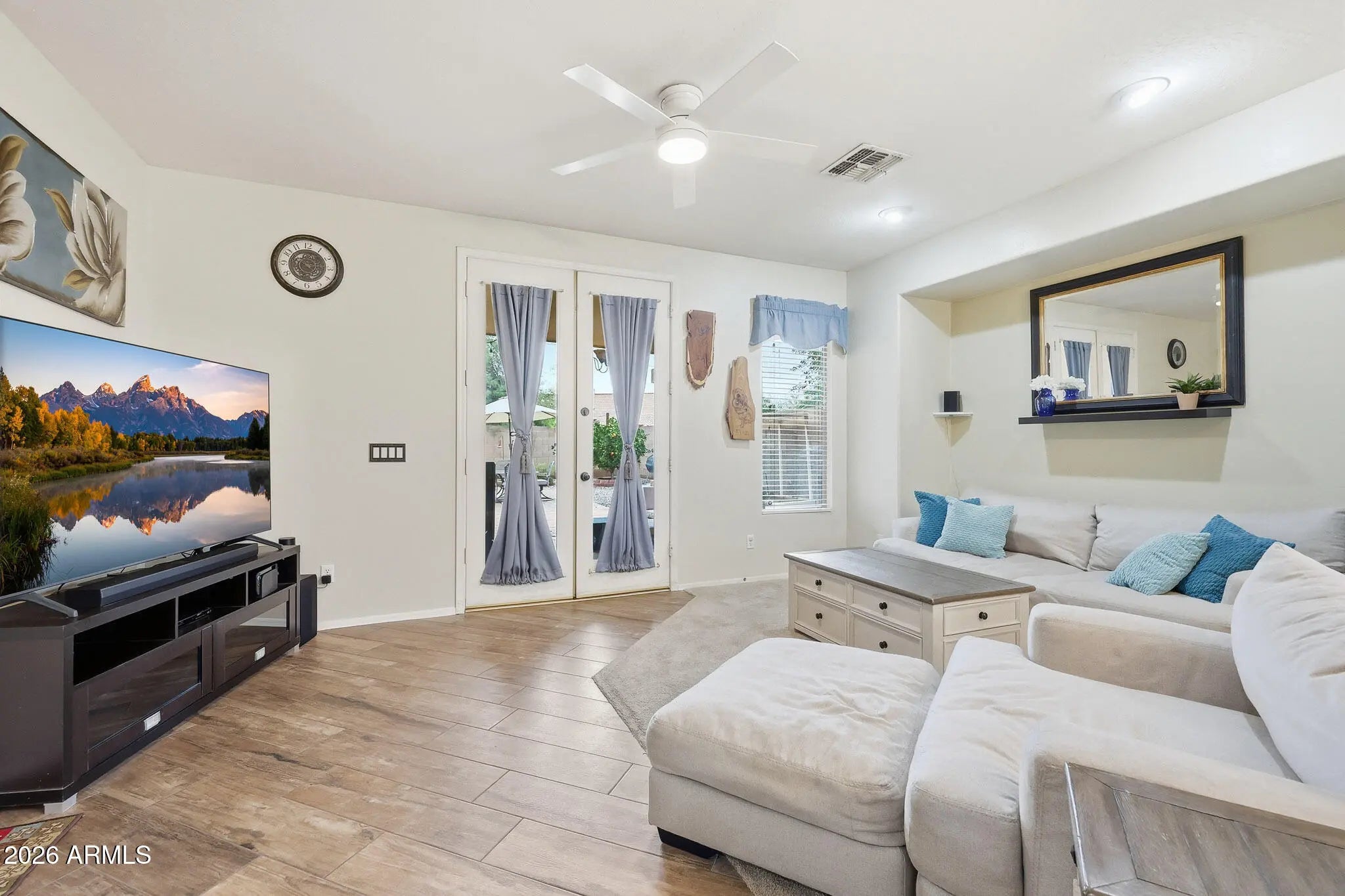 Welcome home to a beautifully maintained residence that offers comfort, functionality, and thoughtful upgrades throughout. This inviting 3-bedroom, 2-bathroom home has been lovingly cared for inside and out, creating a space that feels move-in ready and easy to enjoy from day one. Step inside to a freshly painted interior and a layout designed for both everyday living and entertaining. With both a living room and a great room, there's plenty of space to relax, gather, and create the lifestyle that fits you best. Partial flooring updates completed last year add a refreshed touch, while natural light flows effortlessly through the home, enhancing its warm and welcoming feel. The kitchen is a standout, featuring an island, generous counter space, and a reverse osmosis system for clean, filtered water right at your sink. Whether you're prepping meals, hosting friends, or enjoying quiet mornings at home, this space is designed to be both practical and inviting. The primary bedroom serves as a true retreat, complete with a cozy sitting area - perfect for reading, unwinding, or creating a private workspace. The en-suite bathroom offers a spa-like experience with a double vanity, separate tub and shower, and ample room to get ready with ease. French doors open from the home to the backyard, creating a seamless indoor-outdoor connection and inviting you to enjoy Arizona living at its finest. Out back, you'll find a thoughtfully designed yard with low-maintenance turf and stylish pavers, ideal for entertaining, relaxing, or soaking up the sunshine. A vegetable garden adds a charming and functional touch, perfect for those who enjoy fresh homegrown produce. The home's unique features include a convenient doggy door, making it just as welcoming for your four-legged friends. Additional peace of mind comes with a newer A/C unit (2024) helping keep the home comfortable year-round in the Arizona Sun. This property offers more than just great features, it offers a lifestyle of comfort, ease, and thoughtful design. With its well-maintained condition, meaningful upgrades, flexible living spaces, and inviting outdoor areas, this home is ready to welcome its next chapter. Come experience the charm, and care that make this property so special!