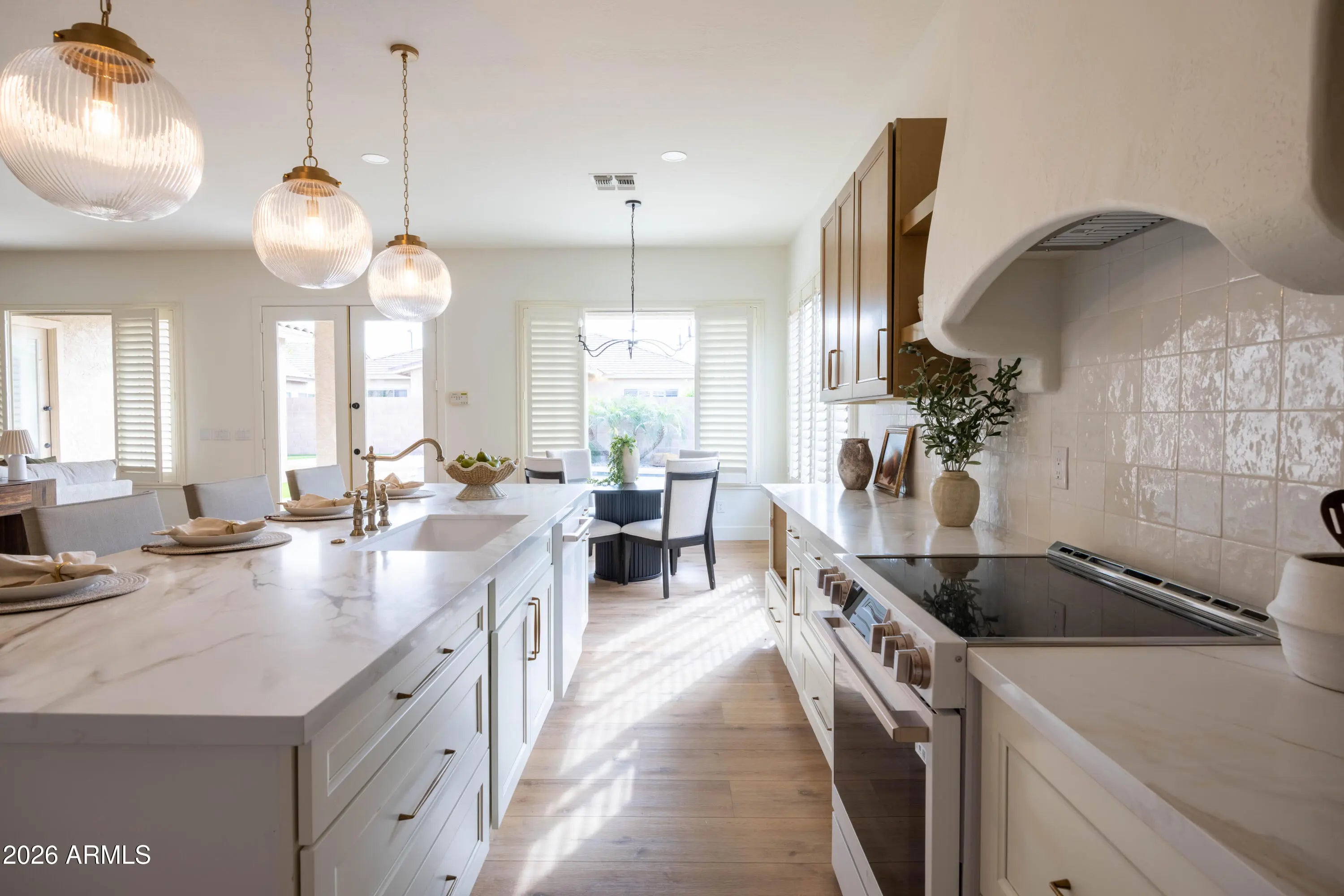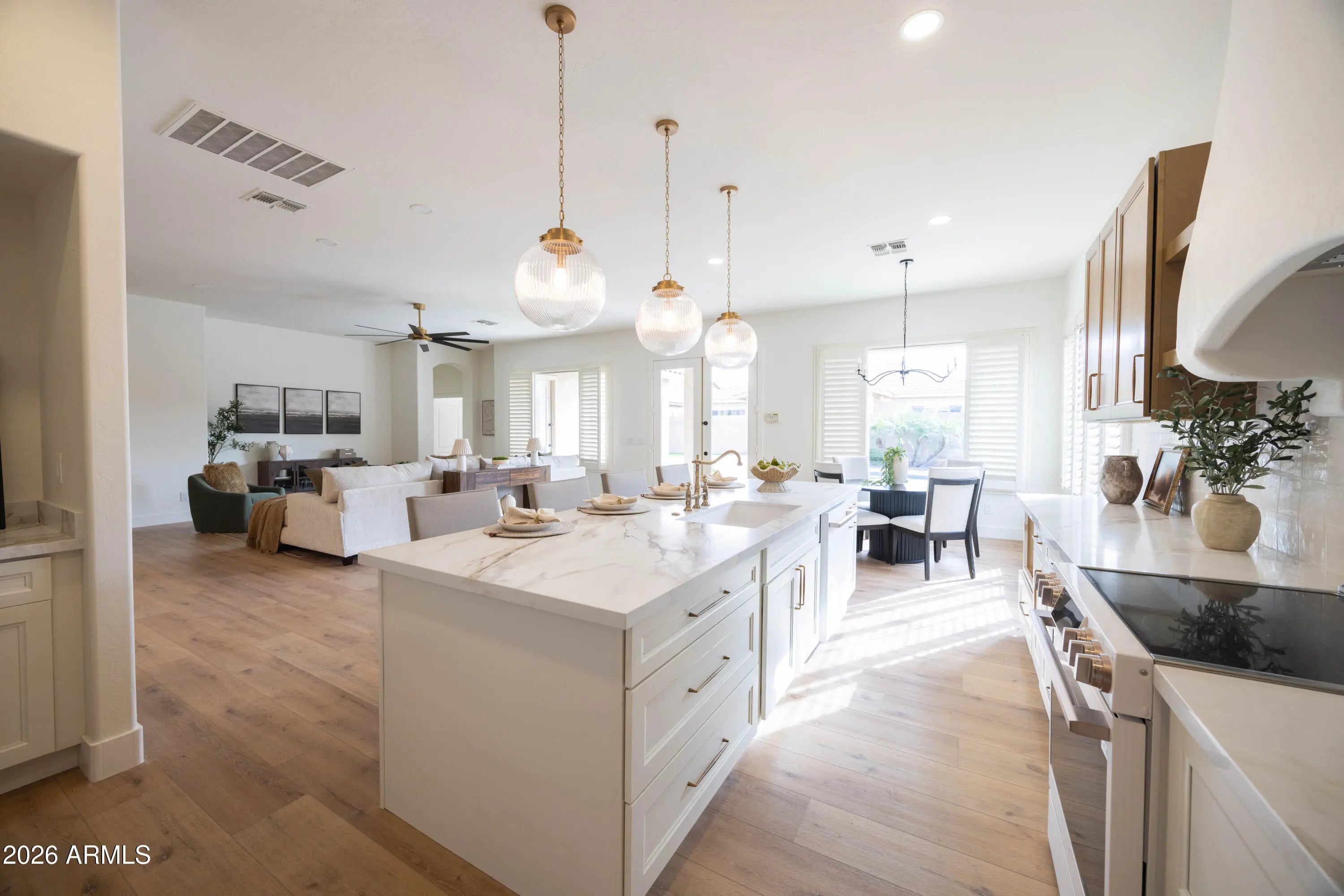 Welcome to 3519 E Bridgeport Pkwy, a thoughtfully remodeled home where elevated design meets everyday comfort in a prime location. The home features new cabinetry w/ brass hardware, designer tile backsplash, statement lighting, & new wood-look flooring throughout. Abundant windows fill the space w/ natural light, creating bright, airy interiors. The kitchen balances style & function w/ custom cabinetry, curated finishes, and designer lighting. The primary suite offers a spacious, private retreat! The bathroom includes a huge shower w/ floor-to-ceiling tile & waterfall shower head, walk-in closet, private toilet room, & an attached den w/ an additional walk-in closet that can serve as a home office, gym, or flexible space. Bathrooms continue the design-forward aesthetic, with the guest bathroom featuring a custom vanity paired w/ checkered tile & exposed brass plumbing. The en-suite guest bedroom offers added privacy w/ its own connected bath, complete w/ designer pendant lighting & a beautifully tiled shower. Meant for Arizona living, the backyard has an extended covered patio, brand new turf w/ putting green, & a pool w/ spa. Can't forget about the 3 car garage! The location truly stands out: just a short walk to Chaparral Elementary School & minutes from SanTan Village, the 202, Epicenter, & Cooley Station, offering easy access to dining, shopping, entertainment, & commuter routes.