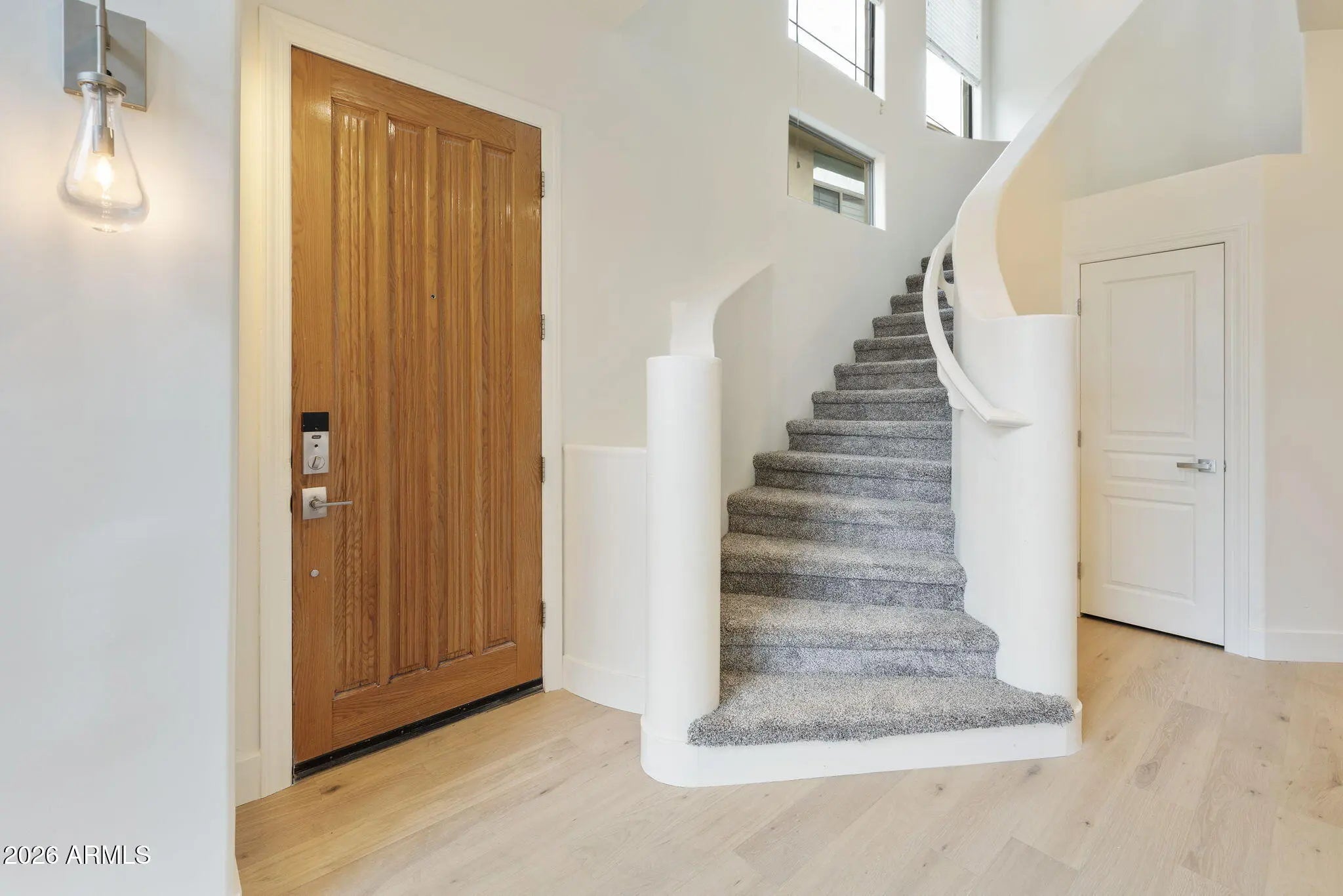 Welcome to the gated community of Astragal, where style meets comfort in this beautifully upgraded 2-bed/2 bath townhouse. Floor-to-ceiling windows flood the open-concept living space with natural light, highlighting a cozy gas fireplace and seamless flow to a private patio. The kitchen has been fully refreshed with elegant quartz countertops, a modern backsplash, and a sleek stainless steel appliance package. Fresh interior paint and brand new real wood flooring throughout the living spaces give the home a crisp, contemporary feel. Upstairs, a spacious loft with balcony access offers the ideal flex space for a home office/gym/media lounge. The primary suite is a true retreat, featuring a coffee bar for quiet mornings and a spa-inspired ensuite with a brand new oversized walk-in shower with dual shower heads, brand new plumbing and electrical shower fixtures. The guest bath also features new fixtures for a cohesive, elevated finish. Additional highlights include an oversized one car garage with built-in storage plus assigned covered parking. Conveniently located near the 101 for easy access Sky Harbor Airport and premier dining & shopping.
