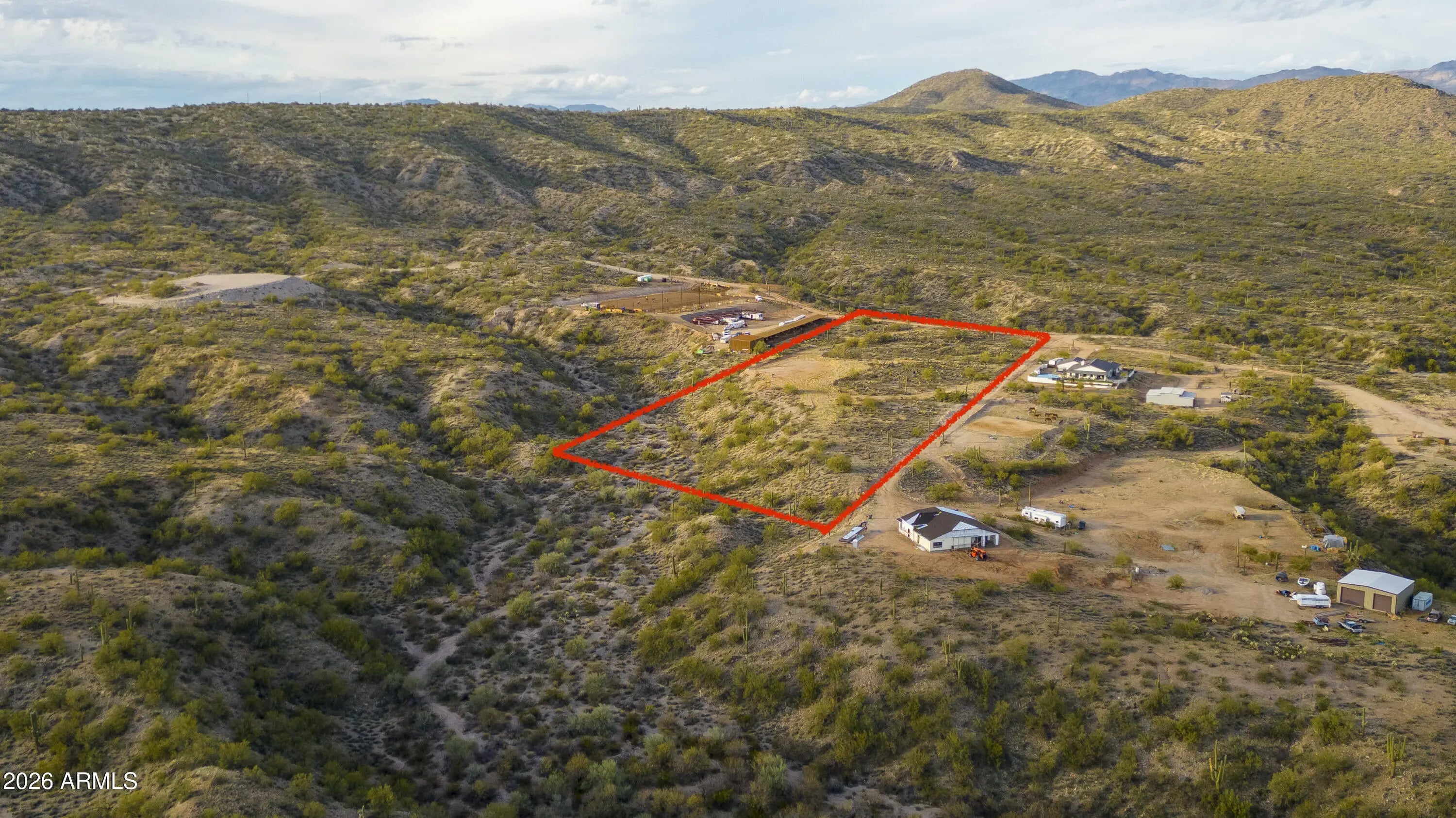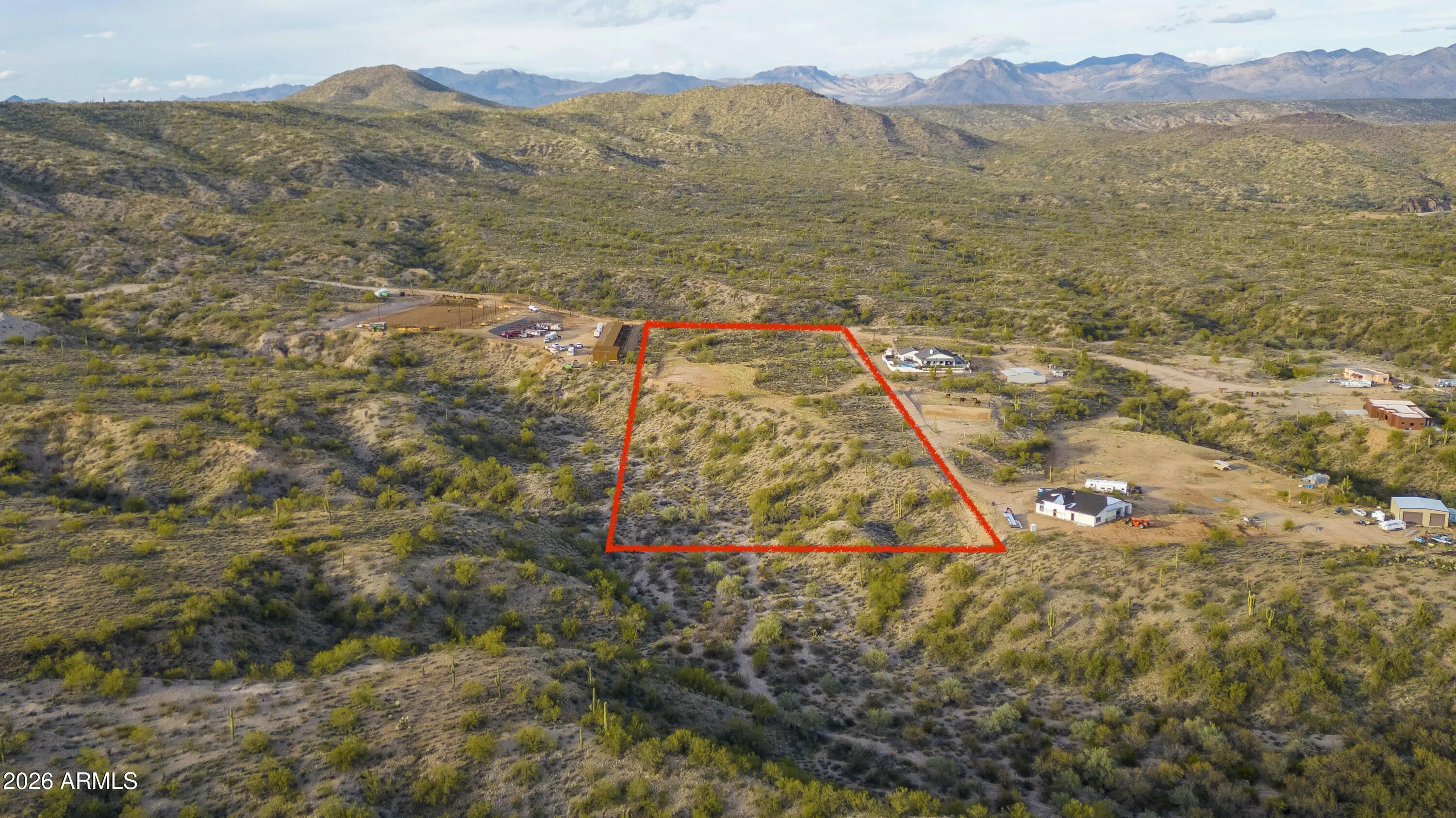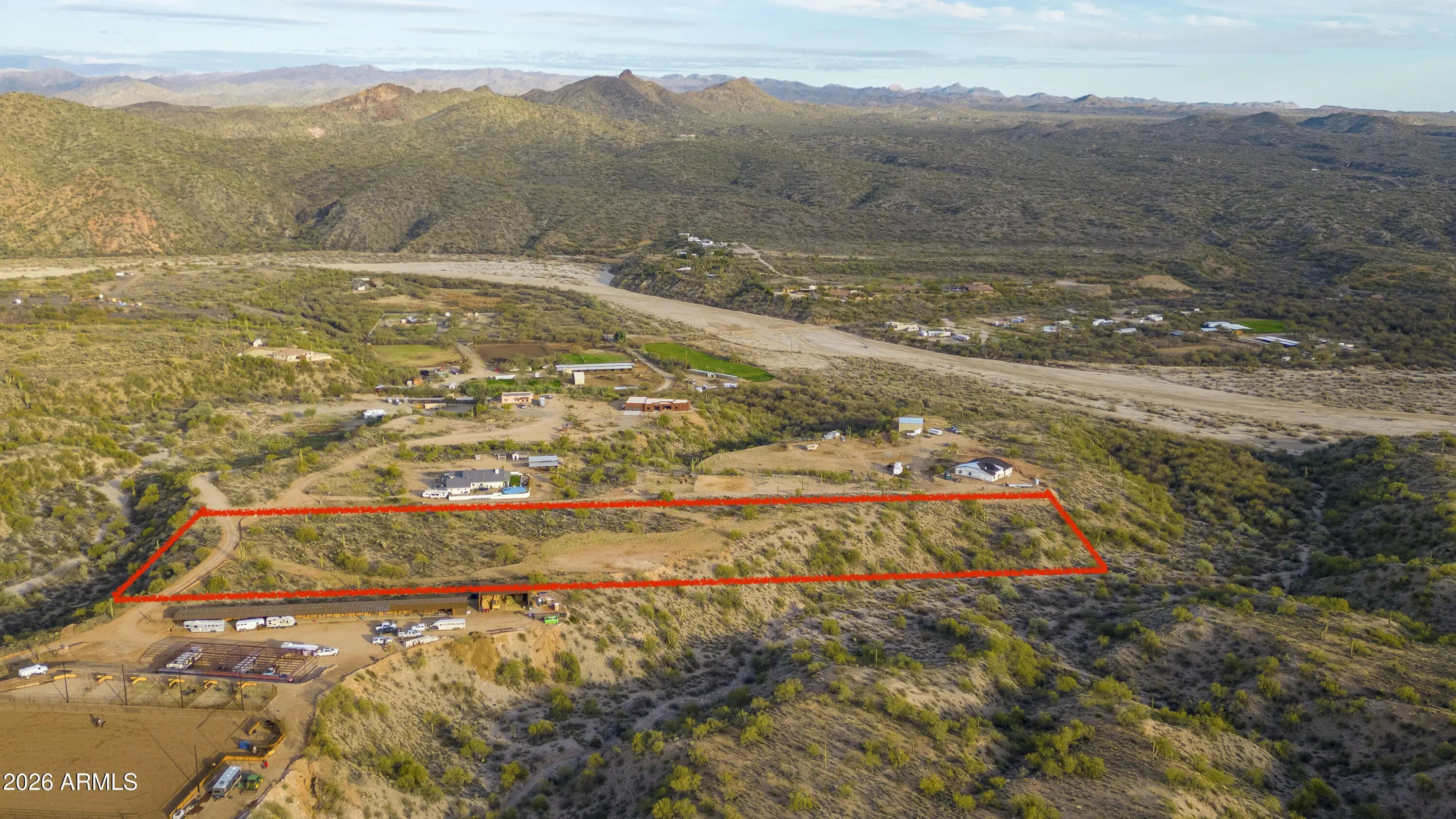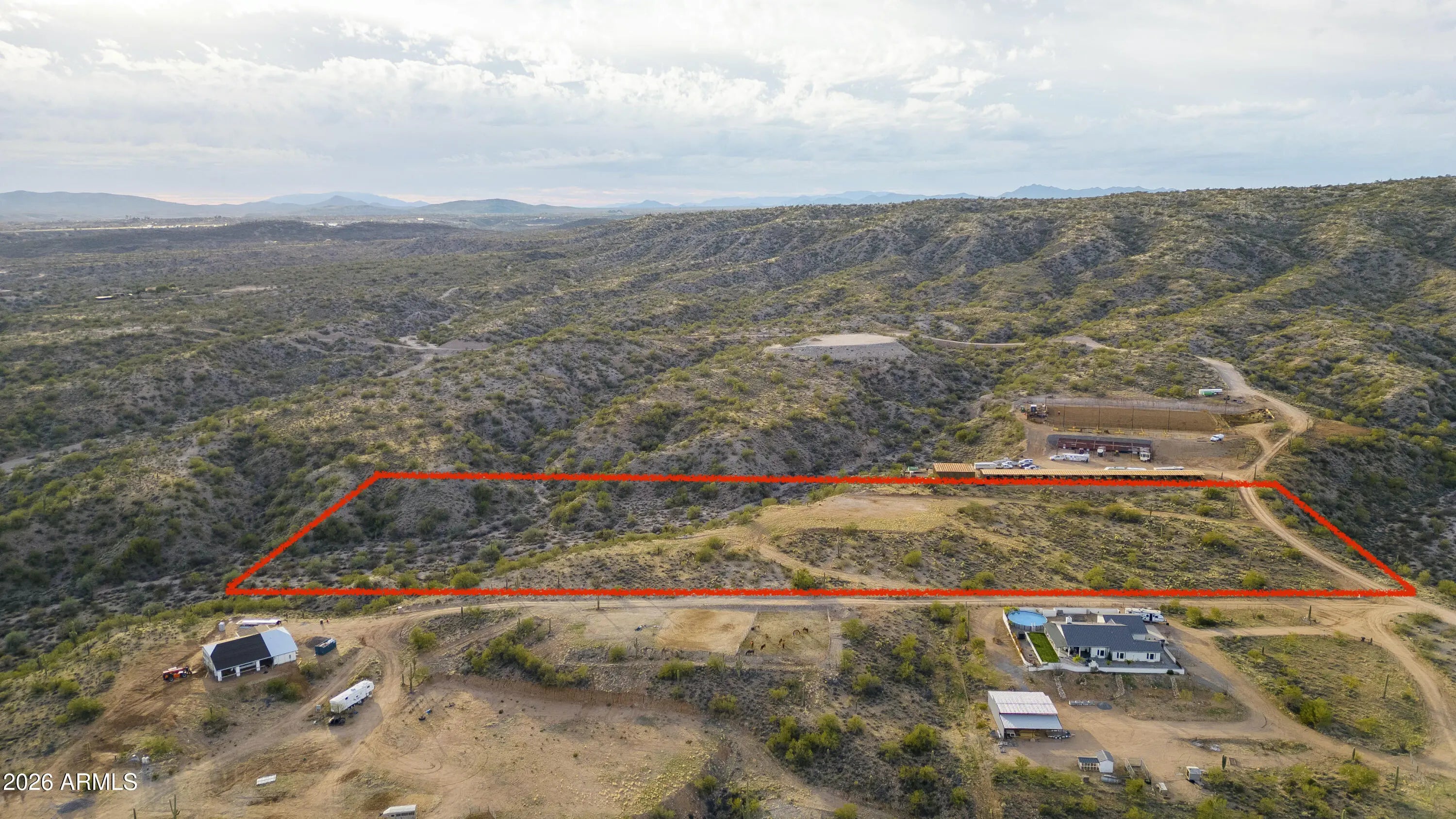 10 Amazing Acres with capped well and building pad. Road cut to house pad. Property is in gated community with 360 views of Mountain, Hassayampa River, and Town of Wickenburg! Abuts state land on 2 sides! Property has flat, rolling hills on top for home and horse facilities. Come Build you dream home now! Property has mature Saguaros, cholla, and other desert vegetation.
