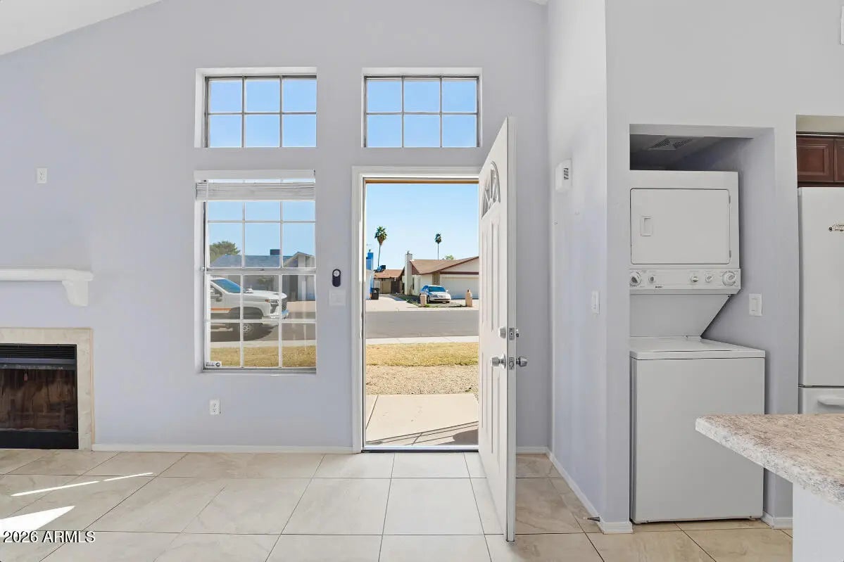 Stacked Washer/Dryer, Dryer Included, Washer Included, Refrigerator, Built-in Microwave, Dishwasher, Disposal, Electric Range