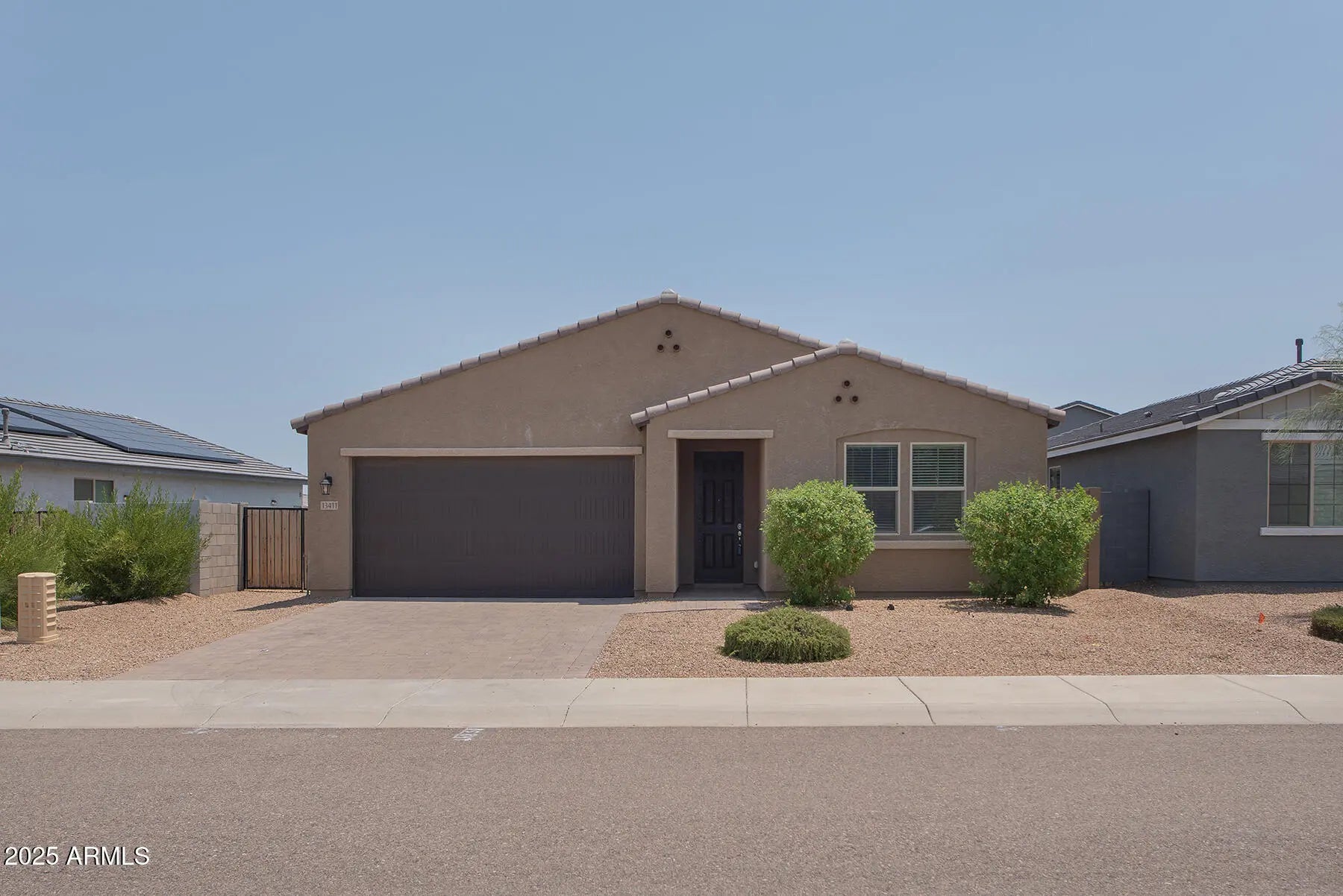 Beautiful 3 bedroom with 2.5 Bath is ready to move in. Features: 4-panel sliding door from great room to covered patio, double gate, gas stub, pavers at covered entry, driveway and walkway. Walk-in shower at master bathroom, with cultured marble surrounds. Stainless steel appliances at kitchen including a 5-cycle dishwasher, freestanding gas range, and microwave/hood combo. 42'' uppers at kitchen, with upgraded crown molding, a boxed-in refrigerator, and deco doors wrapping the island. Shaker-style cabinets painted white and shale. Silestone countertops and mosaic tile backsplash at kitchen. 8' interior doors, 4-1/4'' baseboards, and square corner bead. 6x36 faux wood look tile throughout, with 8x8 deco tile at master bathroom. Upgraded carpet and pad at bedrooms.