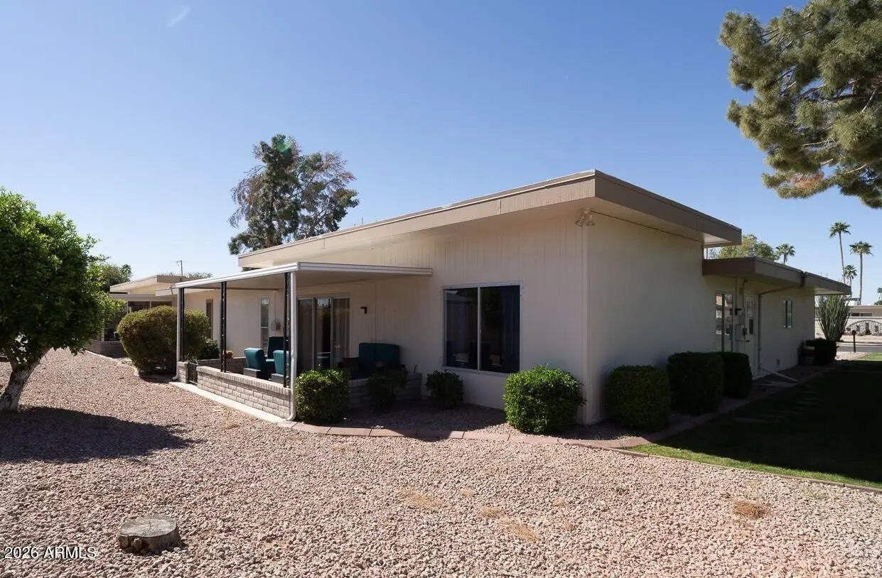 Available for immediate occupancy, this charming 2-bedroom, 2-bath Gemini home is perfectly situated in the heart of Sun City, Arizona. Inside, you'll find tile flooring and freshly cleaned carpeting throughout, abundant natural light, and a thoughtfully designed layout that feels both comfortable and functional. The spacious kitchen features energy-efficient appliances and opens to a formal dining area or versatile flex space accented by stylish barn doors—ideal for a home office, den, or hobby room. Both bedrooms are generously sized with ample closet space, including walk-in closets. Updated bathroom vanities add a fresh, modern touch. Outdoor living is just as inviting, with a covered rear patio and a large front patioperfect for entertaining, relaxing, or enjoying Arizona's beautiful sunsets. Residents enjoy access to Sun City's renowned amenities, including golf courses, recreation centers, and an active lifestyle community. Additional fee required. Don't miss this opportunity to enjoy easy, low-maintenance living in one of Sun City's most desirable locations!