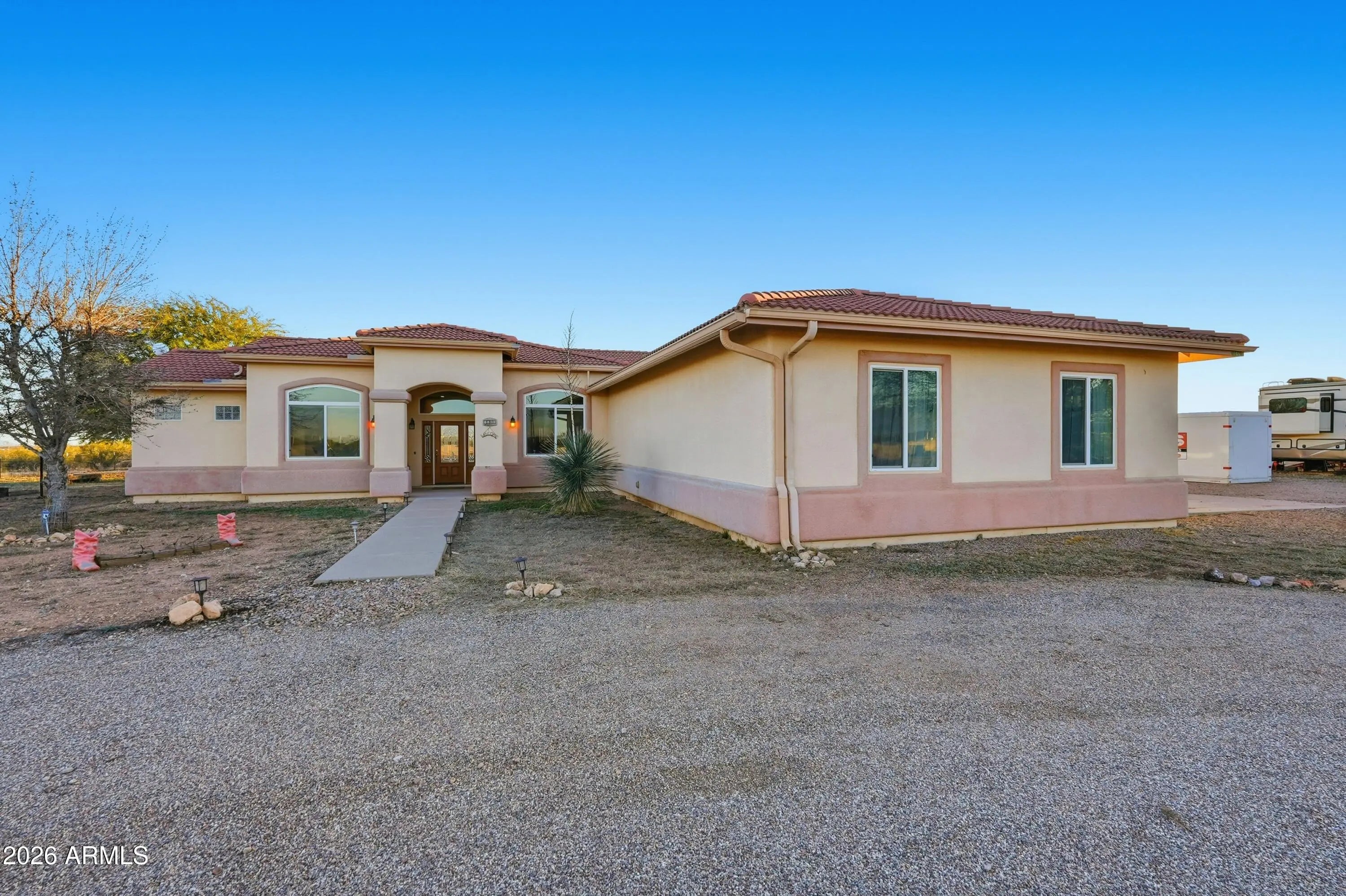 Have you seen this GEM yet? This one is going to go FAST. 4 ACRES • MOUNTAIN VIEWS • NO HOA • ROOM FOR ALL THE TOYS If you've been craving space, sky, and that true country-homestead feeling, this is it. Set on 4 usable acres with mountain views in every direction, this lovingly cared-for property delivers the kind of lifestyle people move to Arizona for. Mornings start with wide-open horizons. Evenings end with sunsets that go on forever. Inside the 2,300 sq ft home, western character meets comfort. Warm architectural touches like a beehive fireplace, wood posts and beams, and inviting living spaces create that grounded, ''home has a story'' feeling the moment you walk in. The layout offers 3 bedrooms, 3 baths, plus a den — flex space for an office, hobby room, or guest room. Step outside and you've got your own mini-homestead: * Orchard with fruit & nut trees *Room to breathe, garden, roam, or simply enjoy the quiet *NO HOA - bring your plans, your projects, your lifestyle Need storage? You're covered. *Oversized 3-car garage with room for ATVs, workshop space, and serious storage *Covered parking with electricity for RV hookup *Storage, storage, storage the kind country properties should have, including 3 large sheds Perfectly positioned for anyone wanting distance from the city without being remote; with easy access to Fort Huachuca, Sierra Vista, Benson, and Sonoita. 45 minutes from Vail. This isn't just a house. It's the kind of place that's been truly loved and well maintained, and you can feel it. Country living at its finest - space, views, freedom, and sunsets for days.