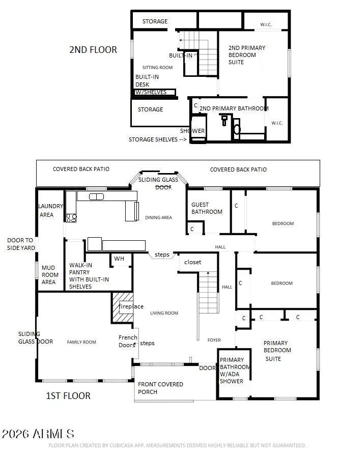 This beautiful 2-story home welcomes you in & has everything you need with a nice location that is close to everything in town, sits back off road, but plenty of backyard on this .78 of an acre, fenced yard, with an outer storage building. Then enter through a nice covered patio that has fantastic views of Mount Graham into a nice living room with wood burning fireplace & a family room through the French doors that also has an exit to the outside. Large kitchen with plenty of storage, a walk-in pantry & large mud/laundry room. Nice size bedrooms, with 2 primary suites, one upstairs with sitting room & one downstairs with ADA bathroom. Property also has a second septic & full hook up for either an RV or build a guest house. This is a must-see home to appreciate all that it has to offer.
