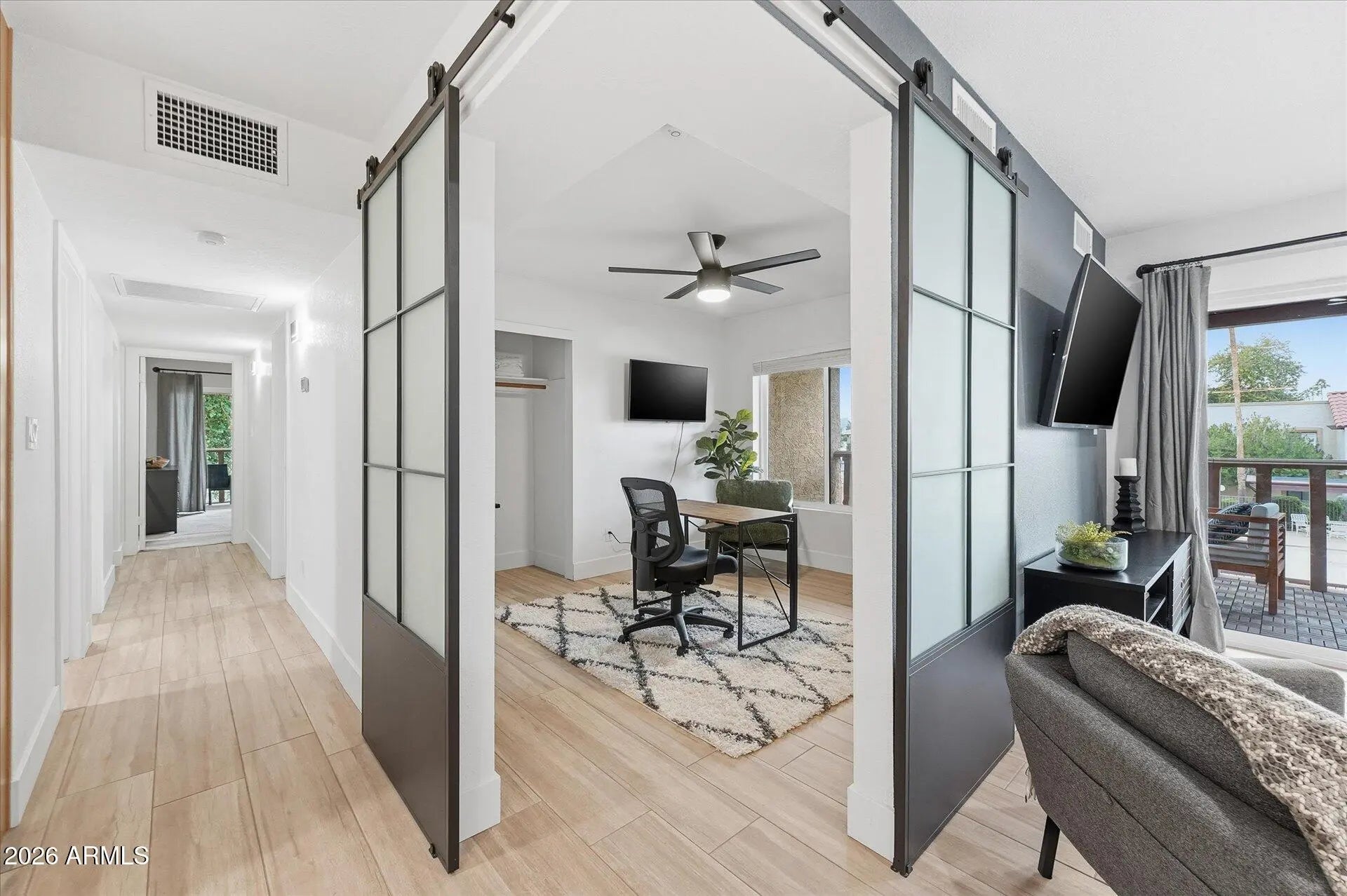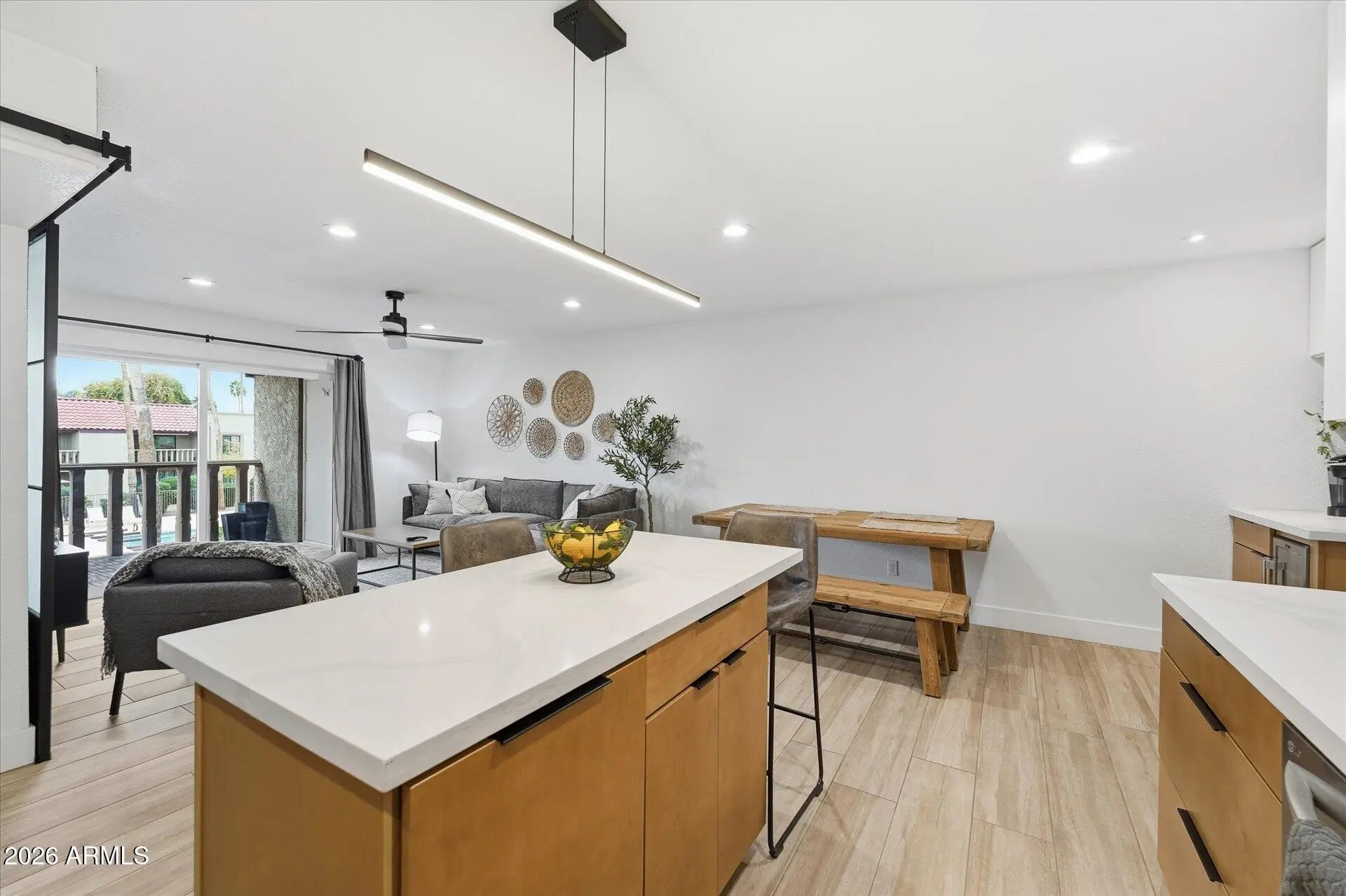 Furnished 2BR/2BA condo in McCormick Ranch with a dedicated office, private patios, heated pools, spa, and tennis & pickleball courts. Walk to shops and restaurants, or take a short drive to Scottsdale Quarter and Kierland Commons. Ideal for families or groups seeking a relaxing getaway with mountain views, modern amenities, and easy access to trails, golf, and downtown Scottsdale. The Space: This bright and airy condo has two comfortable bedrooms and a full office space, perfect for remote work or catching up on emails. The open-plan living and dining area flows onto private patios, ideal for morning coffee or evening relaxation. The kitchen is fully equipped with modern appliances, making it easy to prepare meals at home.