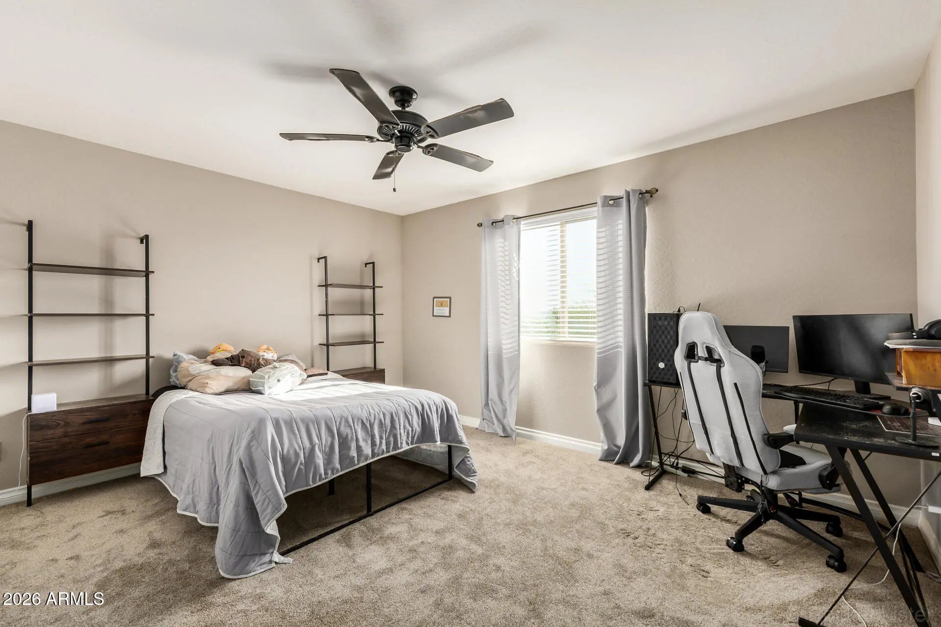 ✨ Light, Spacious Home with Greenbelt & Mountain Views in Prime Queen Creek Location! Welcome to this beautifully located four-bedroom, 2.5-bath home offering space, style, and serenity. The primary suite is conveniently located on the main level and features a spa-inspired bath with an oversized walk-in shower, dual shower heads, and a luxurious rain head. Step inside to soaring ceilings and an abundance of windows that flood the home with natural light. The open-concept kitchen showcases granite countertops, stainless steel appliances, ample storage, and an eat-in dining area--perfect for everyday living and entertaining. Upstairs, a huge loft provides flexible space ideal for a playroom, home office, gym, or media room. The home backs to a peaceful greenbelt with no neighbors behind and beautiful mountain views, creating a private and tranquil backyard retreat complete with a fire pit and easy-maintenance planter boxes. Additional highlights include: Brand new carpet 2026 Freshly painted exterior Lots of garage storage space Walking distance to Queen Creek High School Just minutes to grocery stores, shopping, dinning. This home has all the right bones and simply needs your personal touch to make it your own. A rare find combining location, views, and livable space don't miss it!