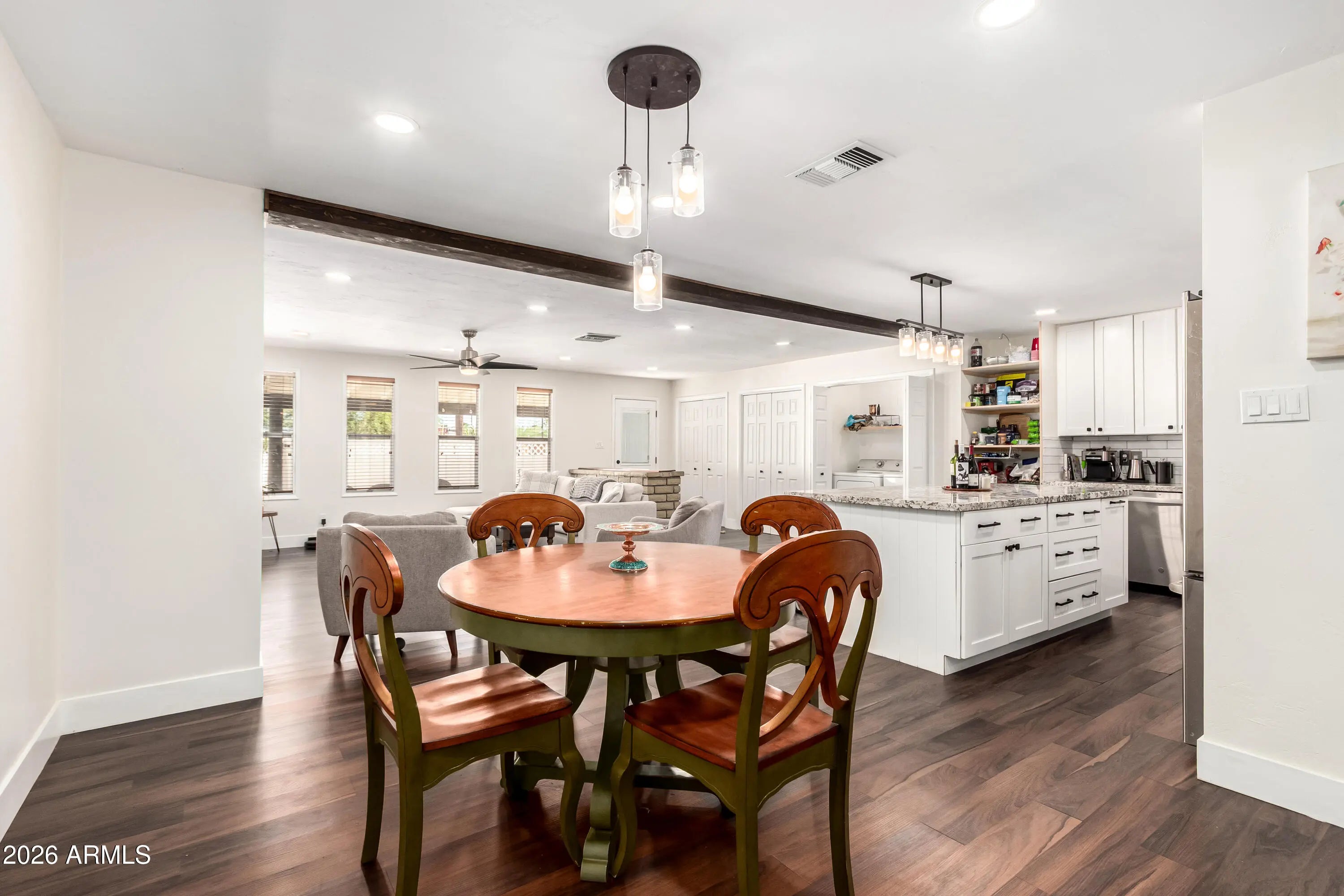 Step into Tempe living at its finest! Fully updated in 2024 with new kitchen appliances, renovated bathrooms, refreshed flooring, interior/exterior paint & more! Just minutes from ASU, Mill Ave, Tempe Town Lake & the new Clark Park, this 3-bed/2-bath home blends modern style with classic charm. The open floor plan features wood-look floors, recessed lighting & a neutral palette filled with natural light. The chef's kitchen shines with SS appliances, granite counters, subway tile backsplash, shaker cabinets, pantry & island w/breakfast bar. Main suite offers a private bath. Relax or entertain in the backyard with an extended covered patio. Added perks: carport w/storage shed, RV gate & parking, plus a separate workshop. Location + lifestyle = the perfect Tempe home.