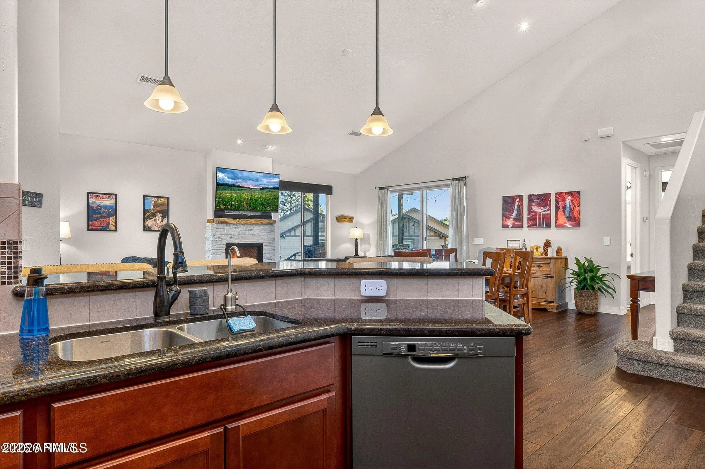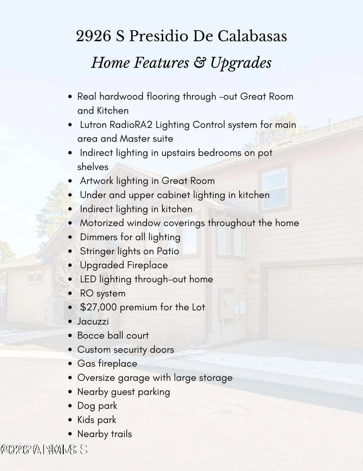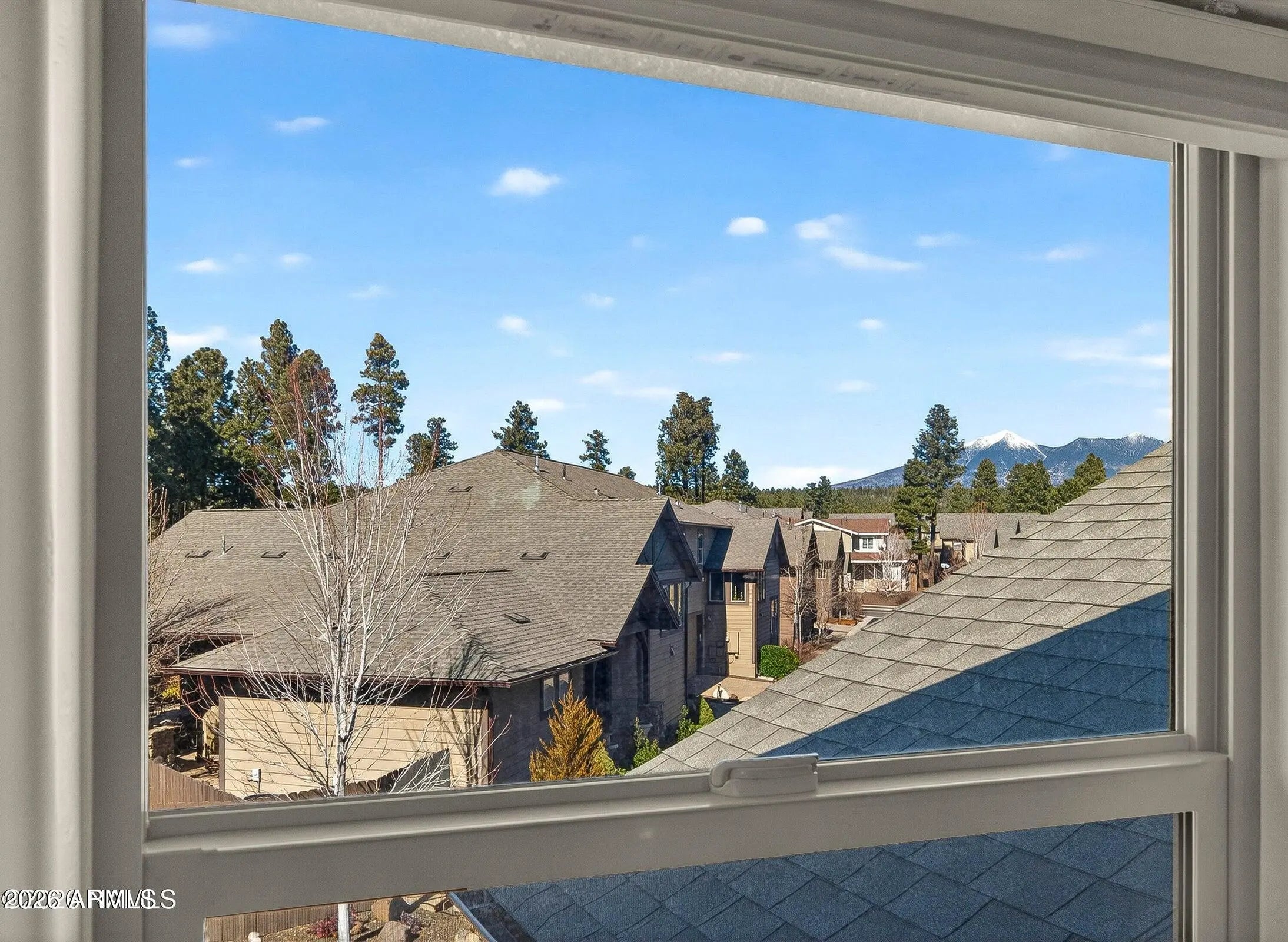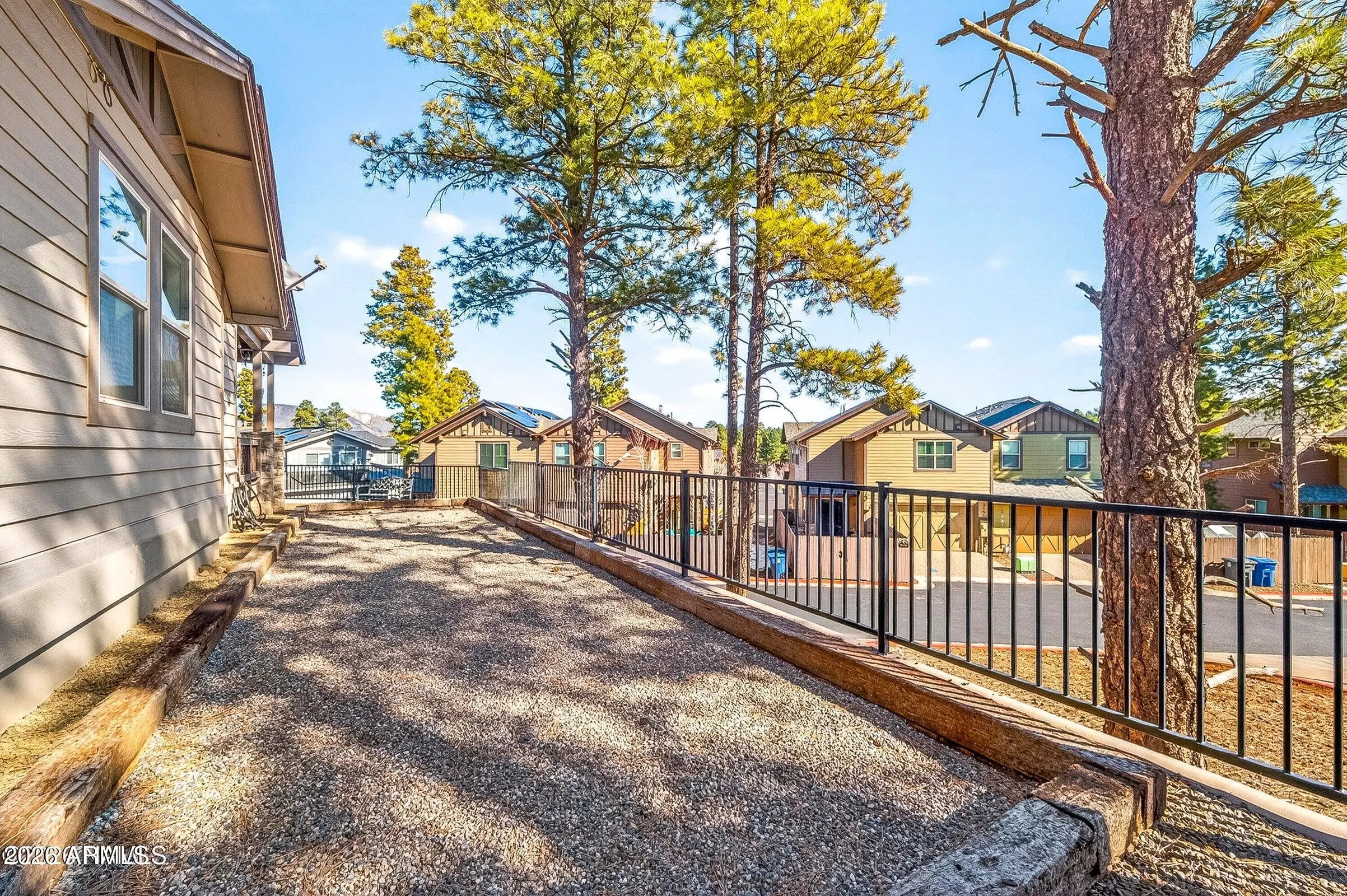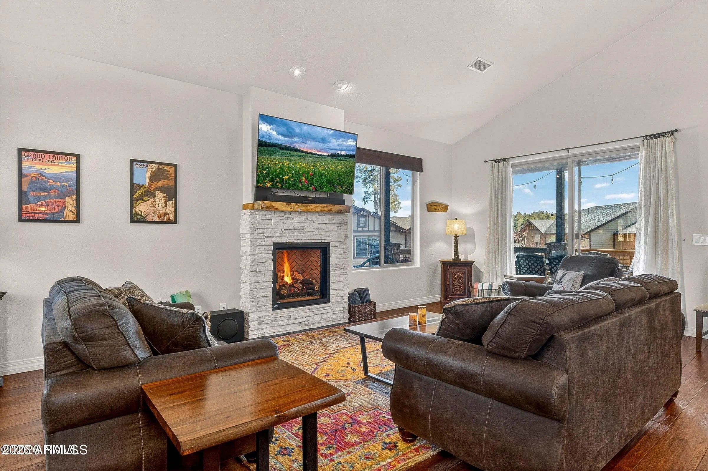 Located on a peaceful European looking street, tucked away within Presido on a premium, oversize lot you will find this thoughtfully crafted townhome with views of the San Francisco Peaks. With attention to detail in mind, you will find 8ft doors, a remodeled gas fireplace, custom screen doors, sun tubes, LED lighting, real hardwood floors, electric shades, light dimmers, under and upper cabinet lighting. Primary bedroom on the main floor featuring dual sinks in the bathroom and a tiled walk-in shower. The kitchen offers abundant lighting, upgraded appliances and a stylish tiled backsplash. The 1 bedroom 1 bath casita offers endless possibilities. Outside is perfect for entertaining offering a fire pit area, Jacuzzi, and a bocce ball court with complimentary string lights. Covered al fresco dining area with trex deck is perfect for summer nights. The location is perfect with a park just a stones throw away, offering basketball courts, volleyball courts, bark park, and playground. 10-minute drive to Northern Arizona University.
