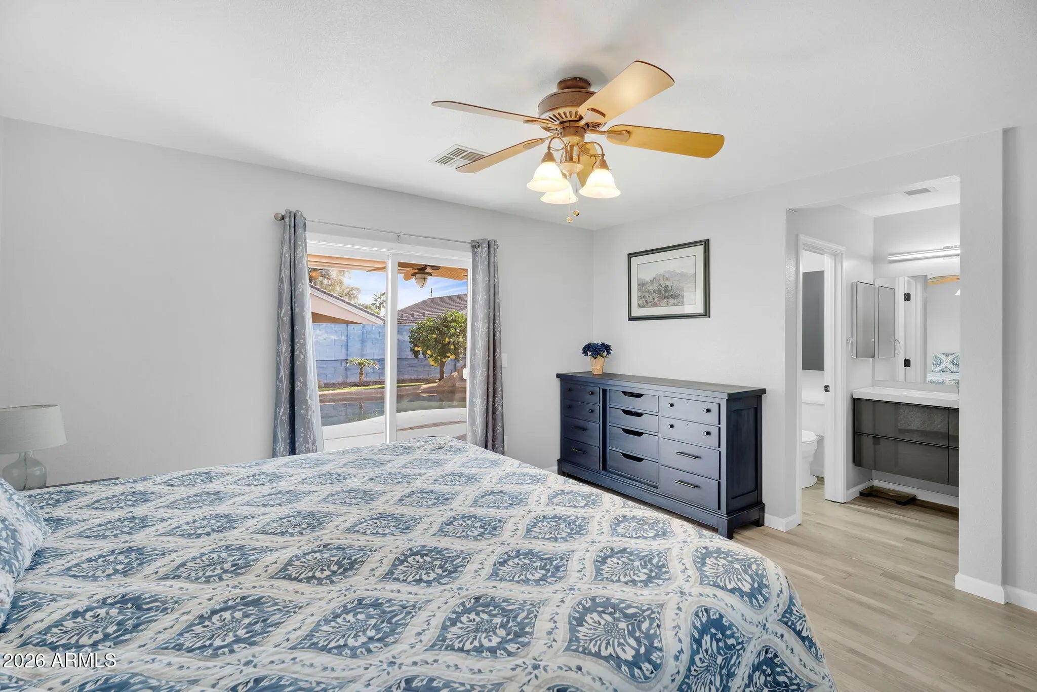 Cul-de-Sac lot, NO carpet, Private Pool! Close to Spring Training and State Farm Stadium! This beautifully maintained home has been lightly used as a second home and shows true pride of ownership throughout. Inside, you'll enjoy newer luxury vinyl plank flooring throughout, updated bathrooms with new vanities, toilets, and a remodeled primary bath featuring a new tub and tile surround. The kitchen offers clean painted cabinets with newer hardware, newer dishwasher and oven, reverse osmosis and cute breakfast room. The primary suite is spacious, has a glass sliding door to the backyard oasis, custom primary walk-in closet and ensuite bathroom with updated tub and tile surround. You win with the Tesla Solar system, newer windows, water softener, built-in garage cabinets and an oversized multi-vehicle driveway! Step outside to a private, low-maintenance backyard designed for Arizona living, complete with a private, sparking, salt-water pool with waterfall, HEAT YOUR POOL for FREE with secondary fully owned solar system, newer filter, rebuilt pool pump, and landscape irrigation system. Enjoy your covered patio, privacy roll-down sun screens, an aluminum pergola, and updated LED exterior porch lighting. Thoughtfully updated, energy-efficient, and lightly lived in, this home is move-in ready and built for easy living and entertaining. Tesla Solar Lease started 2015 and is 20 year lease (9 years left). Monthly due is around $140 at this time. See documents tab for APS invoices showing LOW electric bills.