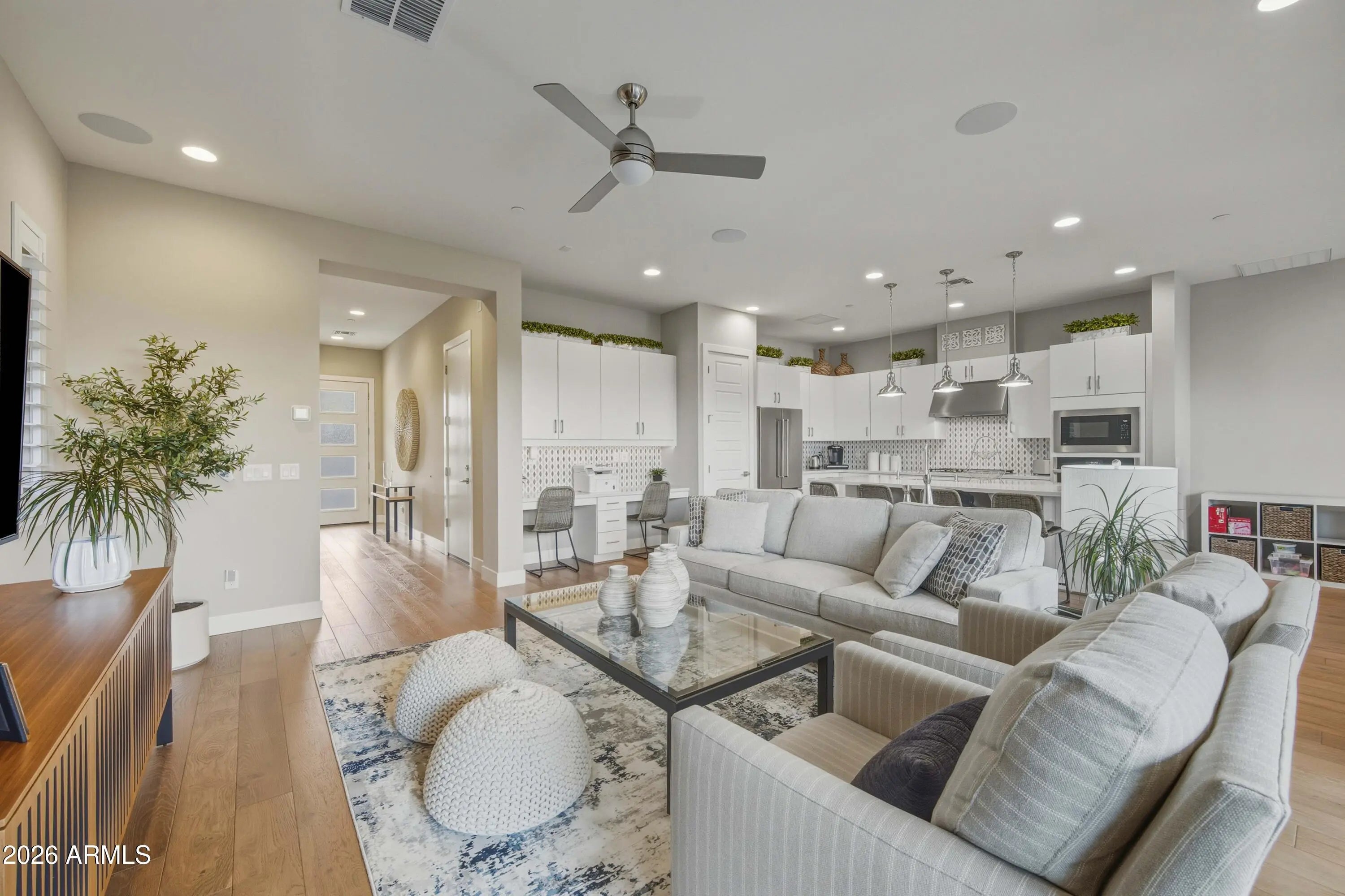Le Cannva has been lovingly filled with beautiful high quality fixtures and finishes that would normally be found in the most sophisticated properties in New York, San Francisco or Miami. Luxury and Style exude from Le Cannva. The fun begins with the entrance to the private, gated community of Skye On McDowell. A community of all Single Family Detached homes, these are not townhouses! The meticulously maintained Pool / Spa / Bbq Pavilion and Fitness Center beckons you to relax with friends and family. Le Cannva exudes sophistication, quality and a calm, cool contemporary feel. Loaded with the most sought after features such as Italian ceramic tile, beautiful wood plank and ultra luxury carpet in all the right places. You will love the openness of Le Cannva with 10 Ft. ceilings, high quality windows to flood the home with natural light. Modern styling throughout is clear from the moment you enter Le Cannva. If the heart of the home is the Kitchen, you're going to love this one. The improvements and enhancements go beyond a simple home; the upgrades here total more than $120,000, you'll be able to see it all. The primary bedroom at Le Cannva is large and boasts plenty of natural light flowing through. An oversized Balcony deck for a nice quiet cup of coffee or a glass of wine to unwind from your day. A walk-in closet that has more than enough room for all your storage needs along with upgraded cabinetry. But the finishes in the Primary Spa Suite are something to behold. Dual sinks, custom cabinets, extra storage large shower, wow, what can you say about this gorgeous oversized custom glass enclosed shower, exceptional high quality tile to the ceiling, and so much more, it is the height of luxury. As you walk through Le Cannva you'll experience 2 additional bedrooms, open loft area, this would make a perfect office or gym. A prime Scottsdale location, just minutes (even walking distance) to Old Town Scottsdale, ASU Sky Song, the Desert Botanical Garden, Giants Spring Training, the Phoenix Zoo, Papago Park, Tempe Town Lake, and a short 12 minute drive to Phoenix Sky Harbor Airport! Le Cannva is an easy to maintain lock and leave Executive Home. This spectacular Executives Home is just waiting for you! If the Kitchen is the heart of the home, then the heart beats loudly at Le Cannva. Custom cabinets with handles and pulls, all cabinets are soft closing, stainless steel appliances including a Smart Oven/Convection cooking and custom backsplash, gorgeous upgraded Quartz counters throughout Le Cannva as well as an oversized island with breakfast bar, R.O. system, whole home soft water system. The gourmet kitchen opens to a beautiful family room and dining area. Le Cannva has a beautiful outdoor sitting area, you'll love the fun and meticulously curated backyard including your zen water feature. While intimate, it is packed with beauty and as low maintenance as a yard can get, along with wonderful privacy. A Distinctive Home for those with Distinctive Tastes