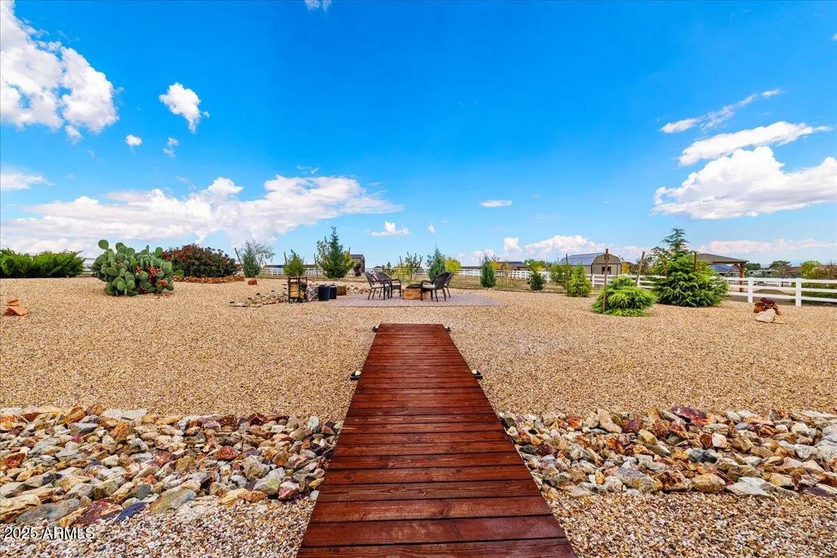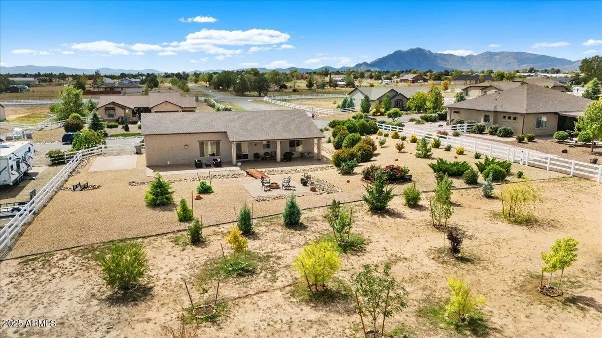 Located in the desirable Mollie Rae Subdivision, this beautifully maintained single-story home offers sweeping mountain views while remaining close to in-town conveniences. Situated on approximately one acre, the property features 2,172 sq. ft. of thoughtfully designed living space with 3 bedrooms, 2 bathrooms, and a 3-car garage. The open, modern floorplan is enhanced by 9' ceilings, luxury engineered wood flooring throughout, and a stunning gas fireplace. The chef's kitchen boasts granite countertops, stainless-steel appliances, an oversized island, upgraded cabinetry, and a large pantry — with all appliances included. A versatile flex space provides the option for a formal dining room or home office. The spacious primary suite offers a private retreat with a dual-sink vanity, walk-in shower, and separate soaking tub. Generously sized guest bedrooms and a well-appointed laundry room with utility sink add to the home's functionality. Additional features include a tankless water heater, seller-owned water softener, security system wiring, and completed front and backyard landscaping. Enjoy outdoor living on the full-length extended covered patio (15.5' deep) with BBQ stub and firepit, perfect for entertaining. The property also includes an RV pad, extended driveway, 12' side gate, and ample space to add an RV garage or workshop. A 12x20 Weather King shed provides extra storage. Meticulously maintained and truly move-in ready this home is waiting for you.