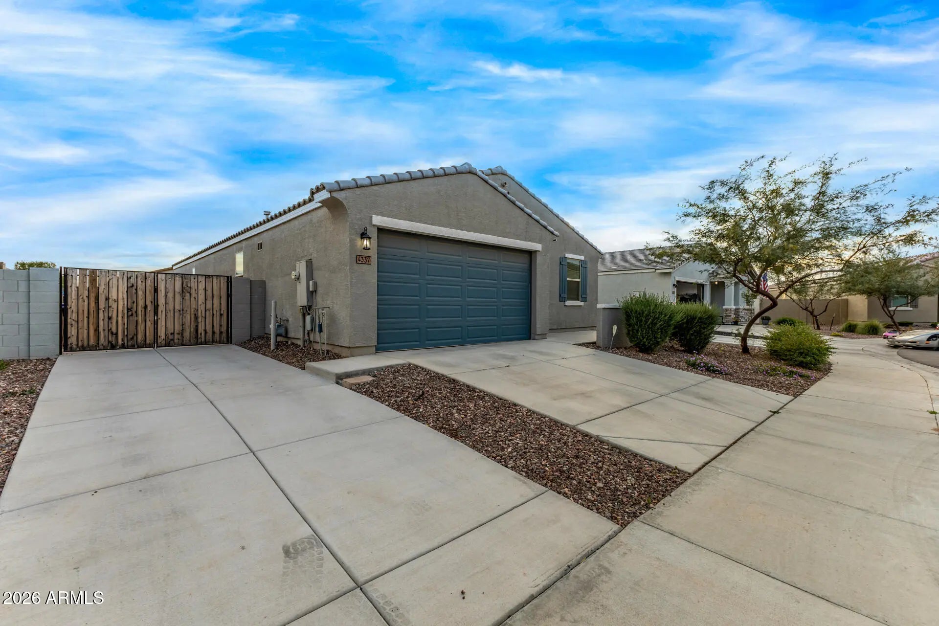 What a charming home with lovely curb appeal & easy-care landscaping! A 2-car garage, extended driveway, RV gate, & dedicated RV parking allow you bring all your vehicles. Inside, an open layout showcases tile flooring, recessed lighting, & a neutral paint. Wide-open kitchen showcases a breakfast bar island, stainless steel appliances, white cabinetry, a walk-in pantry, granite counters, & a stylish backsplash. The main bedroom offers a comfortable retreat with an ensuite bathroom that includes dual sinks & a walk-in closet. A functional laundry room has built-in cabinets & a sink for convenience! Adorable backyard offers a sparkling blue pool, Ramada, paver accents, & colorful desert plantings. You won't be disappointed!