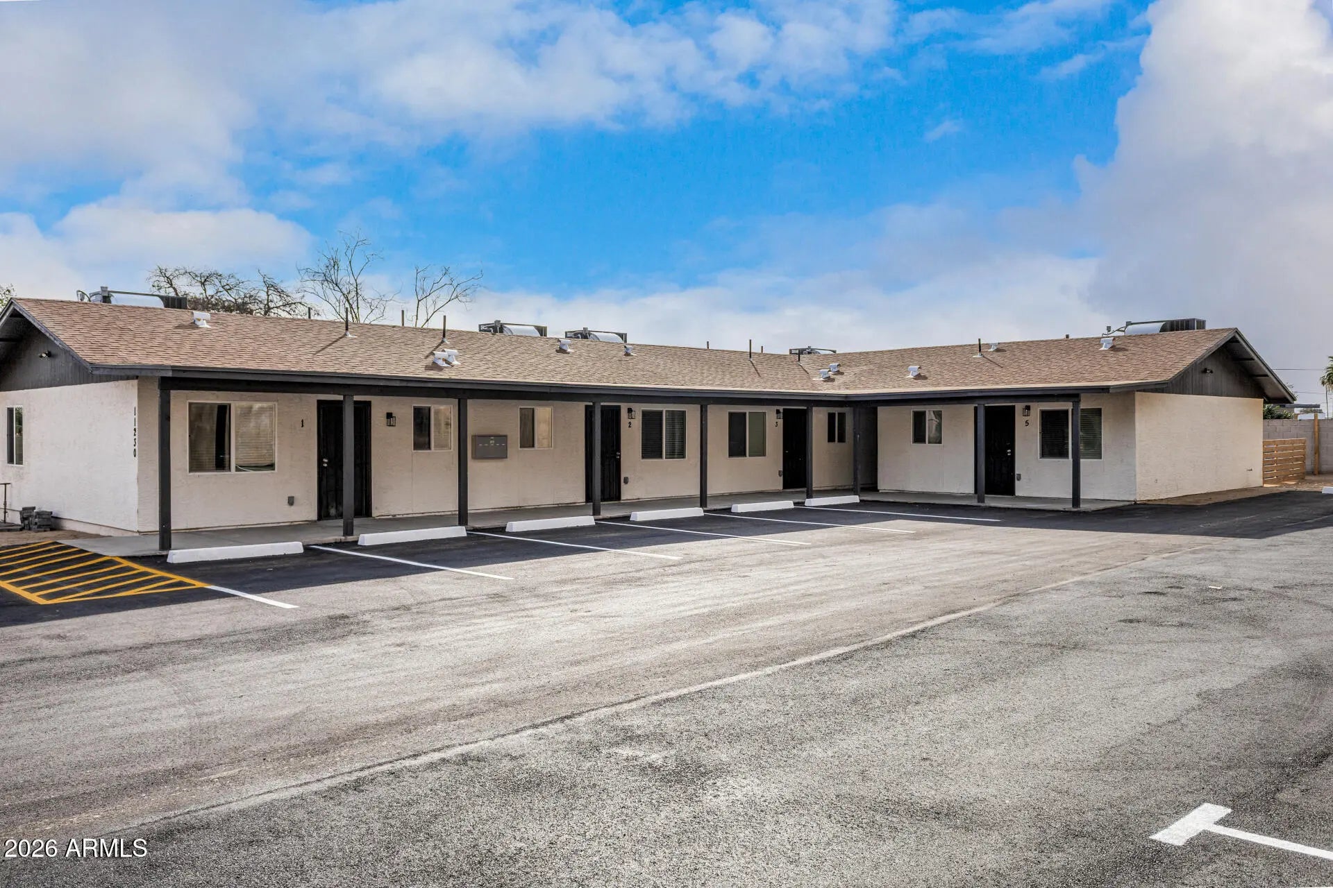BRAND NEW completely rebuilt 5 unit apartments. New wiring, plumbing, AC, appliances, New Tile flooring, New cabinets, with granite countertops, new window trimming, new windows. This is a turnkey property. Kitchen with Newly added 14 car parking lot. New fencing and backyard. This is a rare find. Dedicated laundry room, which can be used for added income. Done with the idea of lasting excellence and durability.
