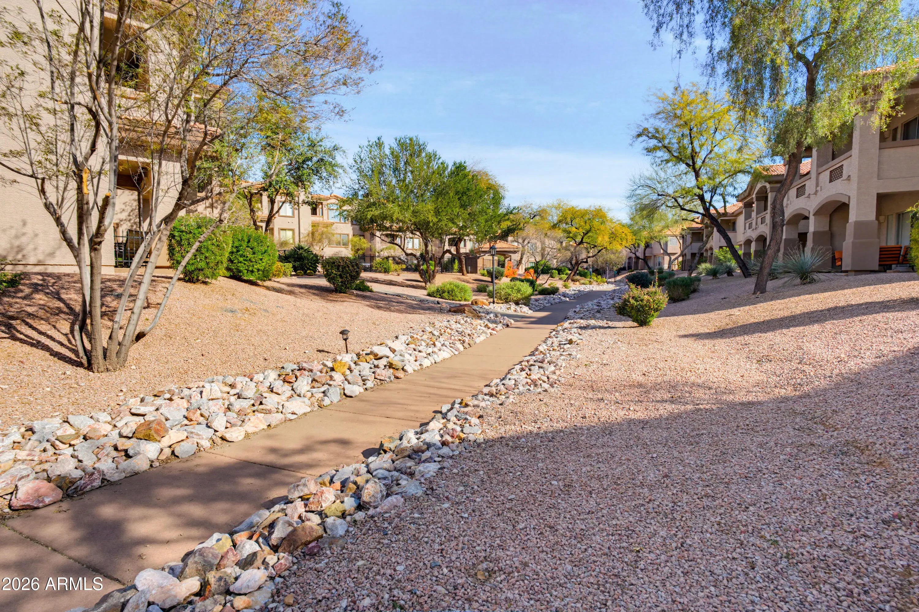 Beautifully upgraded unit located in a gated luxury condominium community. This stunning ground-floor residence with elevator access offers a desirable split floor plan featuring 2 bedrooms, 2 bathrooms, and 1,411 square feet of elegant living space. The home includes two assigned underground tandem parking spaces and is exceptionally quiet and peaceful. This meticulously maintained unit showcases exquisite design and modern upgrades throughout. New Flooring! The gourmet kitchen features extended cabinetry, quartz countertops, a designer backsplash, and brand-new upscale LG appliances—perfect for entertaining and everyday living. Additional highlights include a freshly painted interior, white dual-layer zebra shades, upgraded 5-inch baseboards, modern ceiling fans, and stylish chrome hardware. The spacious primary suite includes a walk-in closet and a completely remodeled spa-inspired bathroom with a tiled walk-in shower and a clawfoot soaking tub with bamboo caddy. The second bathroom also offers a beautifully tiled walk-in shower. All sinks, faucets, and fixtures are brand new. A new LG front-loading washer and dryer are included. Step outside to your private patio with a walk-in storage closet, ideal for added convenience. The unit has been owned by the original owner since construction, never rented, and has been exceptionally cared fortruly one of the finest units in the community. Community amenities include a fitness center, four sparkling pools and spas (including a heated pool and spa near the unit), BBQ areas, clubhouse, on-site management, and lighted walking paths. The community is dog-friendly and offers nearby parks and dog stations. Ideally located in the heart of Scottsdale, close to world-class shopping, dining, golf, spas, hiking, top-rated schools, grocery stores, Scottsdale Quarter, Kierland, and quick access to the Loop 101 freeway. A rare opportunity to enjoy luxury, comfort, and convenience in one exceptional home.