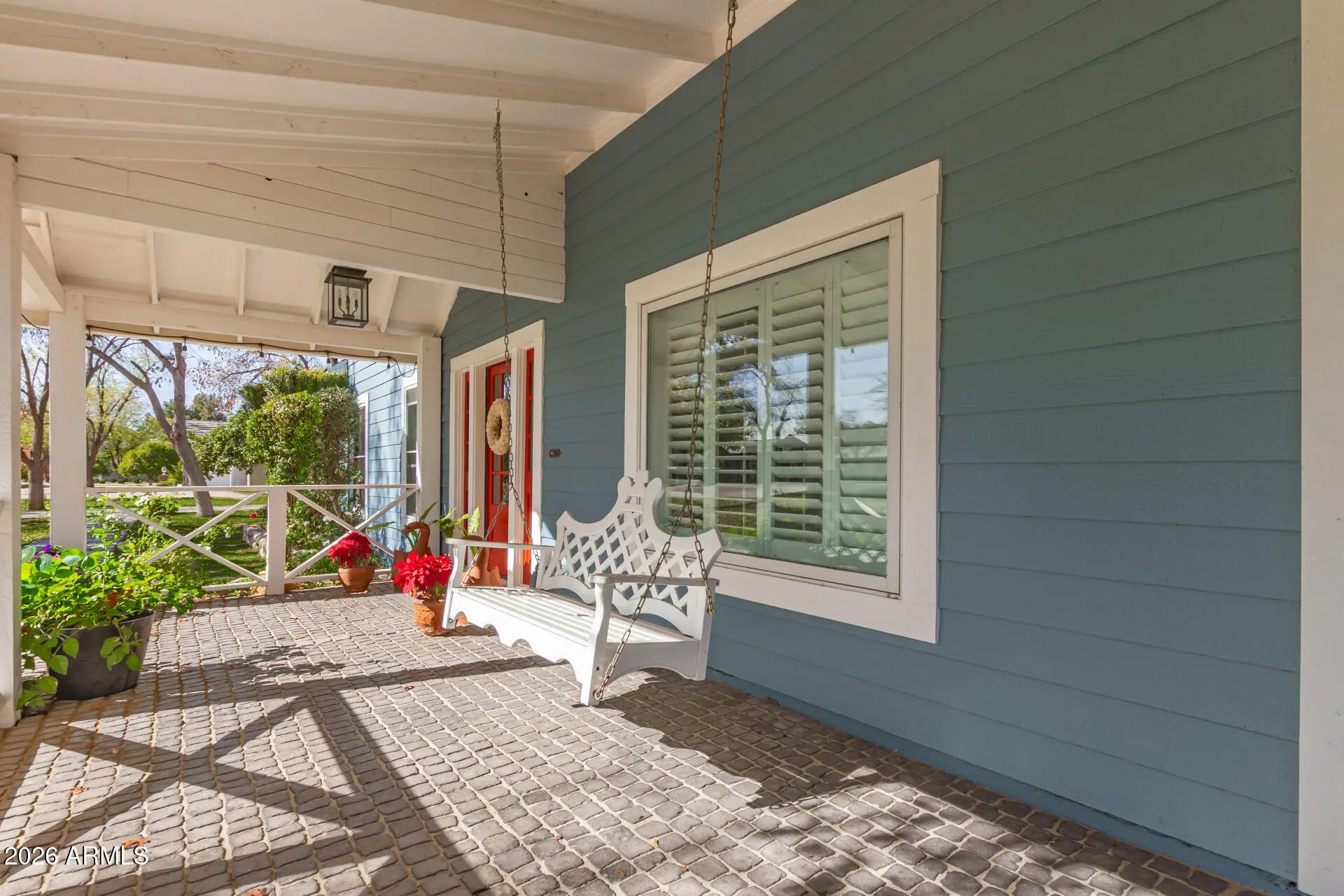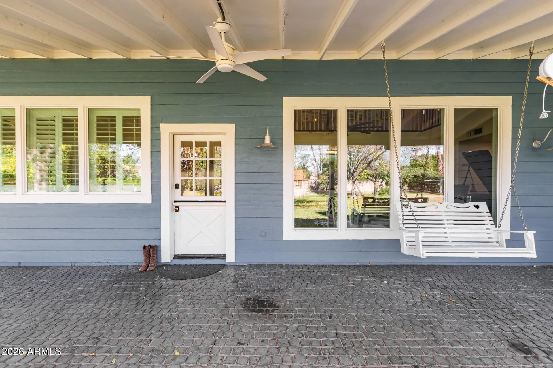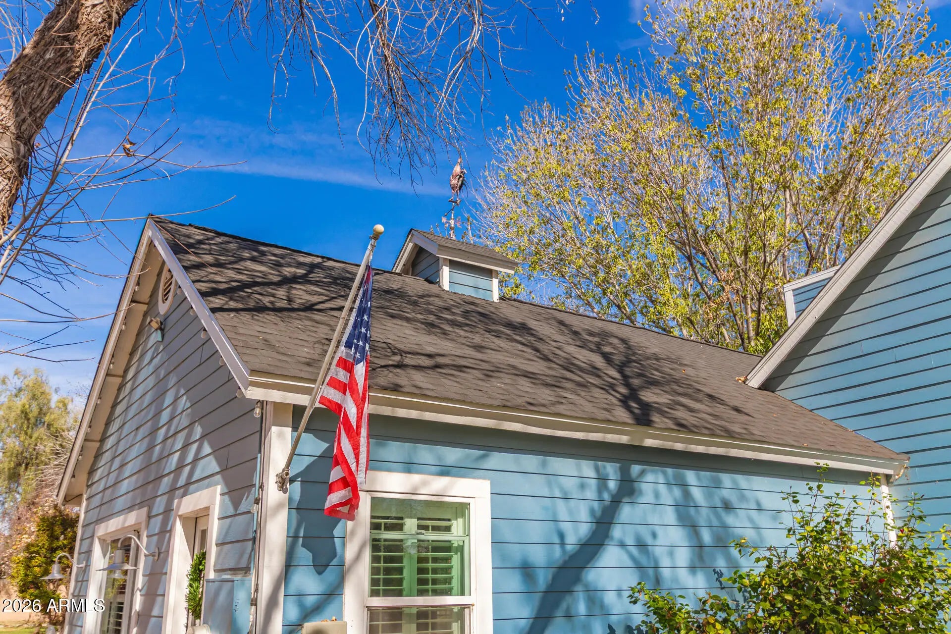 Welcome to one of the rarest opportunities to own a true piece of Old Gilbert - where front-porch mornings, open land, and a slower pace of life still exist. Set on a full acre with no HOA, this beautifully updated farmhouse offers what is becoming nearly impossible to find: space to breathe, room for animals and horses, and a home that feels timeless and intentional. A classic wraparound porch sets the tone - sunrise coffees, slow evenings, and front-row seats to a life well lived. Situated on over an acre with flood irrigation and more than 55 mature trees - oaks, ash, and fruit trees including orange, lemon, tangerine, grapefruit, peach, and plum. New roof & new windows Nov 2025, new exterior siding & rebuilt front porch 2023, and that darling red barn? It's a four-car garage with a 220V outlet. Covered horse stalls and a chicken coop make this true country living, tucked right into the city. This home is as functional as it is special, offering 4 bedrooms, 3 bathrooms, a large family room, and an upstairs loft. The open kitchen has been beautifully updated with white cabinetry, soapstone countertops, and a full-size refrigerator and freezer. Hardwood floors and wood beams bring in that true farmhouse feel, while the Dutch door leading to the back patio is one of those details you'll instantly fall in love with. The large, open laundry room offers porch access, and the primary suite is on the main floor - right where you want it. Thoughtfully updated while honoring its farmhouse soul, this home blends comfort and character with ease. The land offers room to grow, gather, and create - space for animals, gardens, memories, and generations. Here, community still matters. Sunsets still stop you in your tracks. Neighbors know each other, kids grow up outside, and the pace of life softens just enough to savor it. Homes like this don't come around often - an original Gilbert gem where families are raised, traditions are built, and life unfolds a little more slowly. This isn't just a home - it's the kind of place people wait years for and offers a lifestyle most only dream about.
