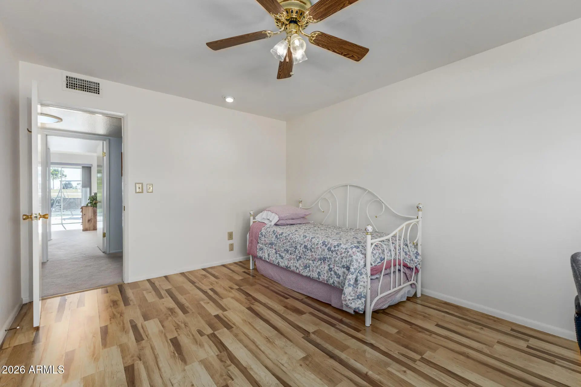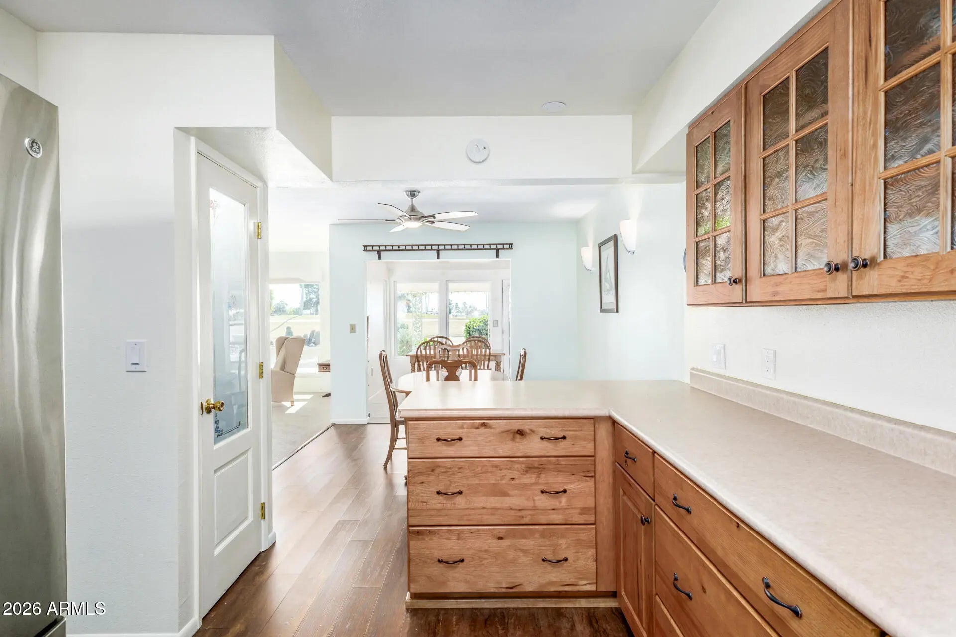 Remodeled Sun City Charmer on the golf course! Live in one of Arizona's premier active adult communities. This beautifully remodeled 2 bed/2 bath + den offers large picture windows with tons of natural light, an Arizona Room, an inside laundry room + craft room, 2-car garage parking, plus room to park your golf cart! The kitchen is well-appointed with stainless steel appliances, warm wood cabinetry, ample counter space, and a breakfast bar ideal for casual meals or morning coffee. An Arizona room offers the perfect place to savor your favorite beverage, read a magazine, or simply unwind. The main bedroom includes direct backyard access, a private bathroom, and a walk-in closet for added convenience. New A/C unit, and updated flooring in the kitchen and living areas. [MORE] Beyond the home, enjoy all that Sun City has to offer - including multiple golf courses, restaurants, recreation centers, clubs, and endless activities like pickleball, bocce, lawn bowling, swimming, fitness classes, and more. This home is close to both the Sun Dial and the Bell Center Rec Centers. Whether you're looking to invest, purchase a nice lock-and-leave winter home, or secure a future full-time residence, this move-in ready home offers comfort, convenience, and community. Put this one on your list today!