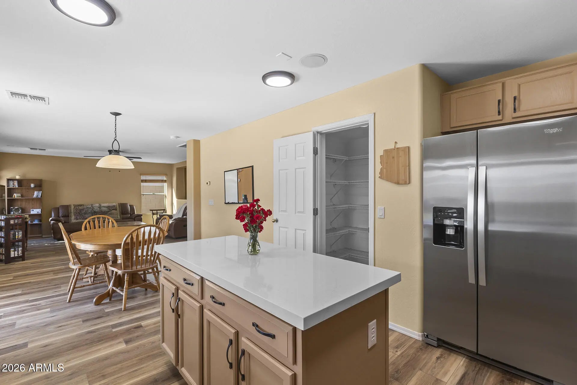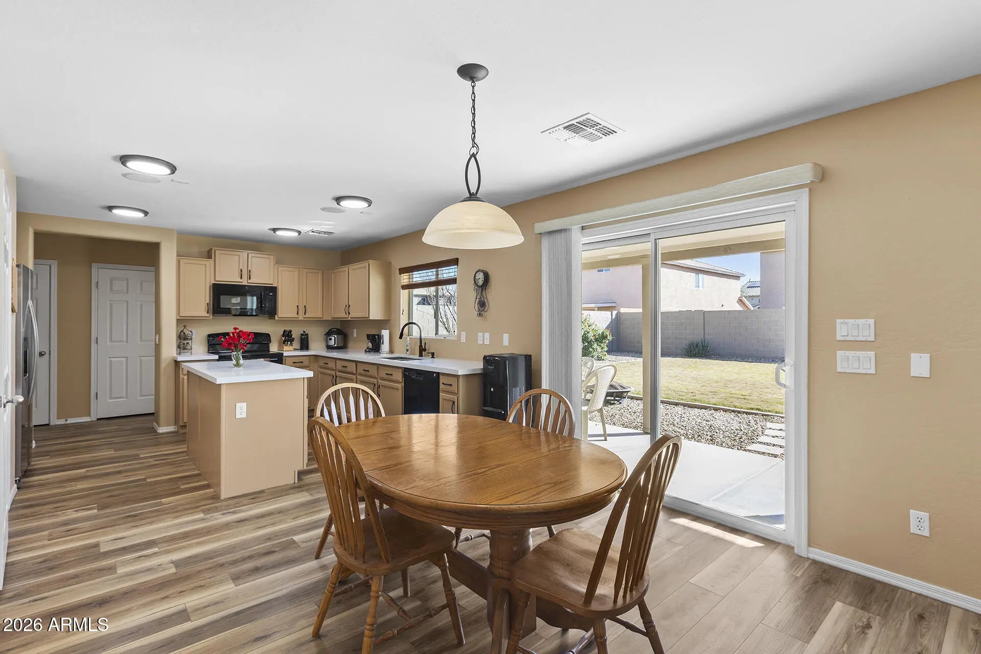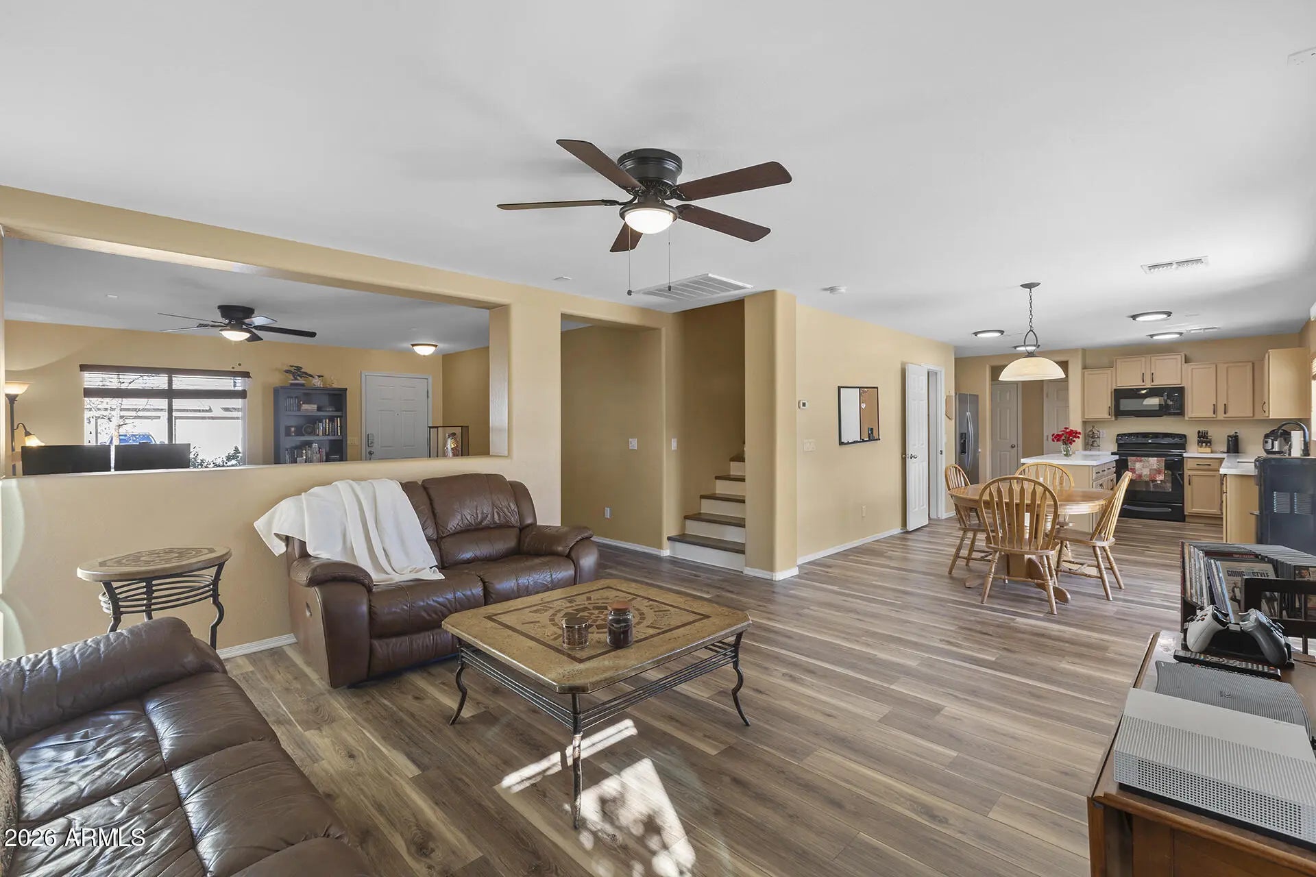Move-in ready with upgrades you'll love—space, style, and flexibility all in one! This updated 3-bedroom, 2.5-bath, two-story home offers modern comfort and future potential, featuring new LVP flooring throughout (2024-2025), hardwood stairs, and fresh interior and exterior paint. The kitchen shines with upgraded quartz countertops (December 2025), a large pantry, new refrigerator, and a brand-new water heater, making it both stylish and functional. The upstairs loft can easily be converted into a 4th bedroom, offering flexibility for growing needs. Additional highlights include new light fixtures downstairs, an owned water softener system, and the home is pre-wired for surround sound and a backyard hot tub—perfect for entertaining. Outdoor features include a large covered patio, RV gate, and a 3-car garage with ample storage. Ideally located within walking distance to a school, the community also offers pickleball and basketball courts, a community pool, and a YMCA, providing an exceptional lifestyle to match the home's comfort, convenience, and value.