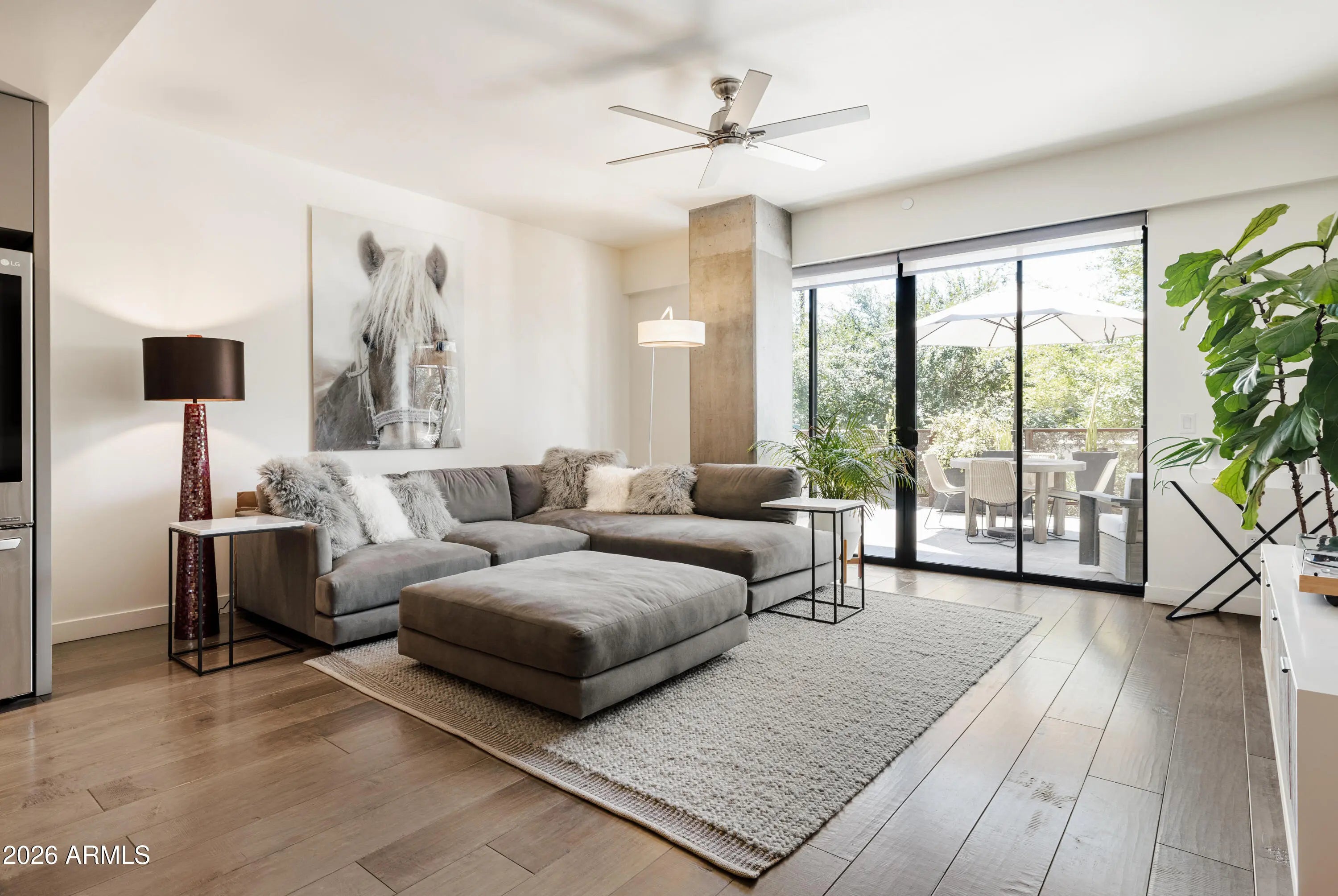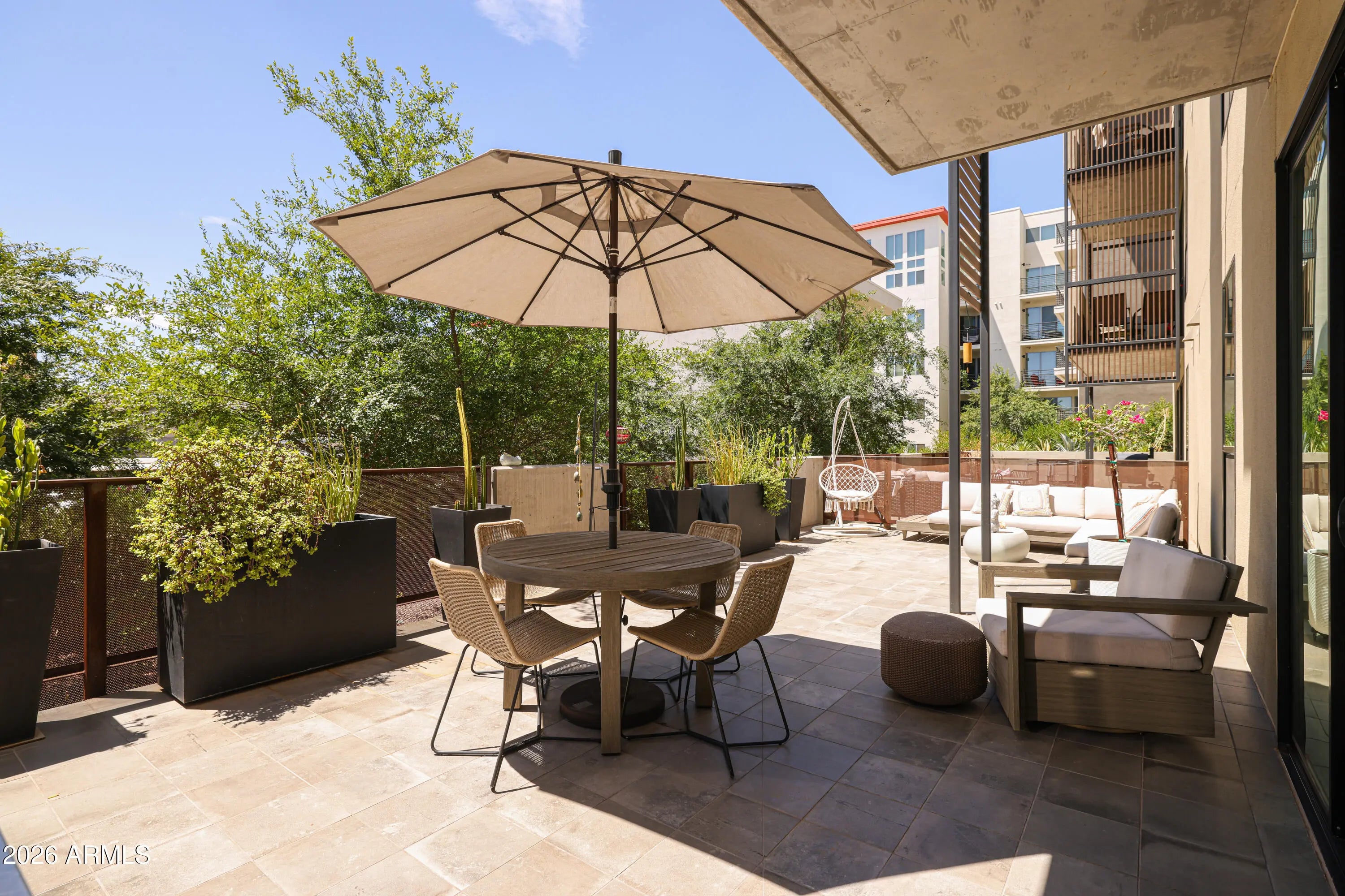 Luxury condo living in Biltmore! This is a RARE unit as it's one of the largest units available, spanning over 1,300sf PLUS an additional 540sf of private outdoor living space! The den offers flexible options such as a guest room or office. Spacious open kitchen with NEW Cafe fridge, quartz counters, abundant cabinetry, gas range, and tile plank flooring throughout. The oversized primary suite includes a spa inspired bath and a large walk in closet. Electrolux W/D and a $5k water filtration system! Includes TWO secured underground parking spaces and a large 12x18 storage unit. Gas, internet, cable, water, sewer, and trash are ALL INCLUDED in the HOA. This unit has it all!