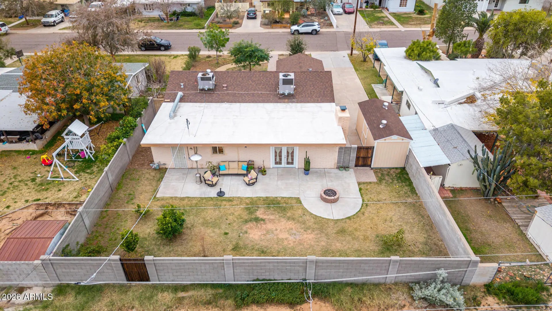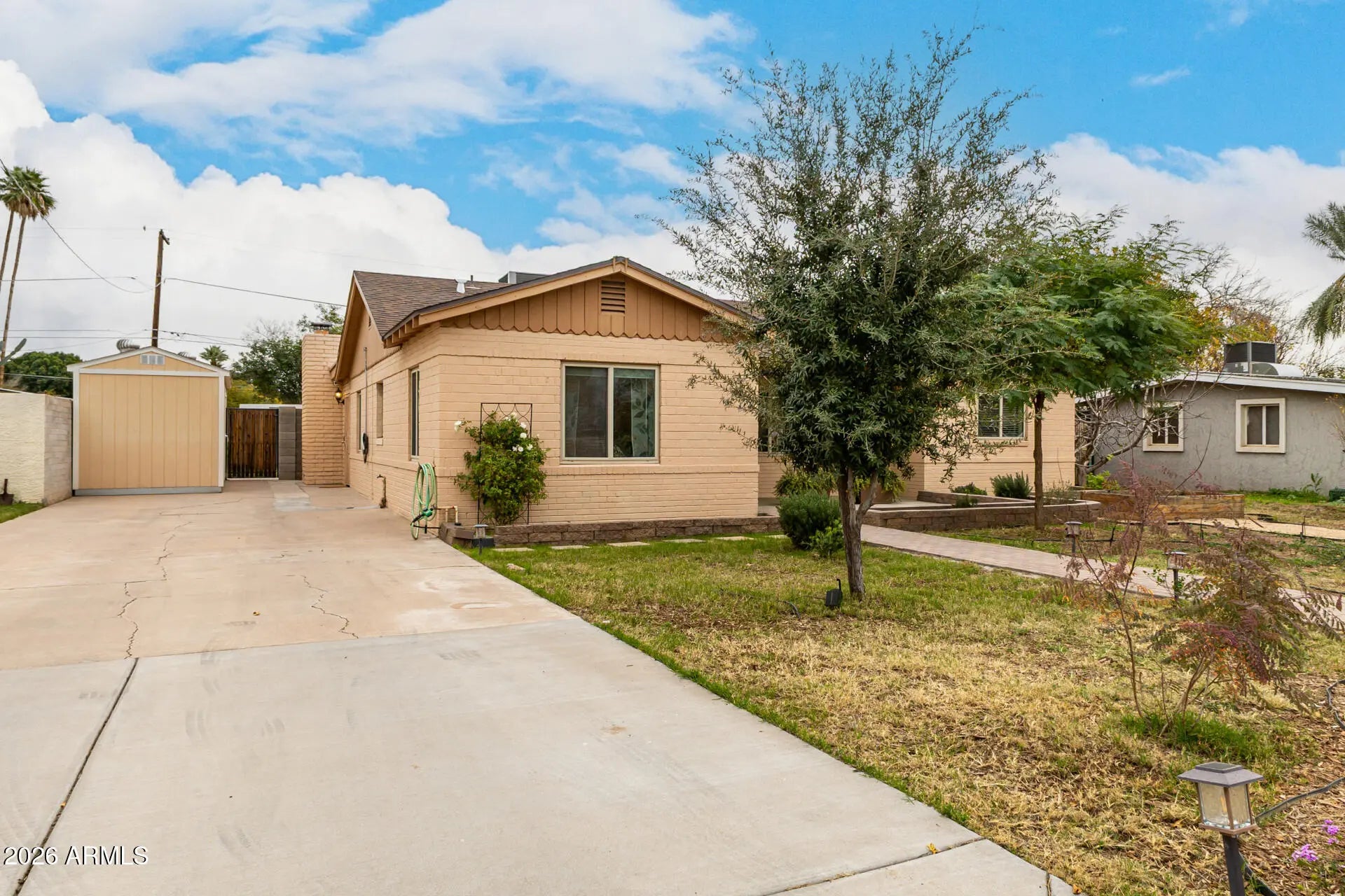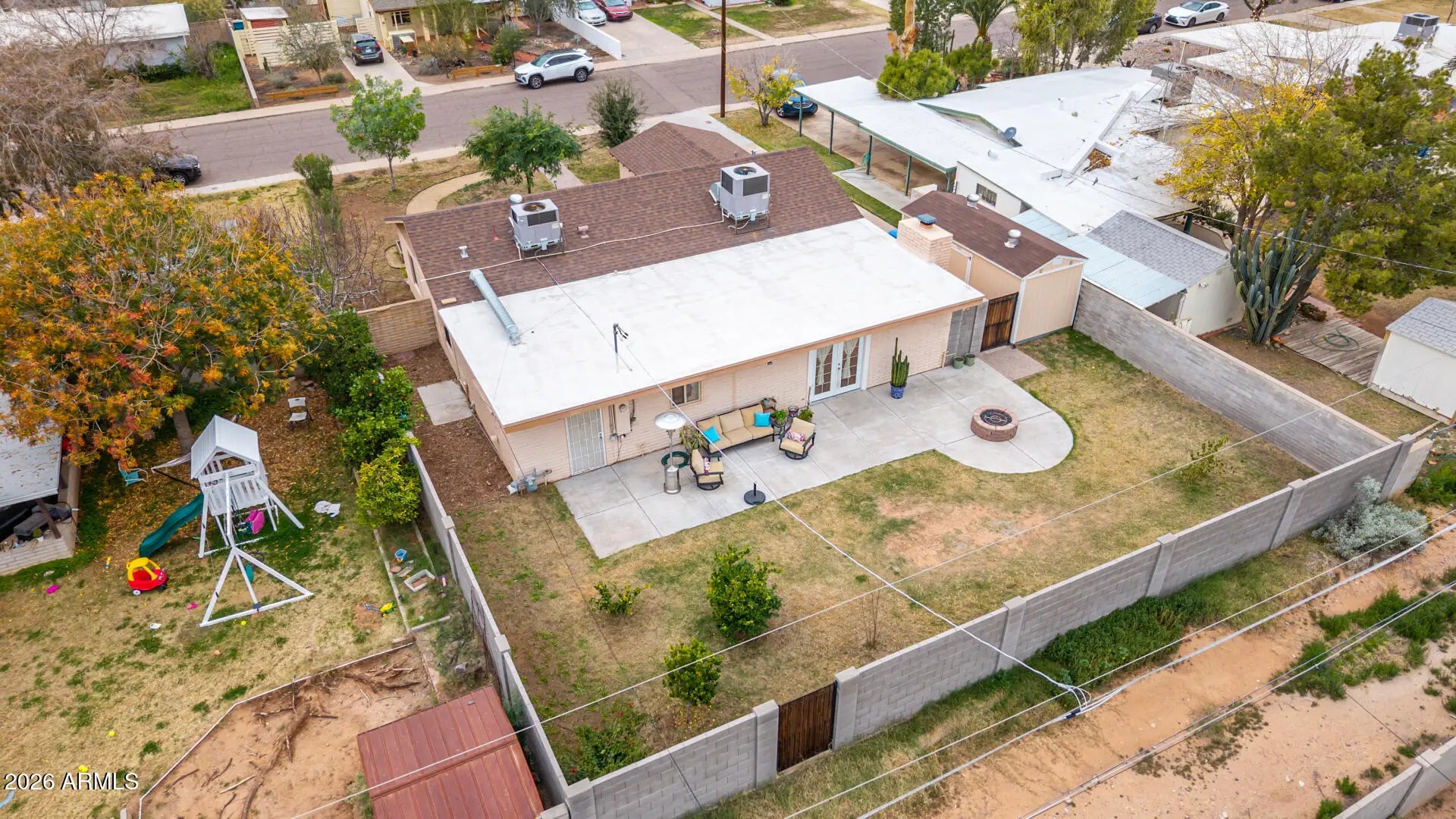 Take advantage of this fantastic opportunity to own a beautifully maintained 4-bedroom home in a highly desirable, centrally located neighborhood. From the moment you arrive, you'll appreciate the extended driveway, EV charging station, storage shed, and inviting front patio - perfect for enjoying stunning sunset views through the large living room windows or relaxing outdoors in the evening. Inside, the home offers a thoughtfully designed floor plan with a great layout, enhanced by E/W exposure and abundant natural light. The serene living room features a soothing color palette, stylish wood flooring, and dual-pane windows. The dedicated family room is ideal for gathering with loved ones and showcases double French doors that open to the backyard, along with a cozy natural gas fireplace for relaxed evenings. The kitchen is both functional and stylish, featuring granite countertops, ample wood cabinetry with crown molding, chic pendant lighting, a mosaic tile backsplash, stainless steel appliances, and a center island with breakfast bar seating. All appliances convey, including the washer, dryer, refrigerator, gas stove, and dishwasher. The home also boasts all-new, fully grounded electrical (2021) and new A/C units installed in 2020, providing peace of mind for years to come. The primary bedroom offers soft carpeting, a private bathroom, and split A/C control for added comfort. Step outside to the backyard, where you'll enjoy morning sun on the back patio - perfect for coffee - while the patio transitions to cool afternoon shade. The lot is flood irrigated, and both the front and backyard are fully set up for drip irrigation and sprinklers, giving buyers the flexibility to choose their preferred system. Additional highlights include natural turf, a natural gas fire pit, a gas bib ready for a grill, mature lemon, lime, and orange trees, 8' foot back perimeter block wall and a gated alley with coded access for added security. Located in a walkable, family-friendly neighborhood, this home is surrounded by great local restaurants such as Glai Baan, Tandy's, Mixela, and Mama Linda's, all within walking distance. Schools are nearby, and the community is known for its safe, welcoming atmosphere with families and children throughout the neighborhood. Enjoy unbeatable convenience with approximately 15 minutes to downtown, uptown, the airport, Old Town Scottsdale, and Tempe's Mill Avenue. This home truly has it all - comfort, charm, location, and thoughtful upgrades throughout. Schedule your showing today and experience everything this exceptional property has to offer.