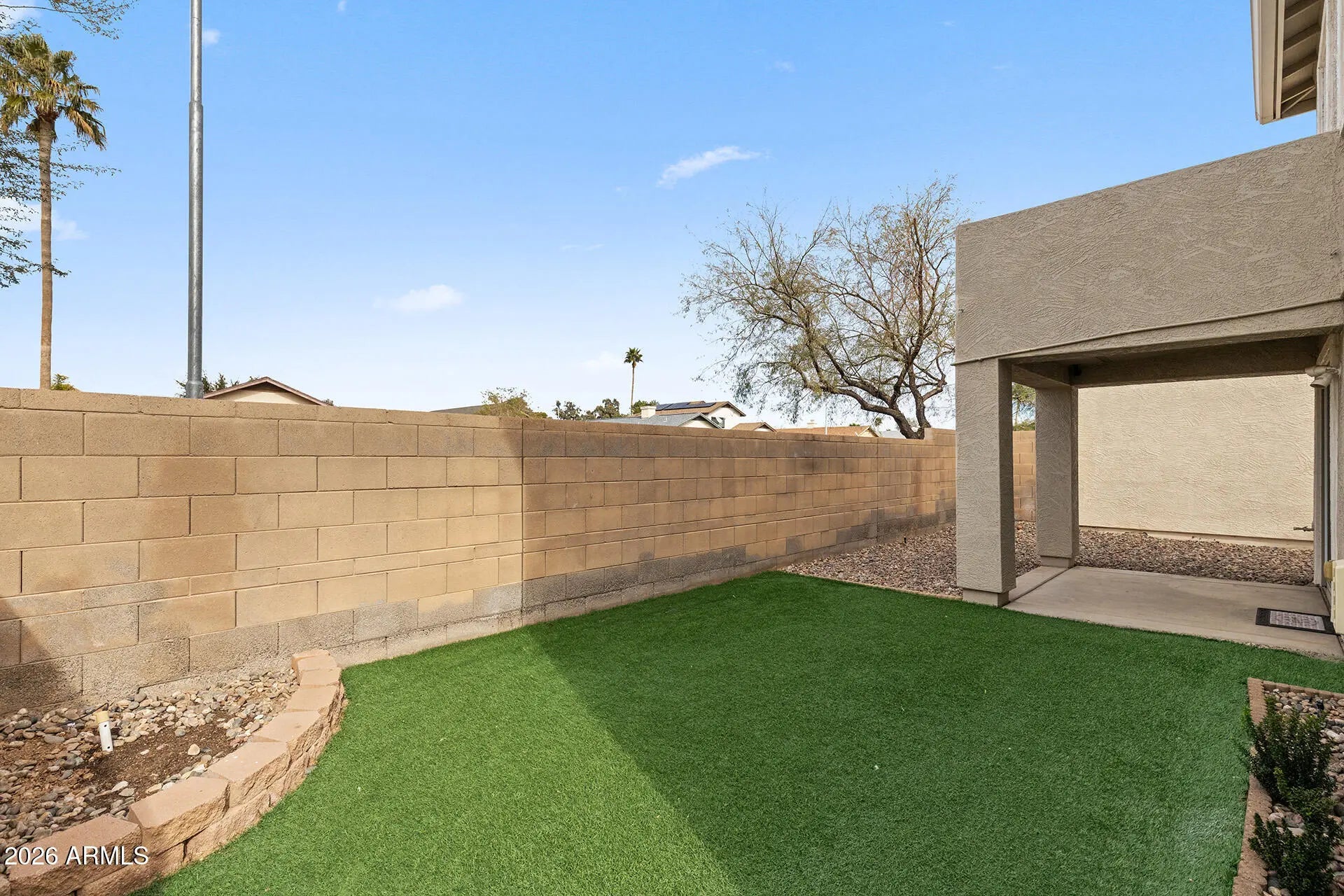 North/South Exposure, Sprinklers In Rear, Sprinklers In Front, Gravel/Stone Front, Synthetic Grass Back