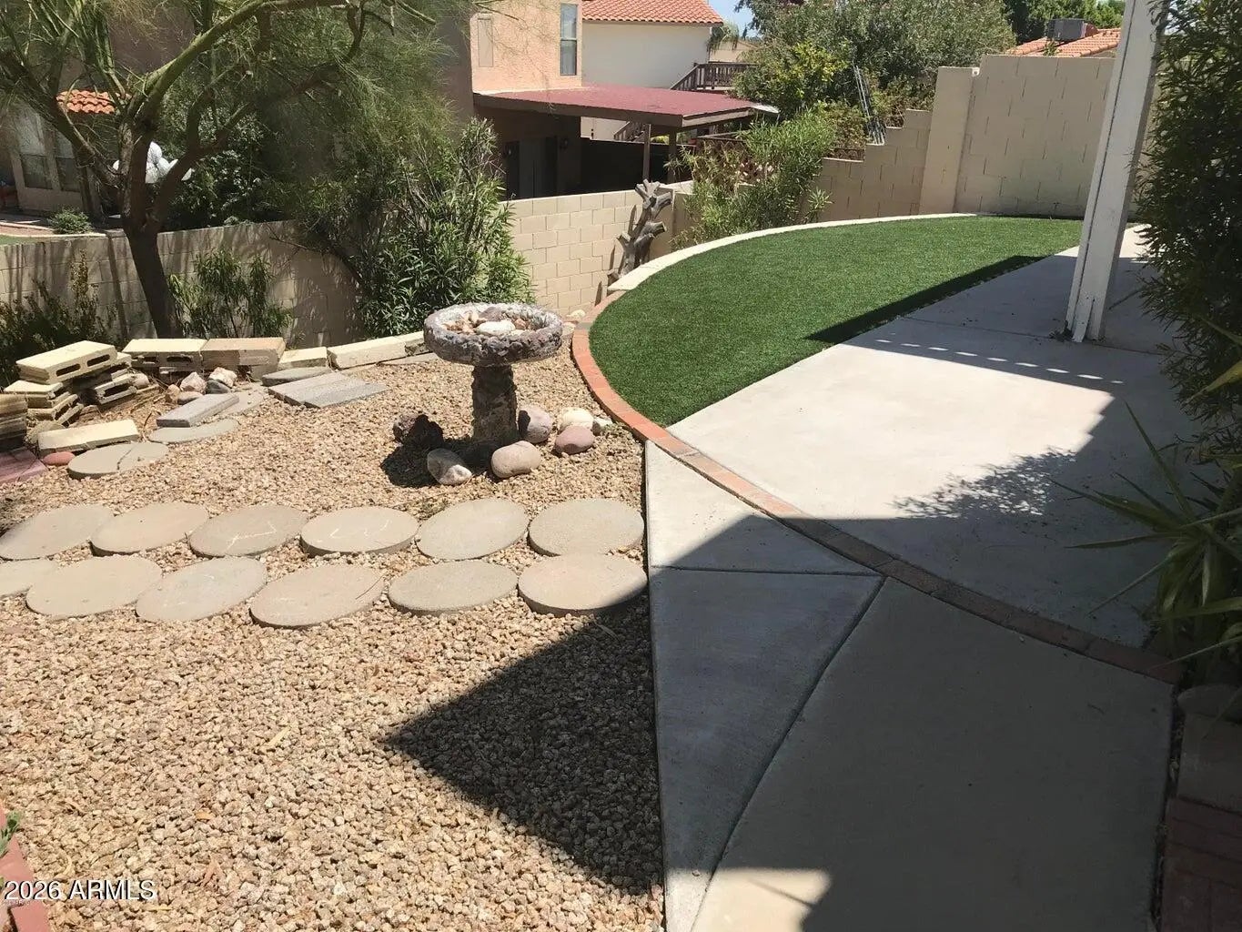 Hillside Lot, Gravel/Stone Front, Gravel/Stone Back, Synthetic Grass Back