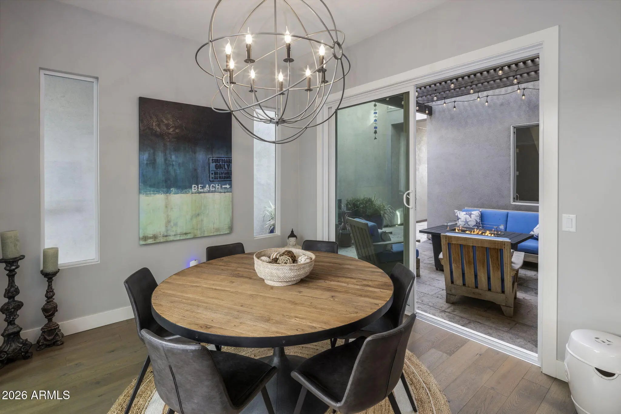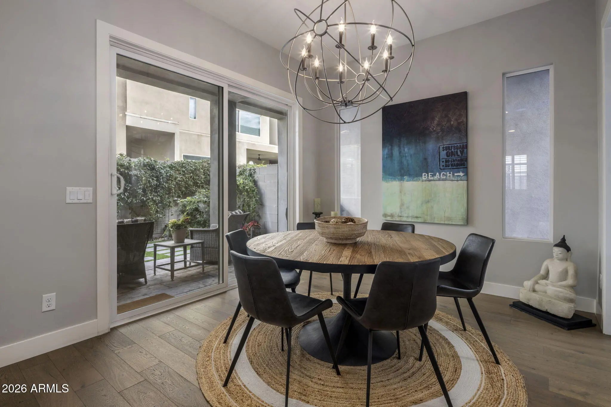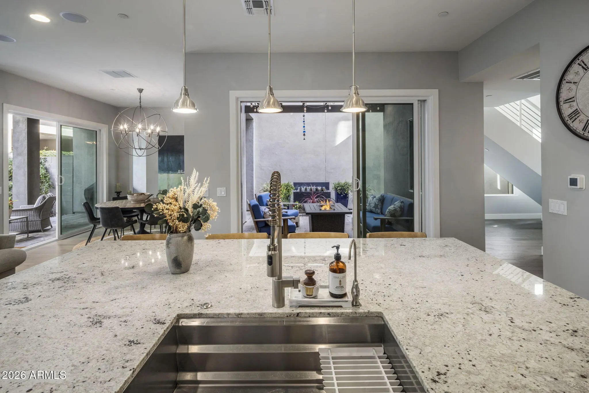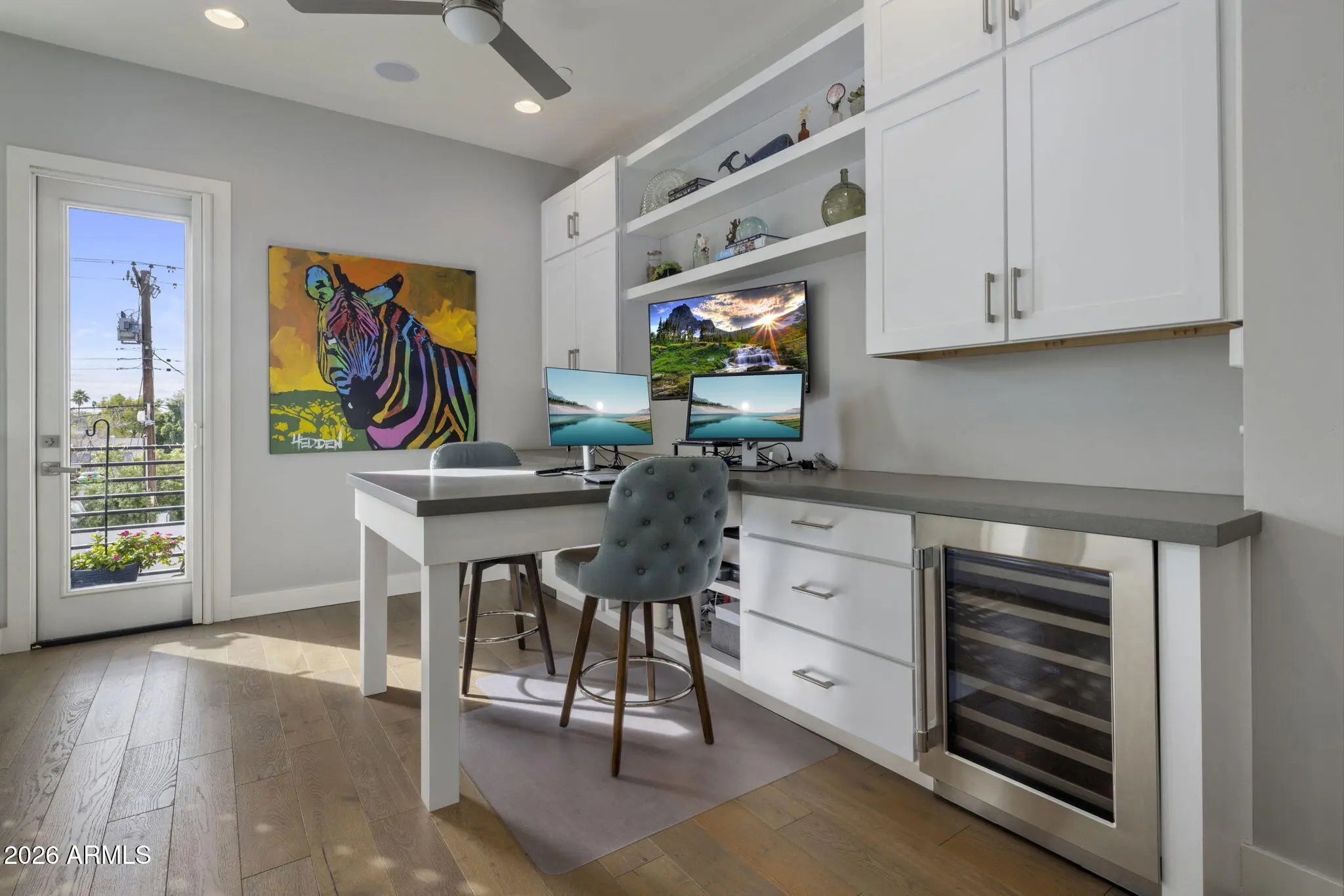 Discover Scottsdale luxury living in this stunning turn key single family detached home located in the gated community of Skye On McDowell.This light filled end unit features: luxury hardwood floors, a custom bar with 2 wine fridges, gourmet kitchen with gas cooktop, expansive island, & spacious walk-in pantry; Open floor plan; loft area with office, luxury cabinetry, & 2 Thermador beverage fridges; custom plantation shutters & upgraded additional cabinetry throughout; Freshly painted exterior & roof recoated in 2024; Community amenities such as pool, spa, fitness center, & outdoor kitchen; Perfect for relaxation, the home features 2 covered patios & a balcony with multiple sliders leading out to manicured landscaping with artificial turf & limestone pavers creating indoor/outdoor living.