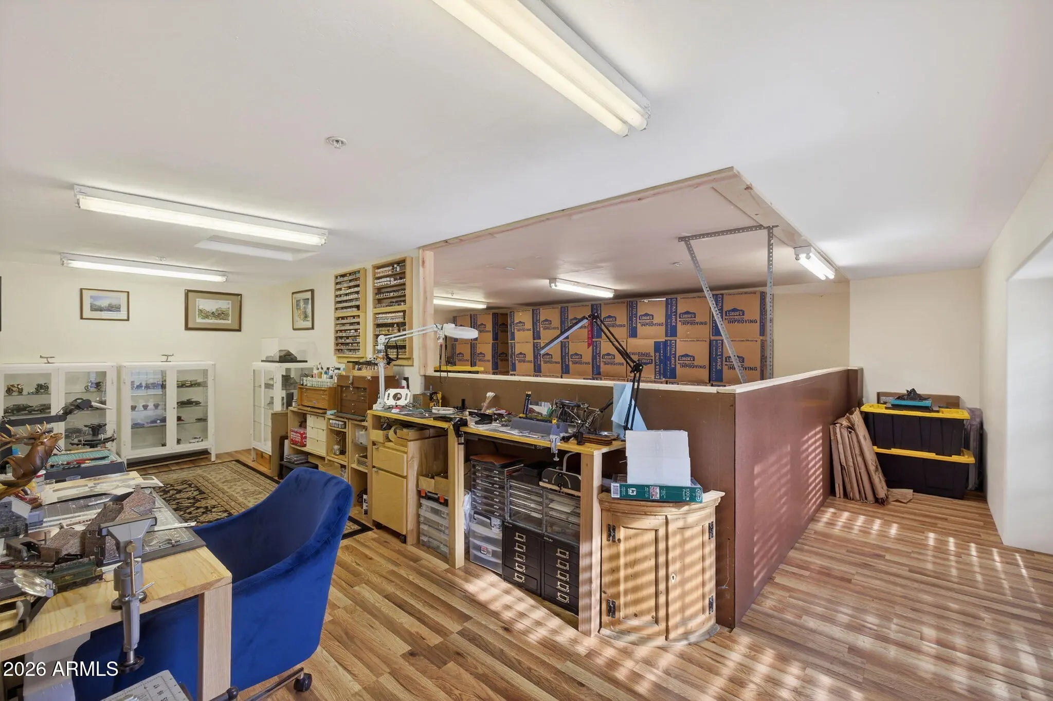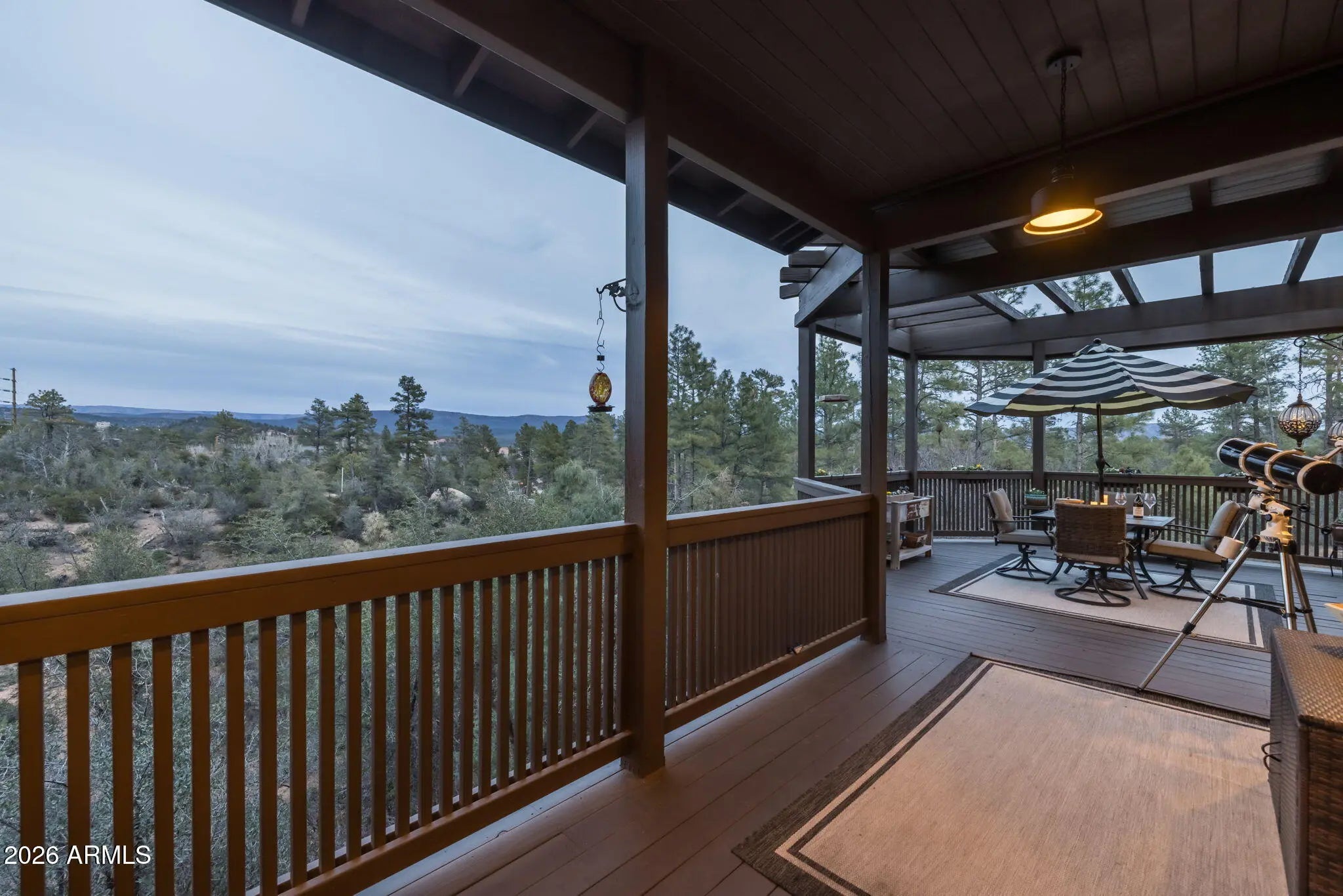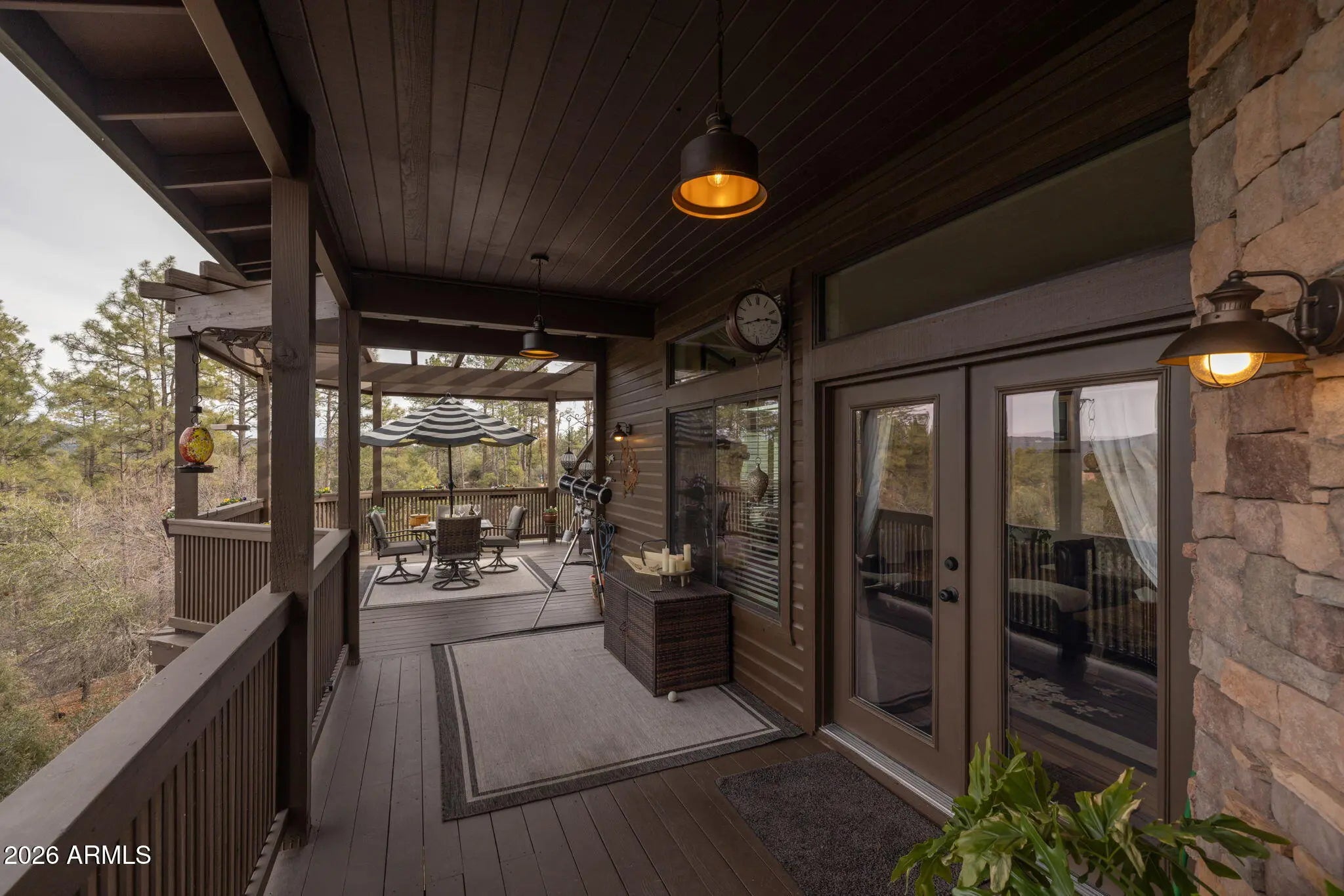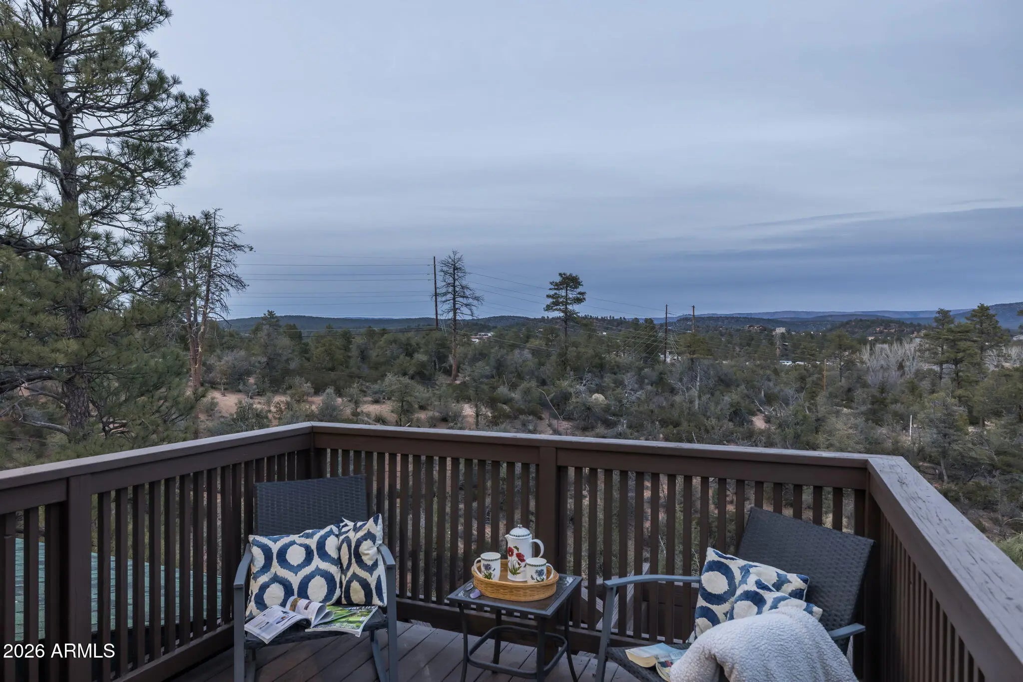Beautifully appointed home with Mogollon Rim views and over 3600 livable square feet in the heart of Arizona, just 1.5 hours from Scottsdale, Arizona. 4 Bedrooms, 3 Baths, great room, den, downstairs family room, spacious laundry room, plenty of outdoor living that is covered and uncovered, private den/workshop/home gym/hobby room/tv room over the garage with plenty of natural light, attached 2-car garage and a separate 1200 sq ft 4 car garage with 1 lift, wall to ceiling storage with a sliding library ladder on 1.63+/- private usable land. The warm and welcoming foyer entry opens to the expansive great room with Brazilian pecan wooden floors and 4'' baseboards throughout and the perfect focal point is a stack stone wood burning stove for warmth and ambiance for those chilly days, plenty of wall space for furniture, plenty of windows and access to the charming private balcony to enjoy your morning sunrises. The stunning primary bathroom has a large walk-in shower, tile flooring, separate free-standing tub, double vanity and a walk-in closet. There are stairs that lead you down to the 2-car garage access and continue to the lower level with a sizeable family/tv/workout room which has plenty of natural light, access to the covered patio, a full bath and 2 bedrooms. There is plenty of storage and tasteful finishings. The 2-car garage offers plenty of storage, water softener, water circulation pump and a fire suppression system. There is a bonus room above the garage that makes for an office, exercise room, playroom or a hobby room. Plenty of light, windows and laminate wood flooring. The 4-car garage has 1 9000 LB lift, finished flooring shelving and 2 240 Volts in the ceiling and 1 hook in the wall. There are so many additional features, new roof, resurfaced the upper driveway, new screens, additional stone walls around the home for curb appeal, home has been painted inside and out, new lighting fixtures and landscaping. (there is a location in the home that an elevator can be added)