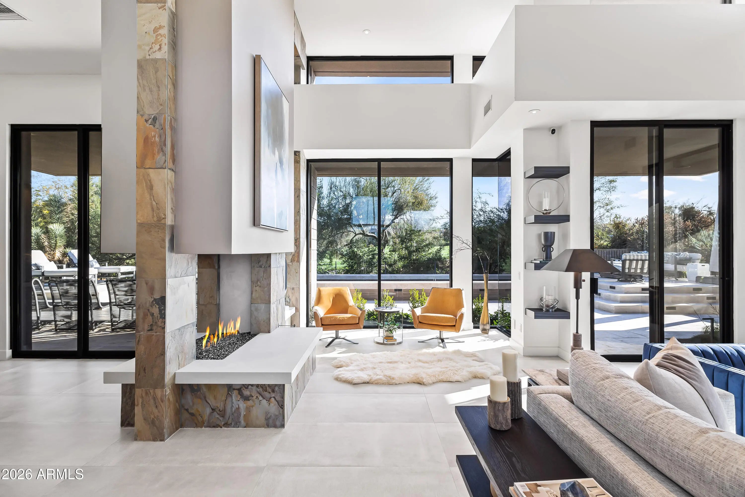 Fire Pit, Two Way Fireplace, Living Room, Master Bedroom