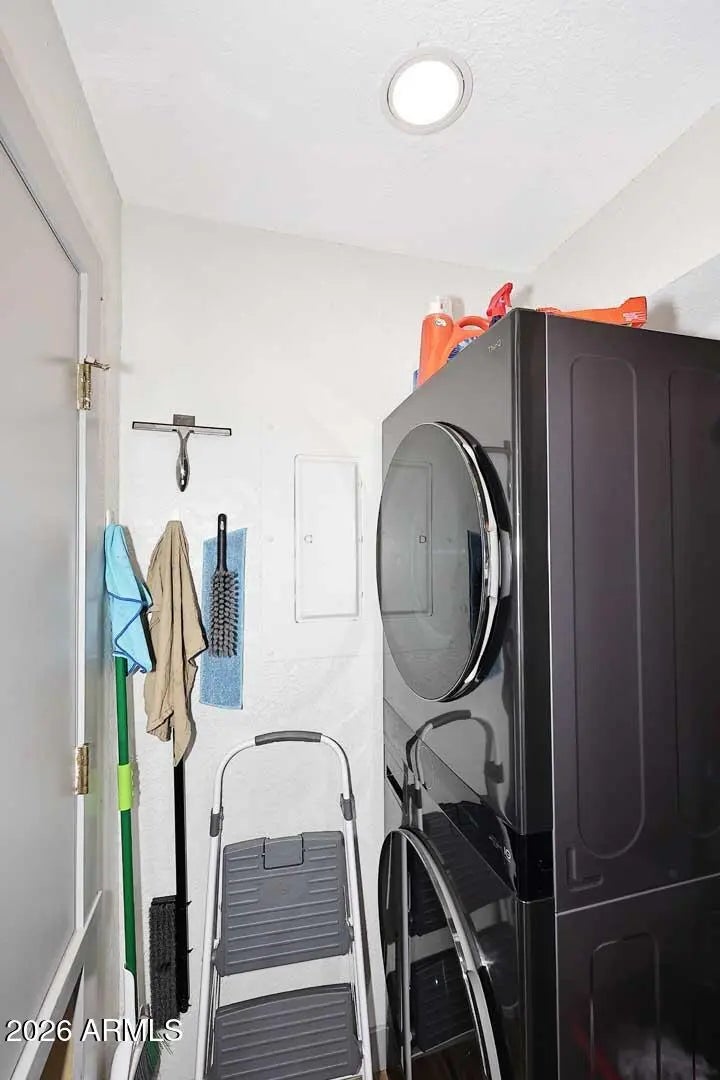 Stacked Washer/Dryer, Dryer, Washer, Refrigerator, Built-in Microwave, Dishwasher, Disposal, Electric Range