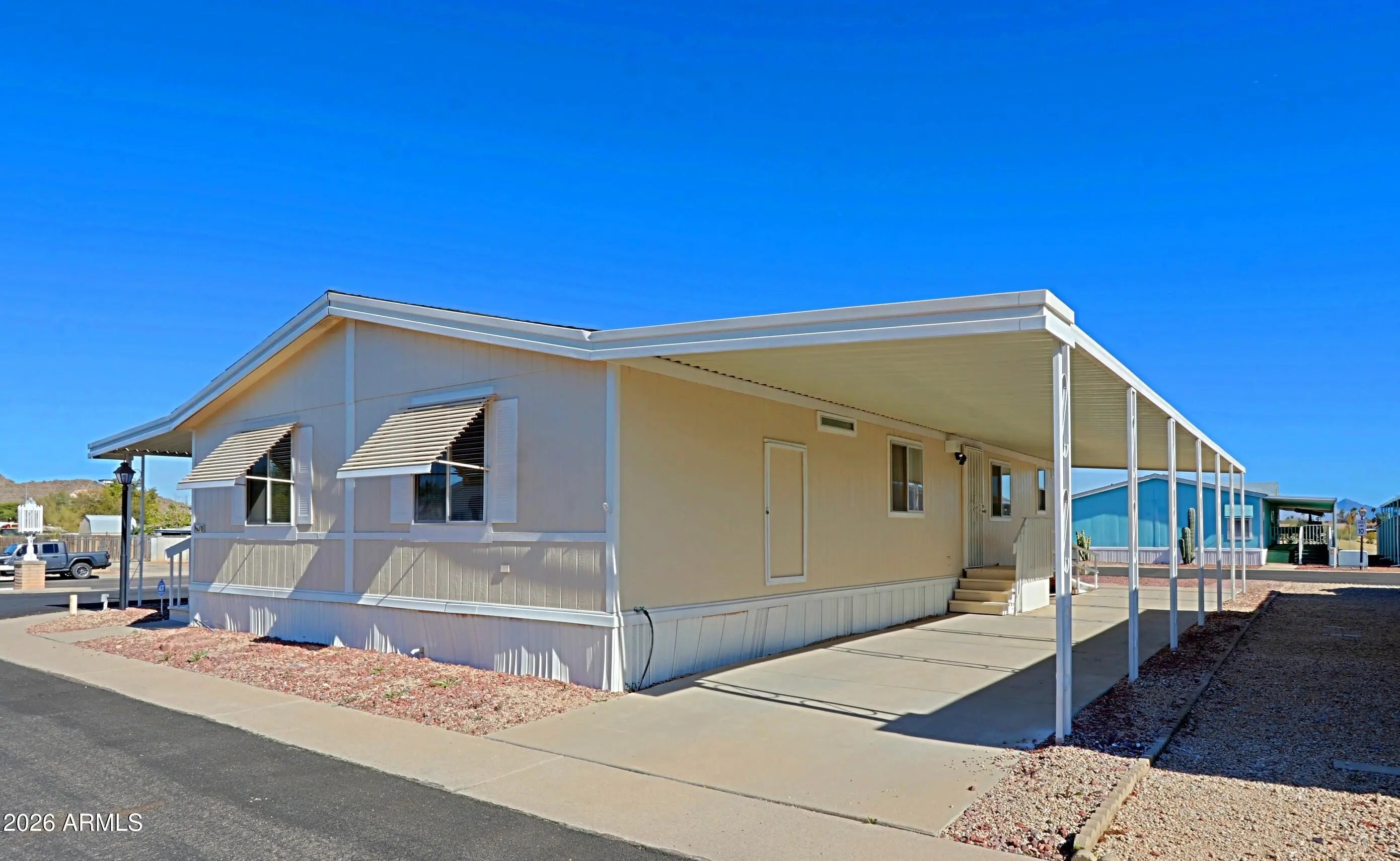 Well kept 55 plus community in north Phoenix. Centrally located close to shopping, freeways and 20 minutes from the airport. Lot 10 is just behind the mailbox area as you enter. The front porch area is a great place for relaxing and enjoying the sunset. The interior has a flowing and open floor plan with a good sized kitchen. All appliances are included. Lots of potential on this unit it just needs your personal touch to make it your own. Come take a look.