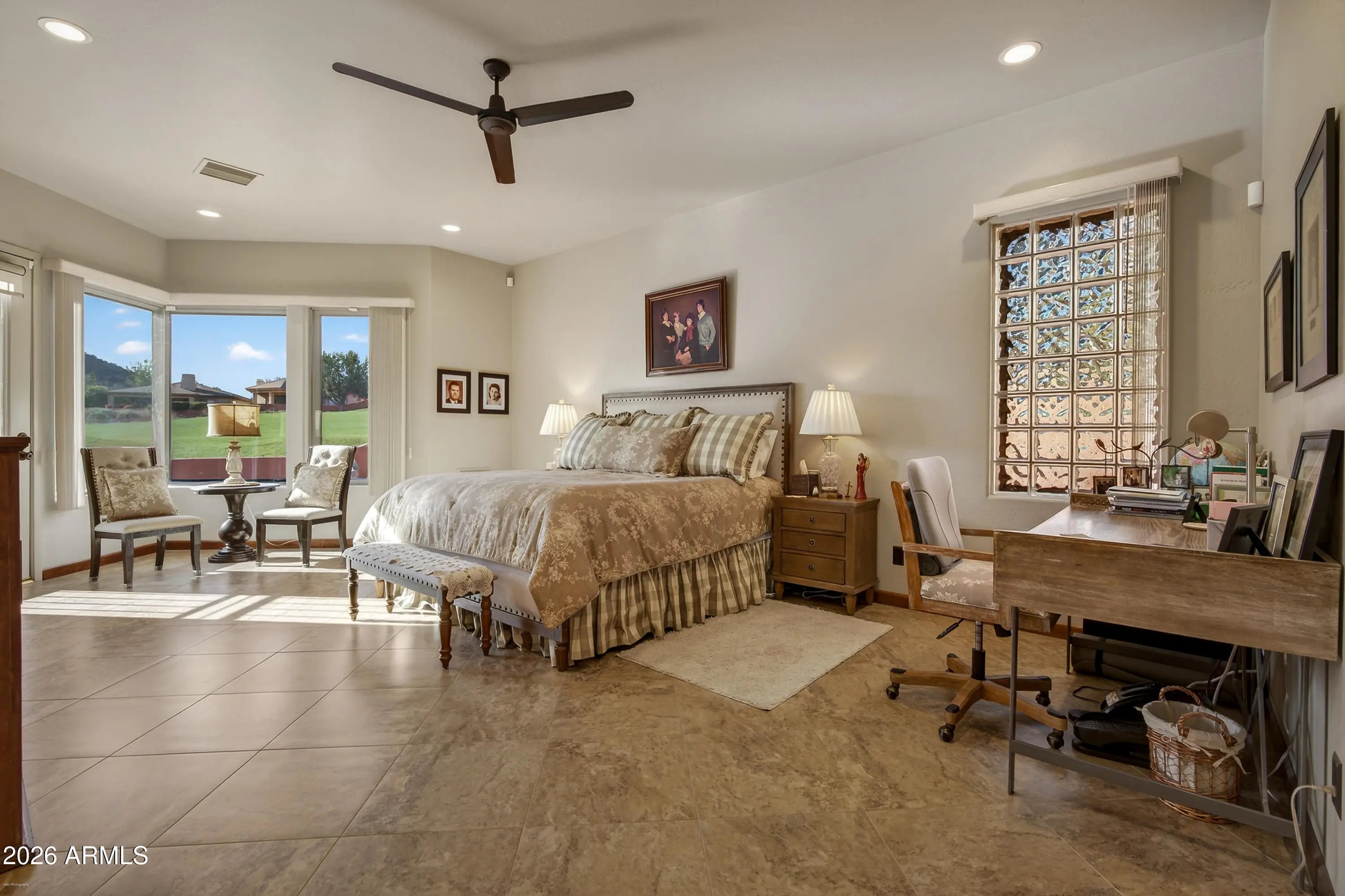 .35 Acre lot on the Sedona Golf Course! This home is located at the end a cul-de-sac with red rock views from the front and the 13th fairway from the back. This is a very large lot for the sub-division. Recent upgrades include granite counter tops, pecan cabinetry and appliances. Massive primary bedroom with a large walk-in closet. 3 car garage perfect for projects or storing your golf cart.