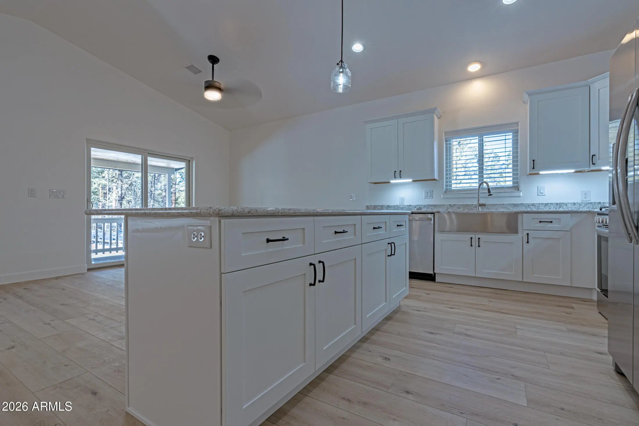 Rare opportunity to own a brand-new home with no HOA in the highly sought-after Blue Spruce neighborhood. This thoughtfully designed home features a desirable split floor plan & an open concept feel with vaulted ceilings & abundant natural light. Enjoy low-maintenance LVP flooring, 5'' baseboards & blinds already installed for true move-in readiness. Upgrades include granite countertops, solid soft-close cabinets, a farmhouse SS sink, Tankless WH, & modern finishes ideal for everyday living. Additional highlights include a large crawl space for storage and Trex decking for low-maintenance outdoor enjoyment. Quality construction, smart design, & a prime location make this new build a hard-to-find opportunity.